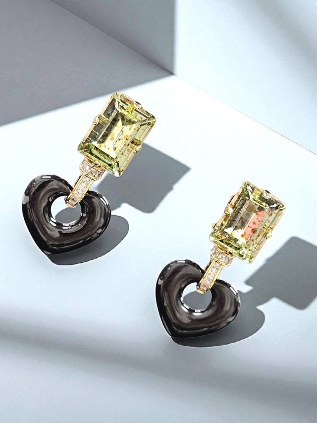 CIRCULATION送料無料【JULIE SION ジュリーシオン/フランス】ハート ブラック イヤリング ピアス NO: BO LOVER / Vert d'eaux/Noir