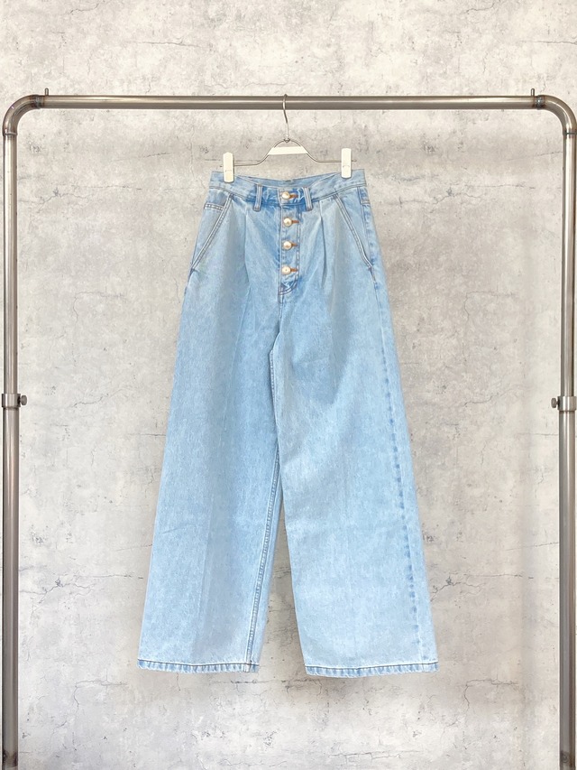 CIRCULATION送料無料【 EENK インク / 韓国 】パールボタン付デニム パール デニム NO: ELD-1Q151-DP03-LB / Light Blue