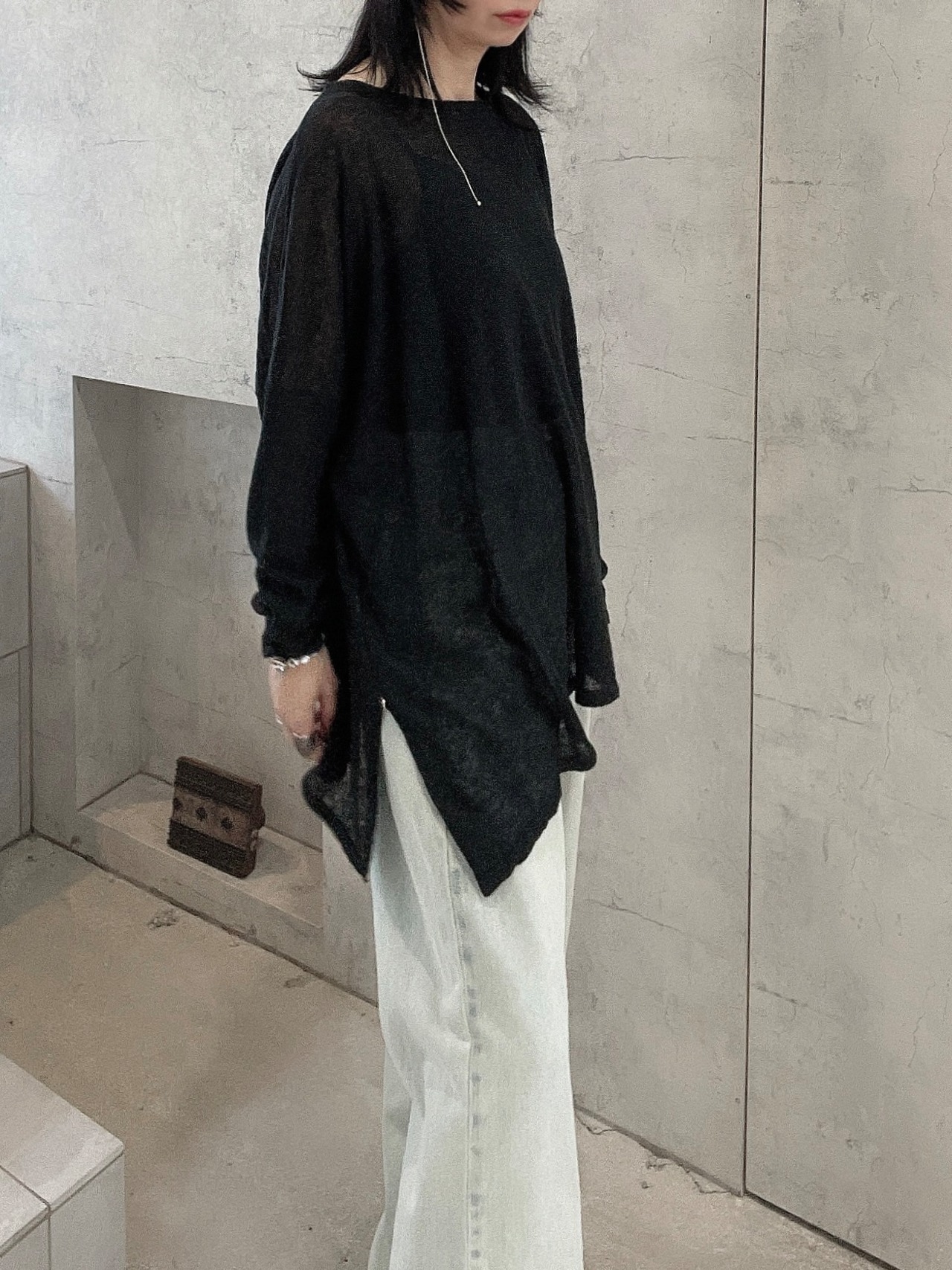 透け感のある素材で、タンクトップやワンピースなどの上に重ね着使いにも最適です。