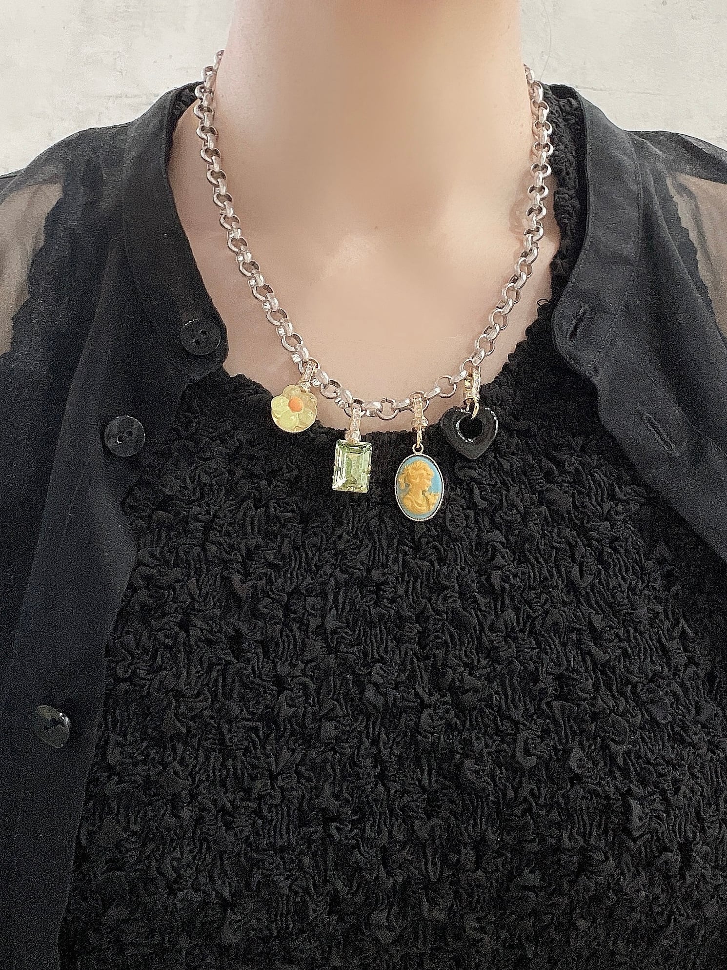 また別売りのcharmをを付けて様々なスタイルを楽しめるので1本で何役もこなしてくれる嬉しいデザイン。
