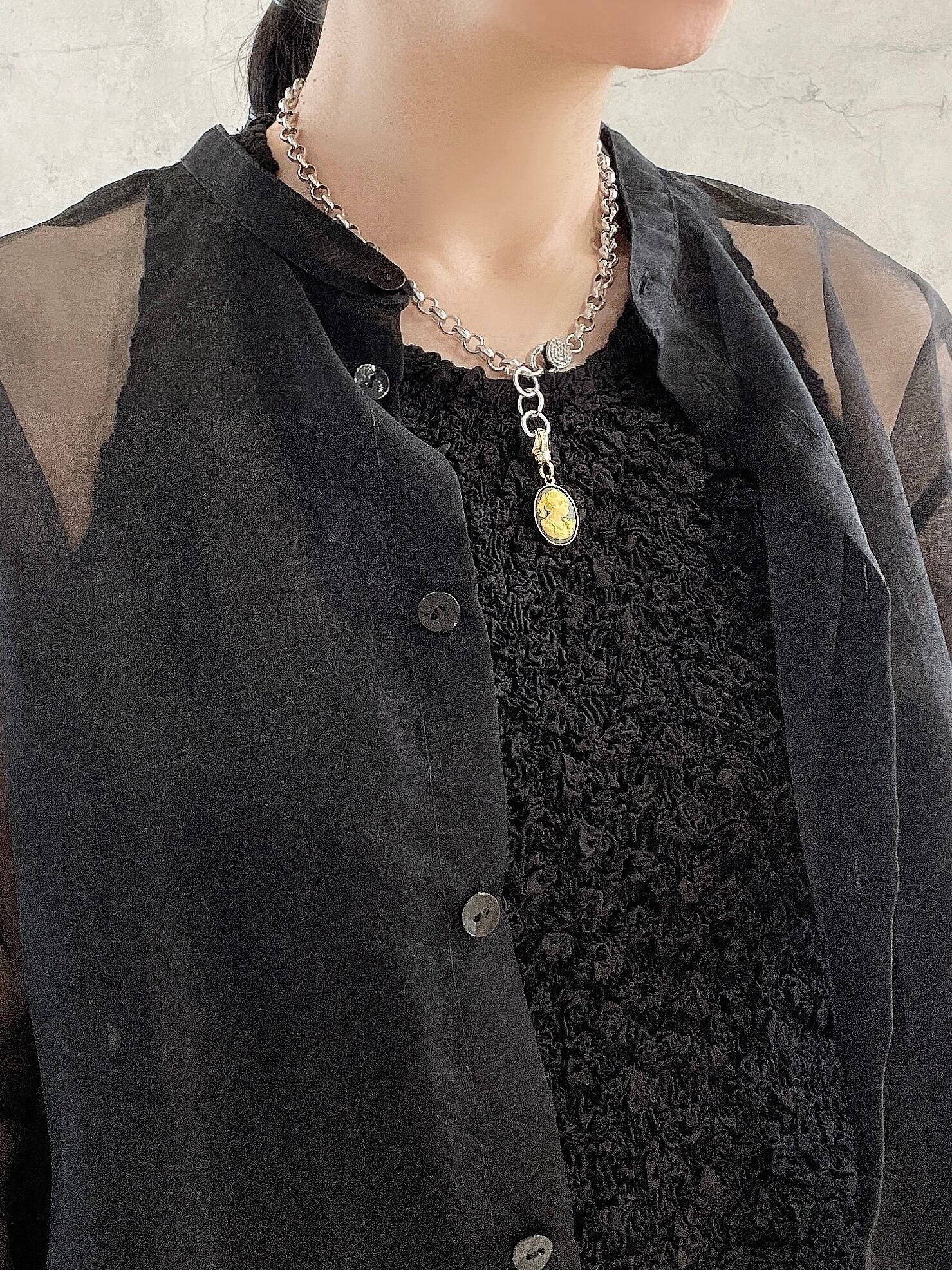 ネックレスや、耳元にカスタム出来るので様々なスタイリングを楽しんで頂けます。