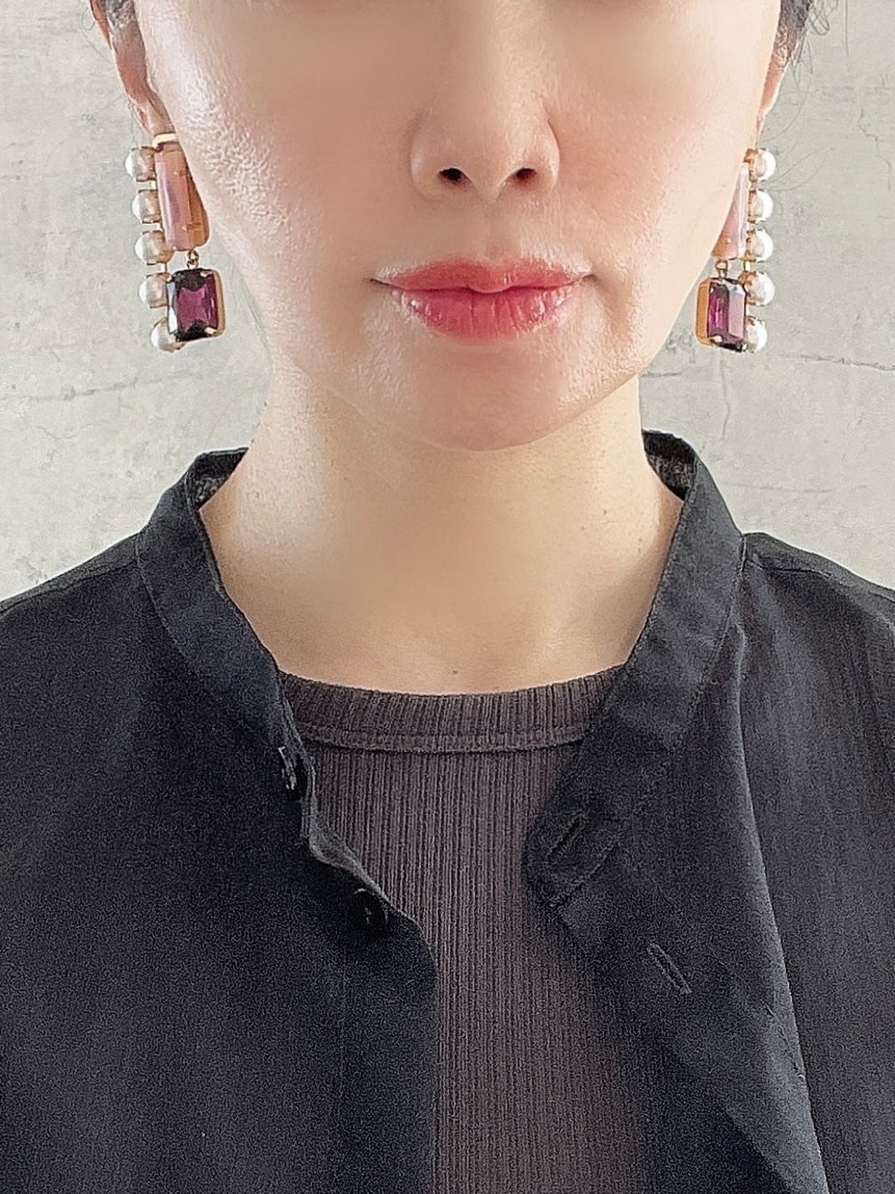 パールのラウンドとスクエアなパーツのシェイプがクールなスタイル。