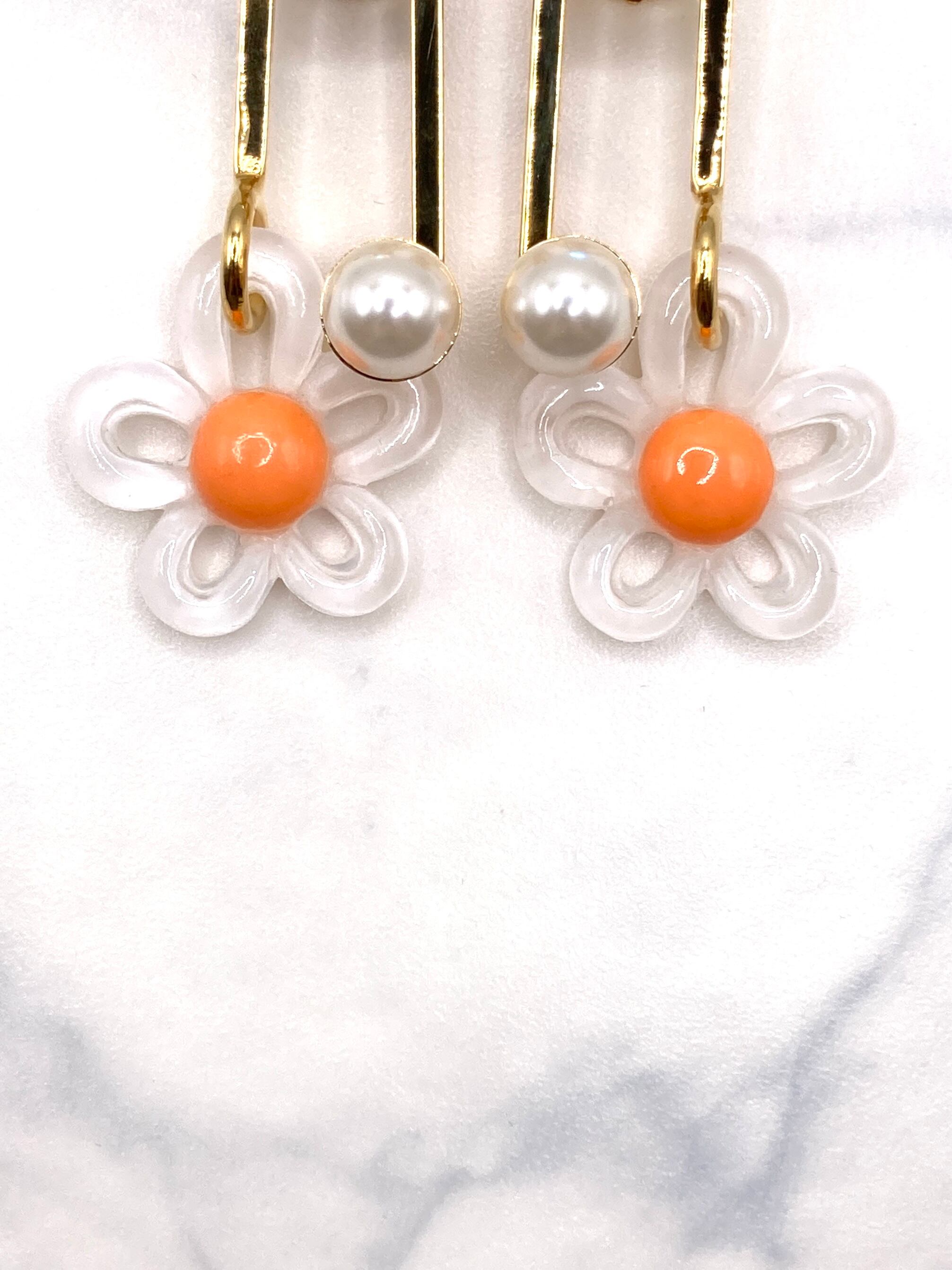CIRCULATION送料無料【JULIE SION ジュリーシオン/フランス】フラワーパール ホワイト イヤリング ピアス NO: BO SCOUBIDOU / Blanc