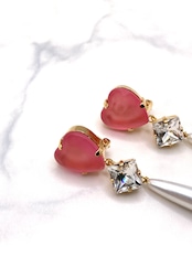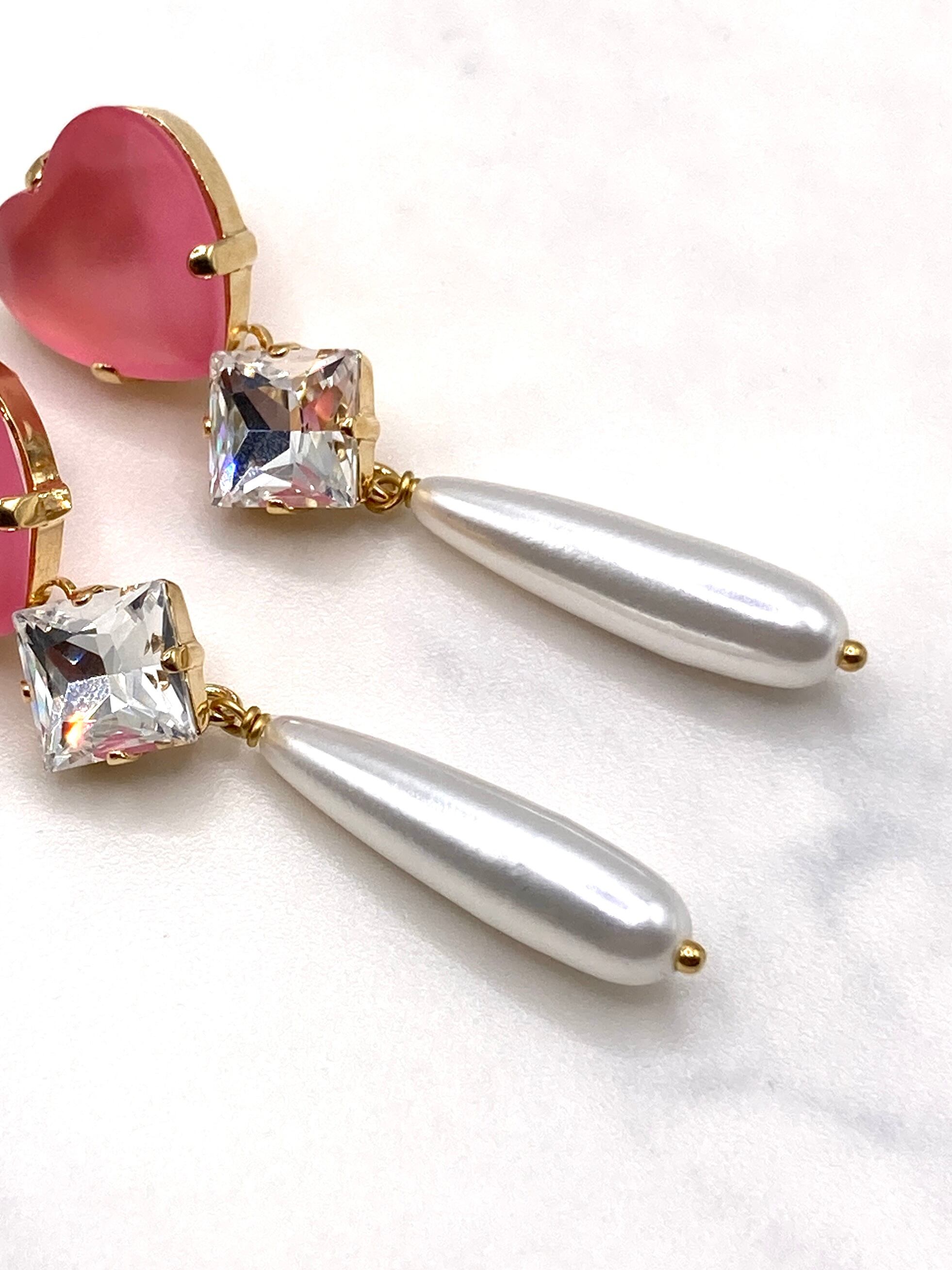 ゼリーに砂糖をまぶしたようなハートとシャイニーなクリスタルにドロップシルエットのパールが大人っぽいハートジュエリー。