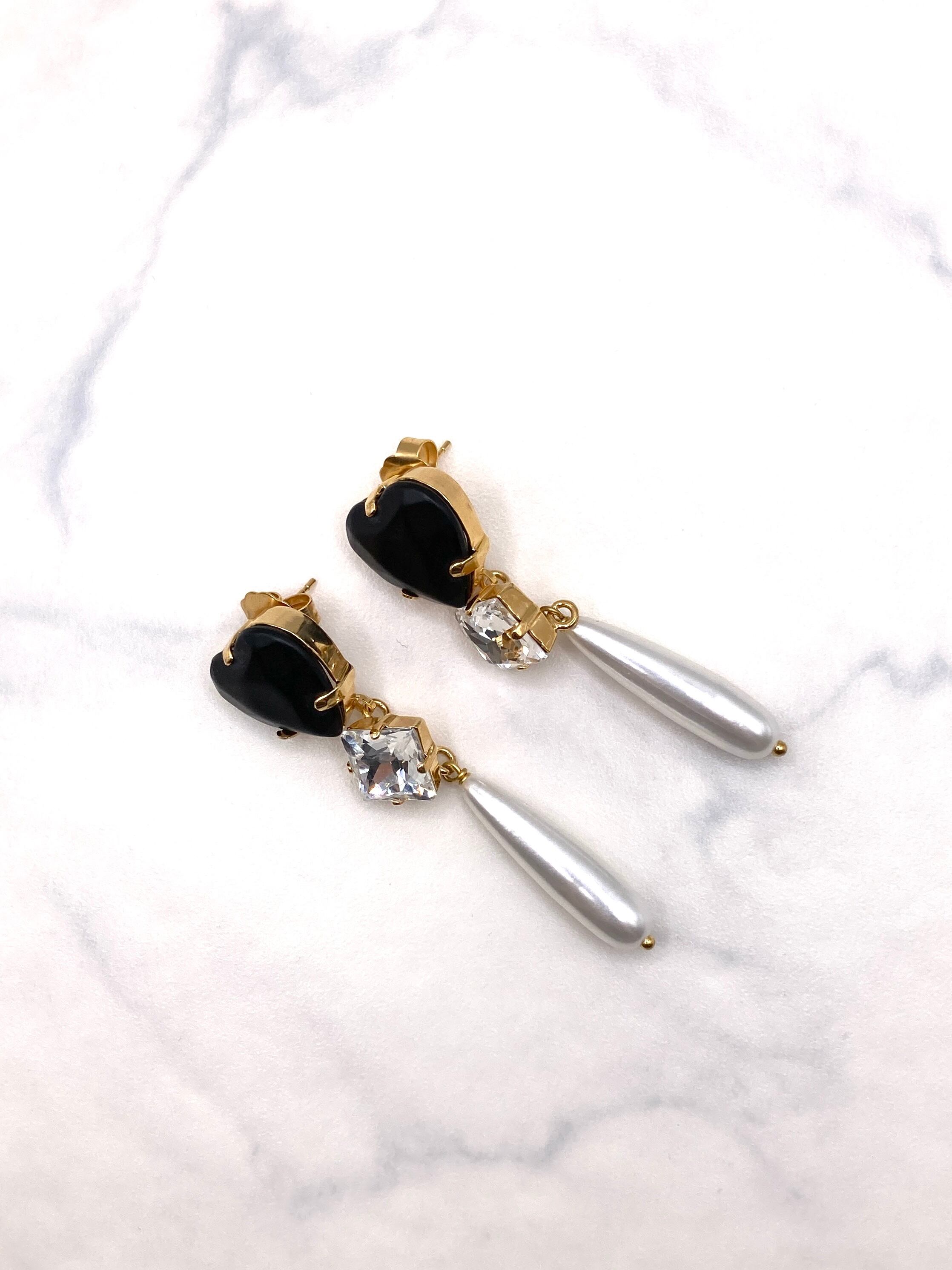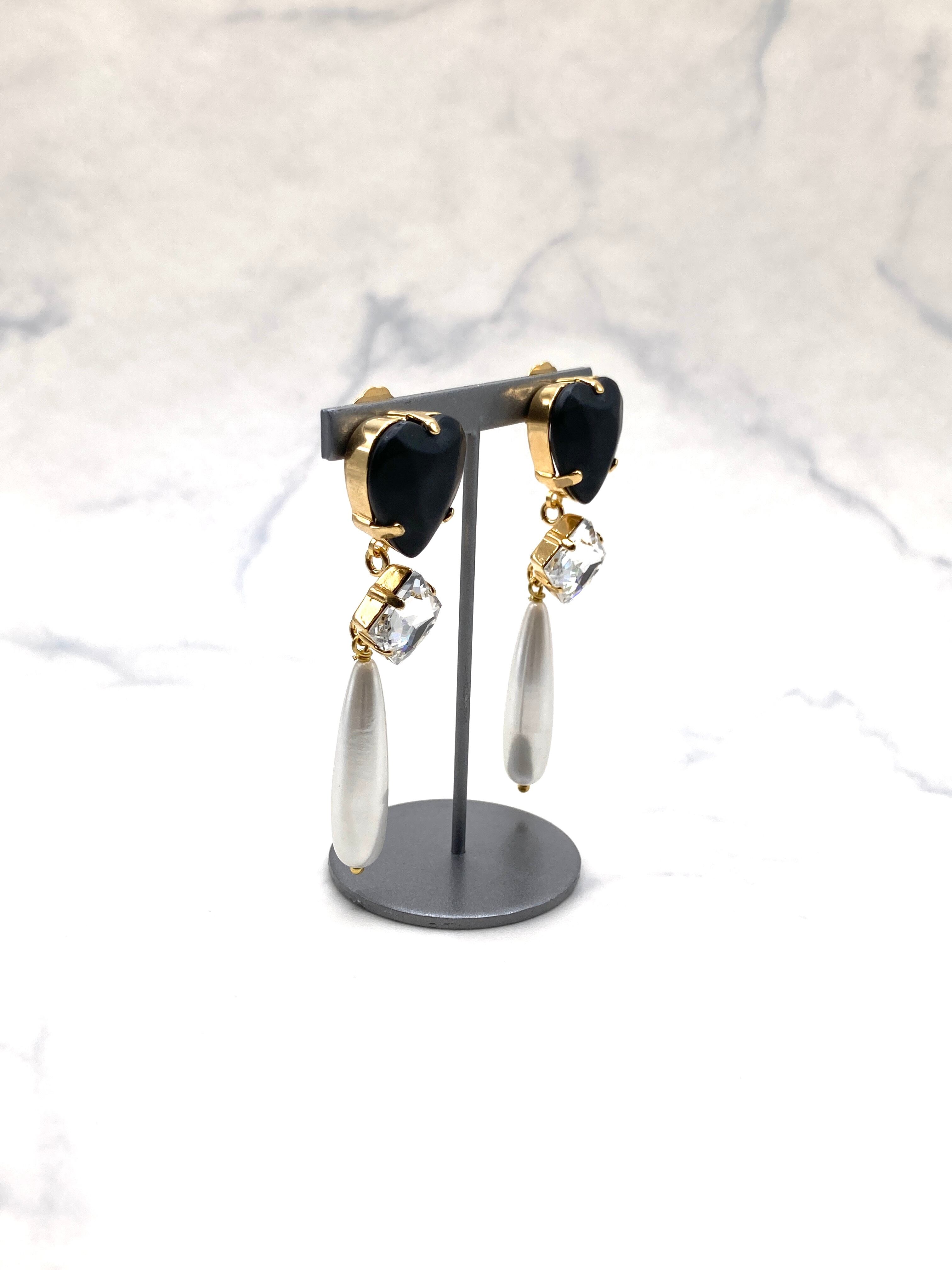CIRCULATION送料無料【JULIE SION ジュリーシオン/フランス】ハートクリスタルパール ブラック イヤリング ピアス NO: BO POESIE GOUTTE / Noir(ブラック)