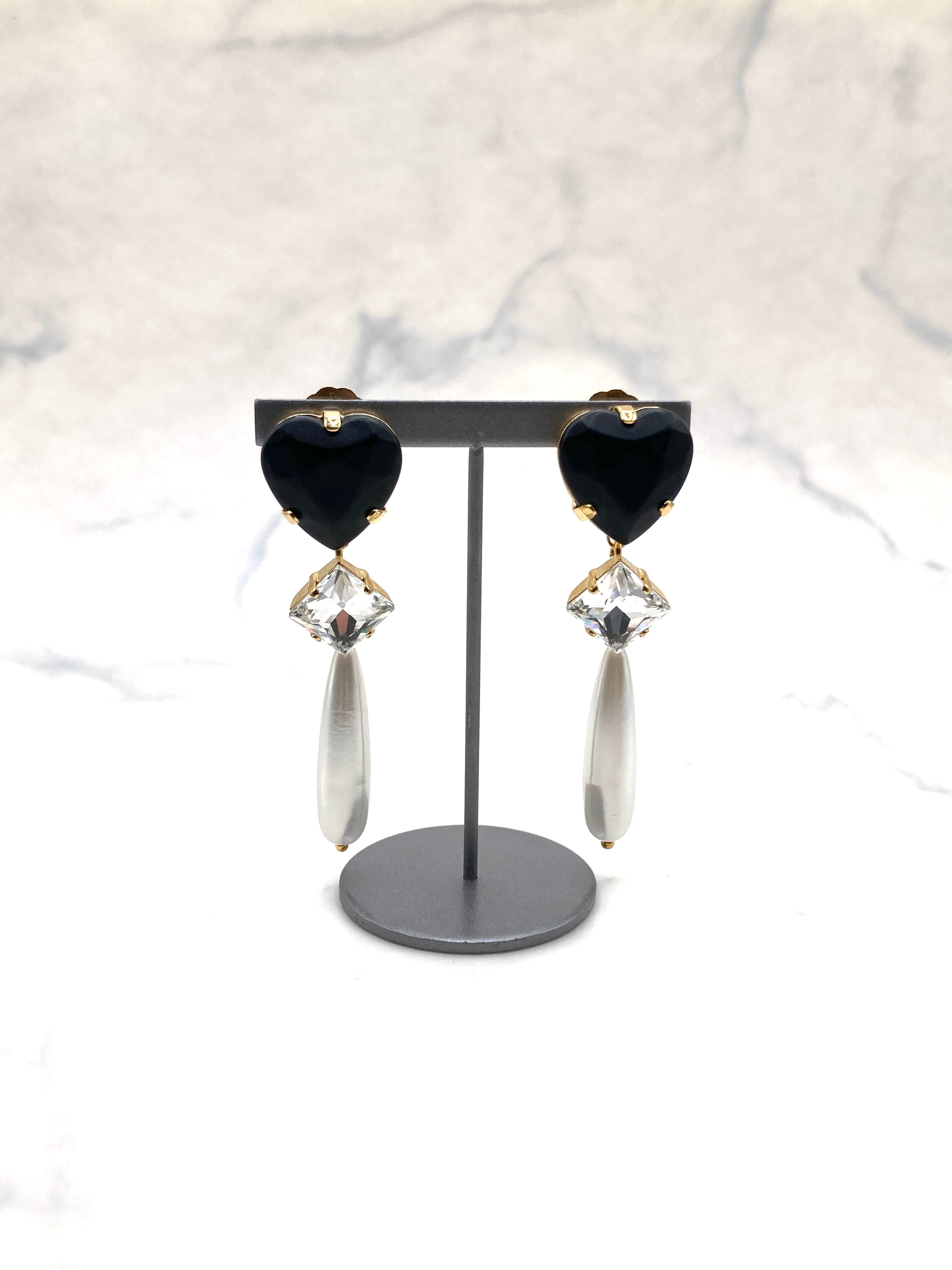 ゼリーに砂糖をまぶしたようなハートとシャイニーなクリスタルにドロップシルエットのパールが大人っぽいハートジュエリー。