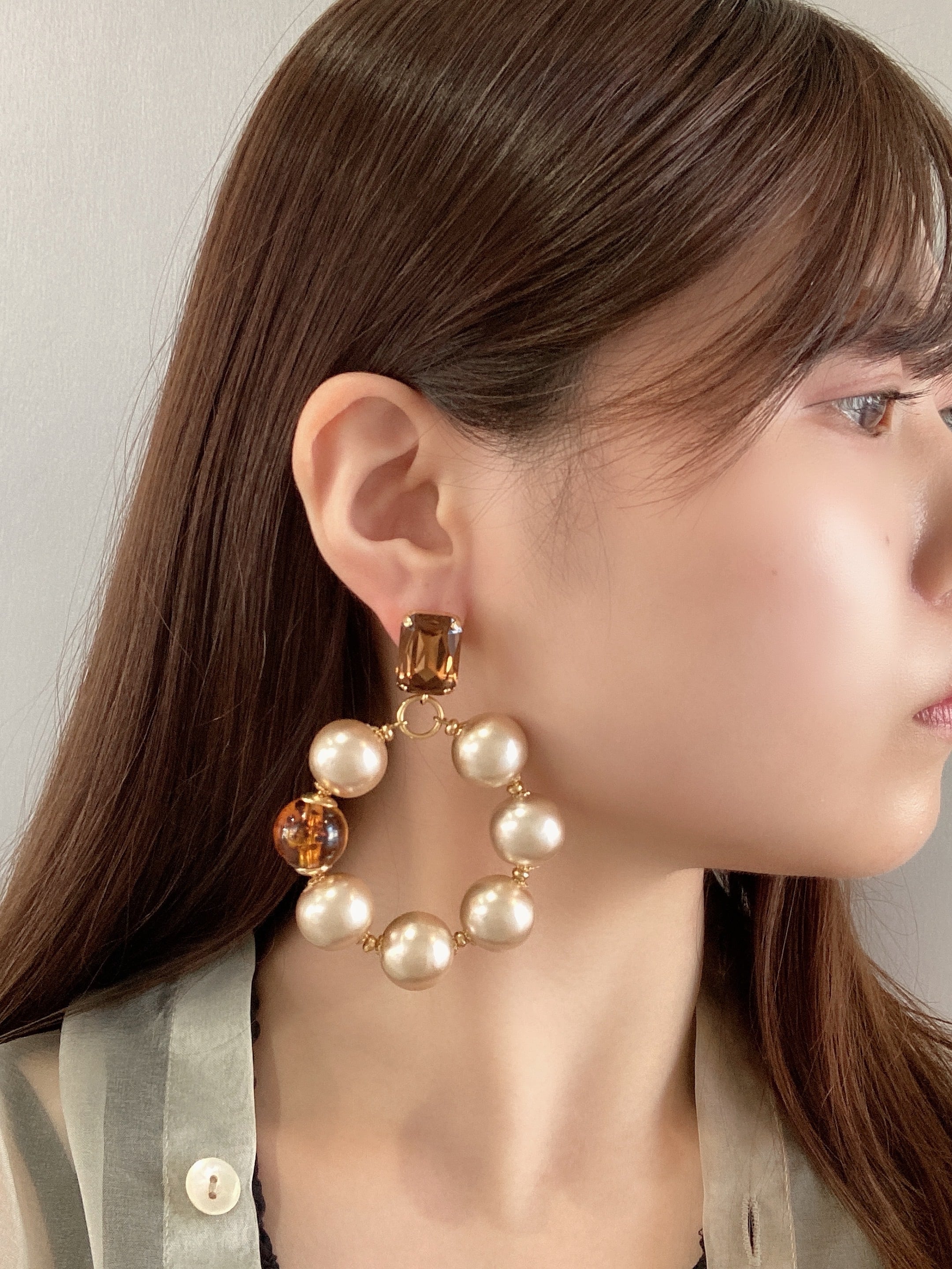 大ぶりなパールフープがスタイルのポイントになってくれます。