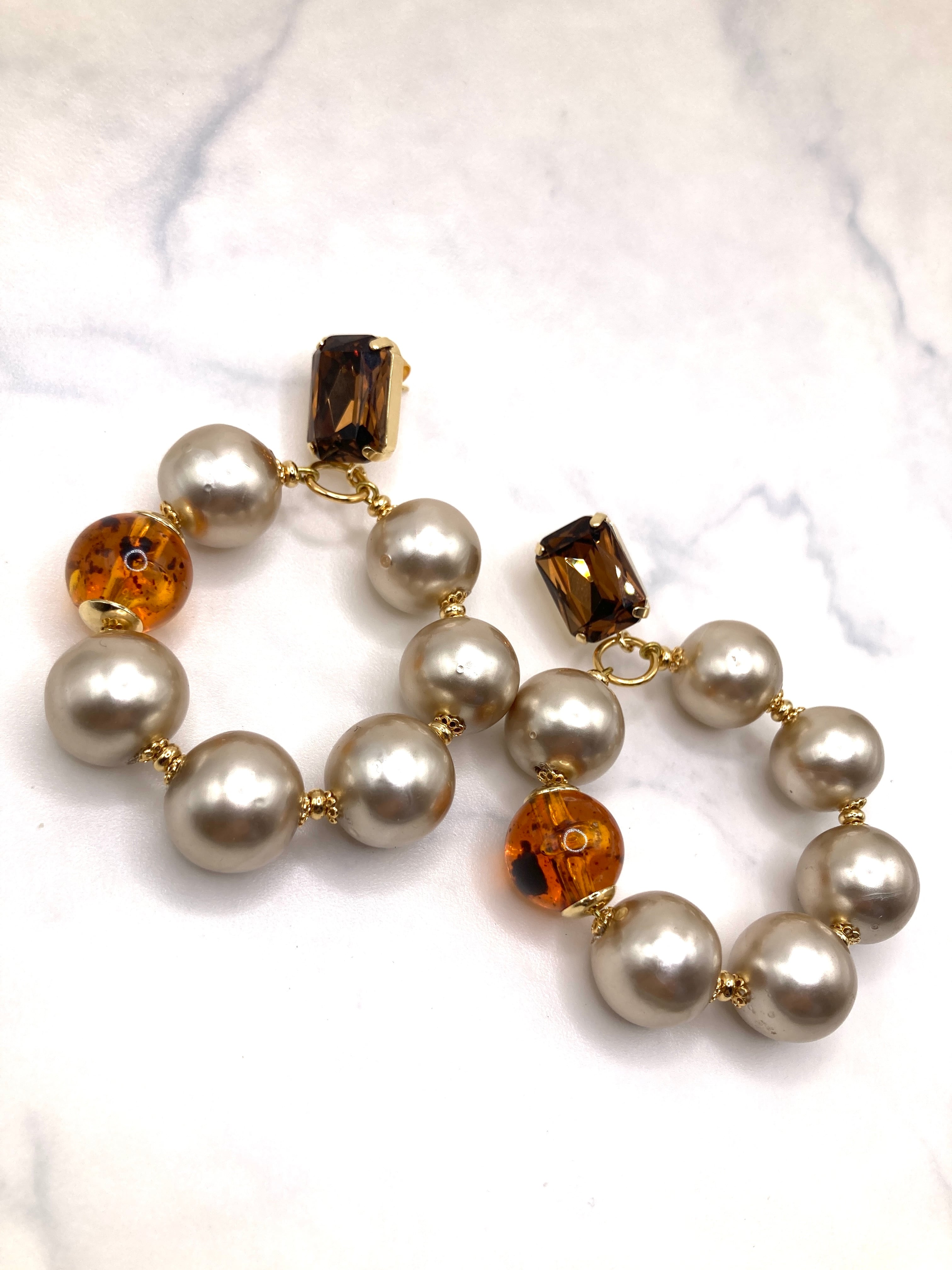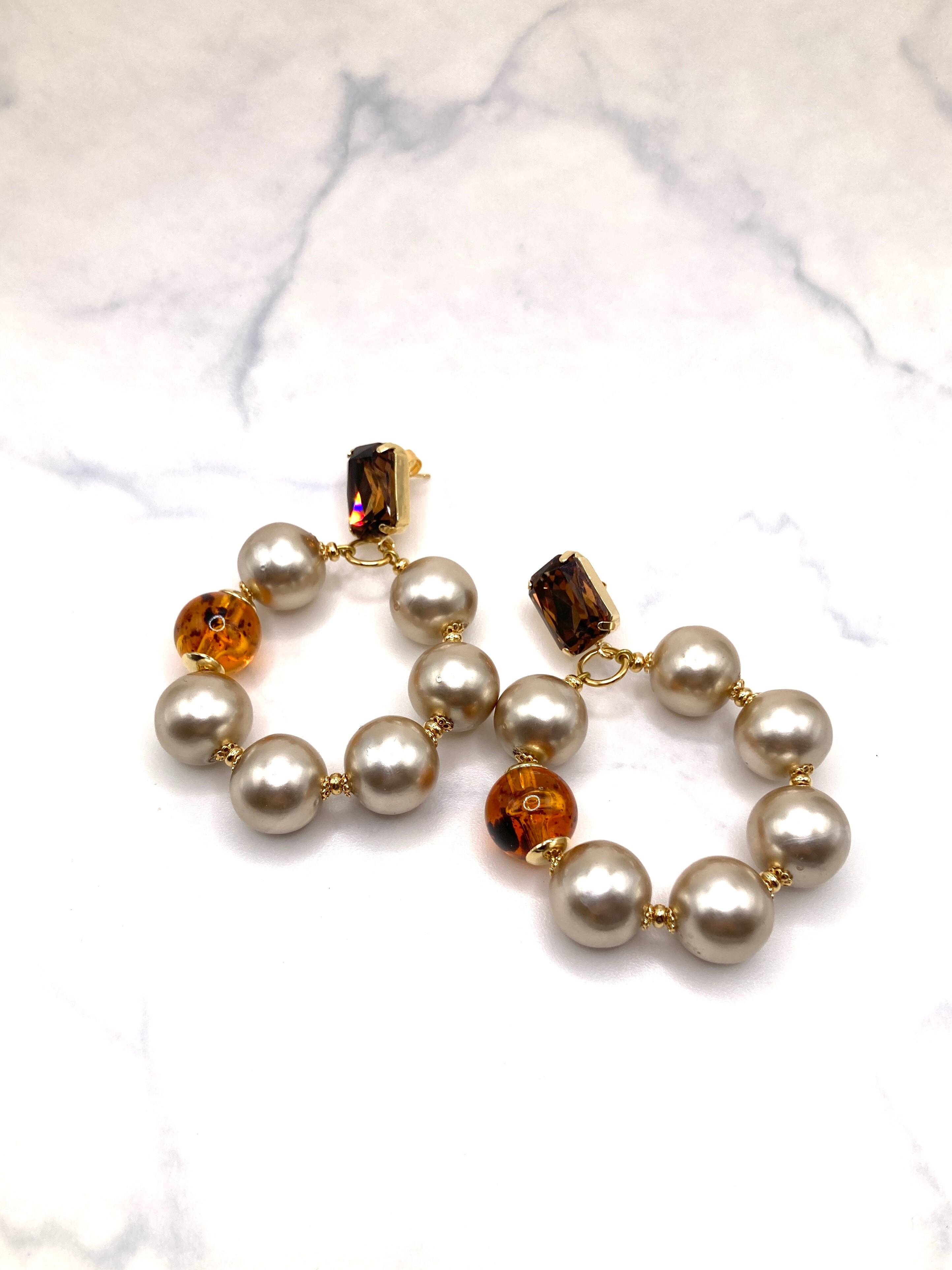 CIRCULATION送料無料【JULIE SION ジュリーシオン/フランス】パールフープ ブラウン イヤリング ピアス NO: CREOLES OXFORD LOOPS / Topaze(ブラウン)