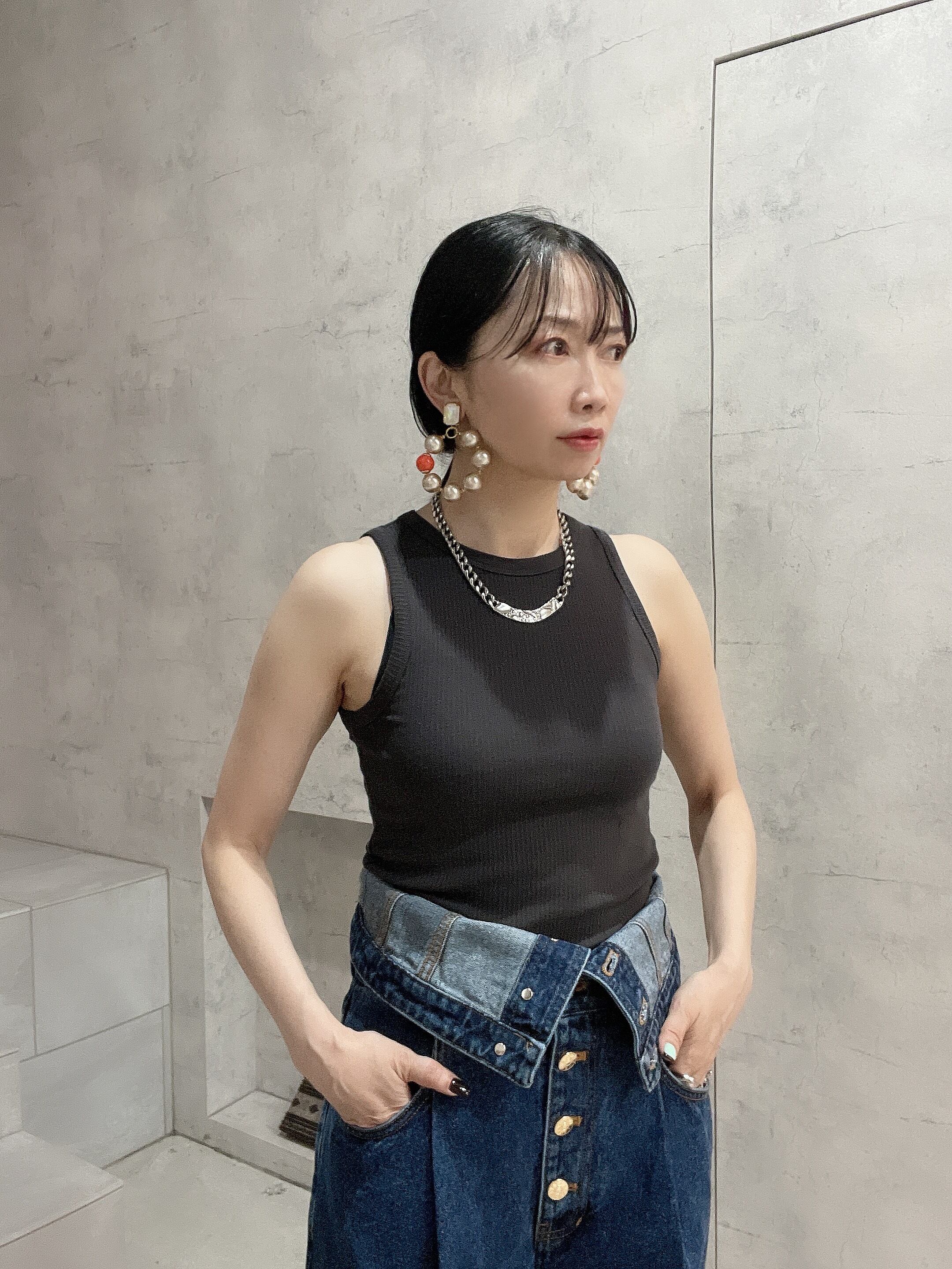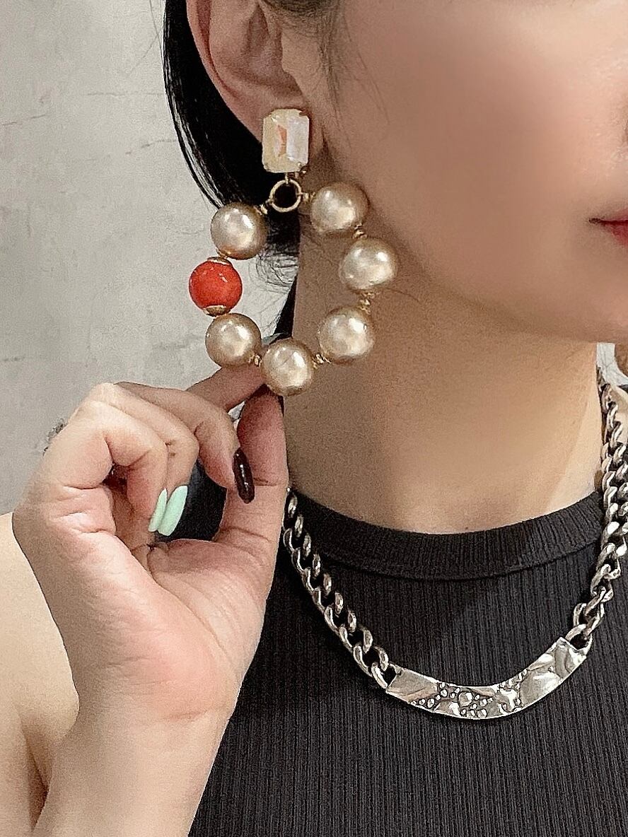 大ぶりなパールフープがスタイルのポイントになってくれます。