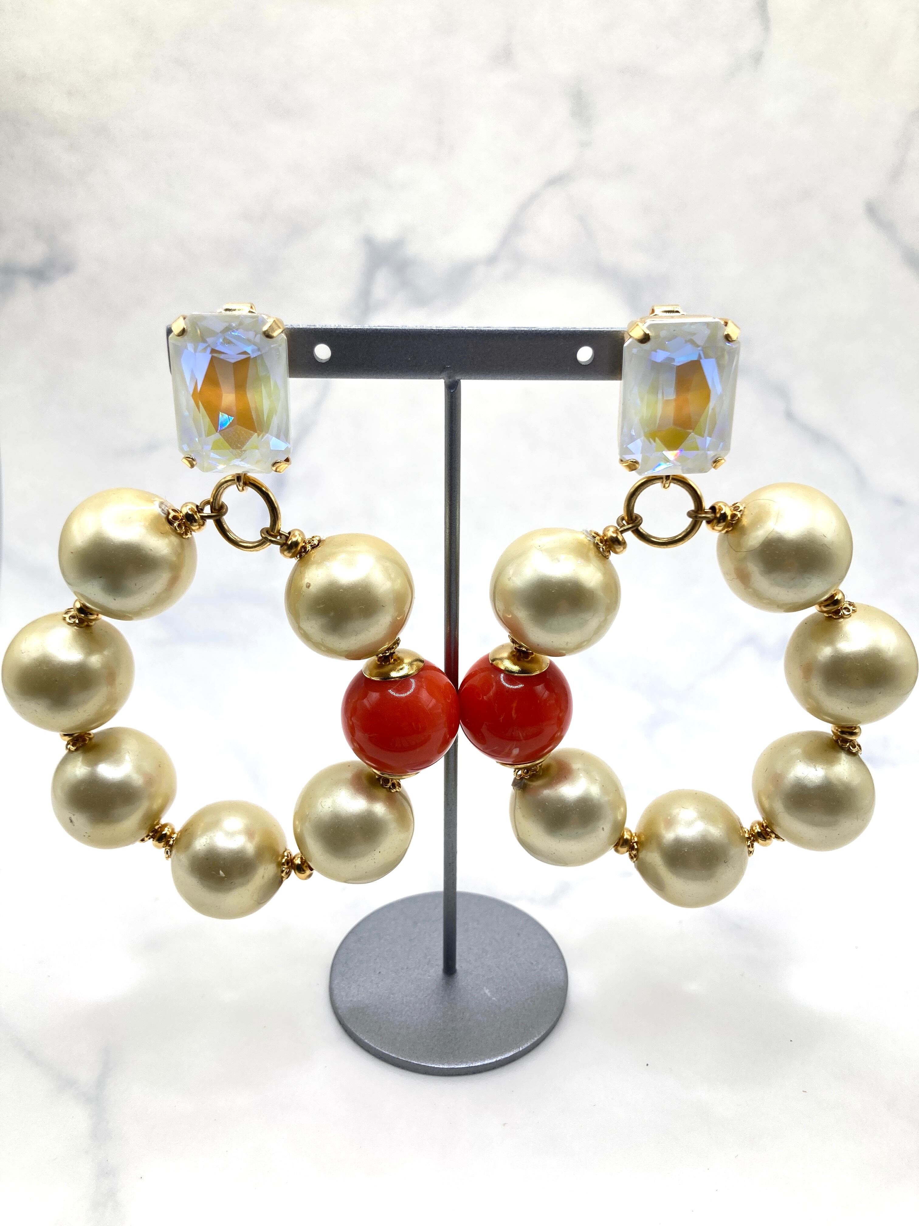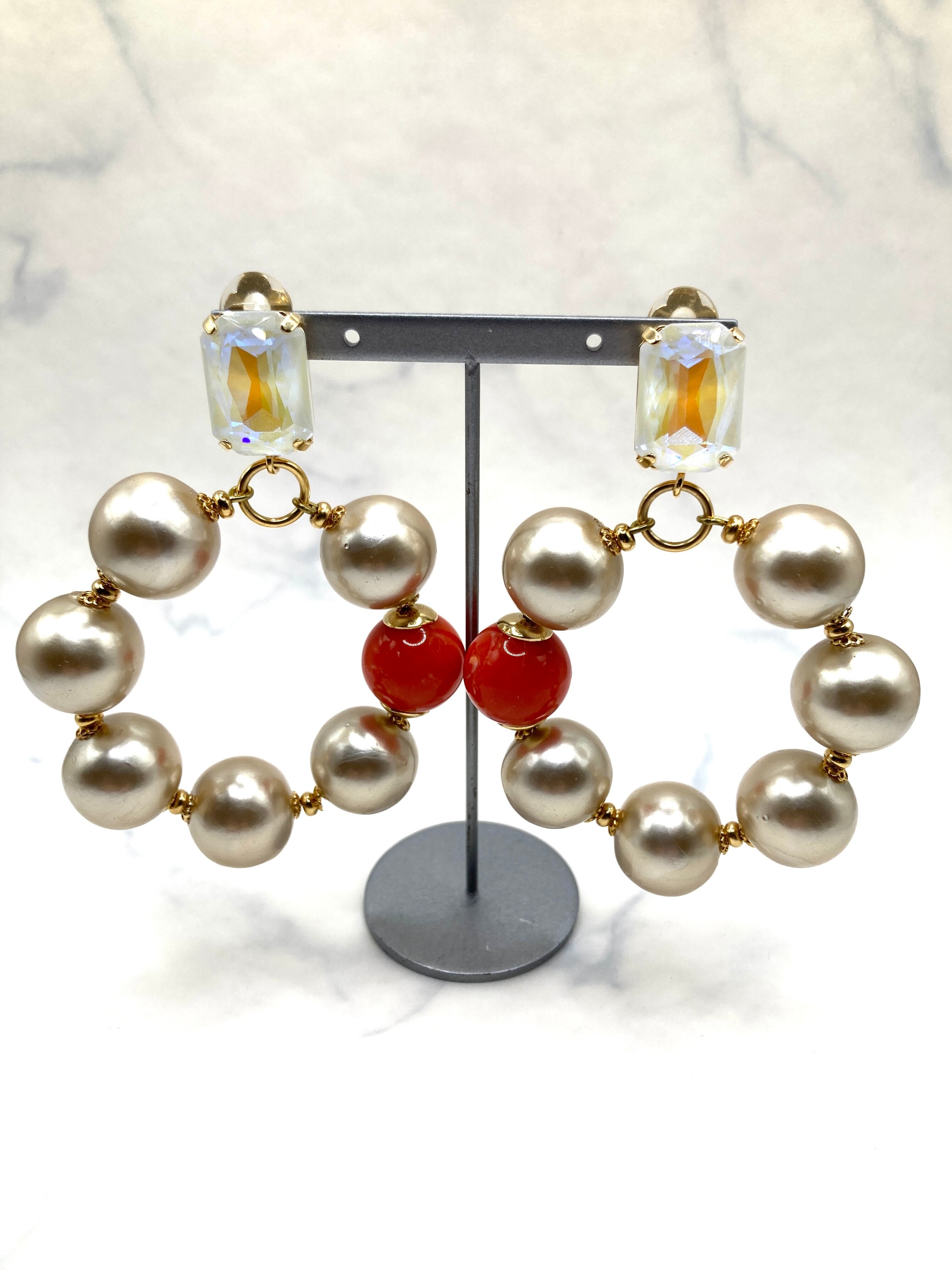 CIRCULATION送料無料【JULIE SION ジュリーシオン/フランス】パールフープ オレンジ イヤリング ピアス NO: CREOLES OXFORD LOOPS / Orange