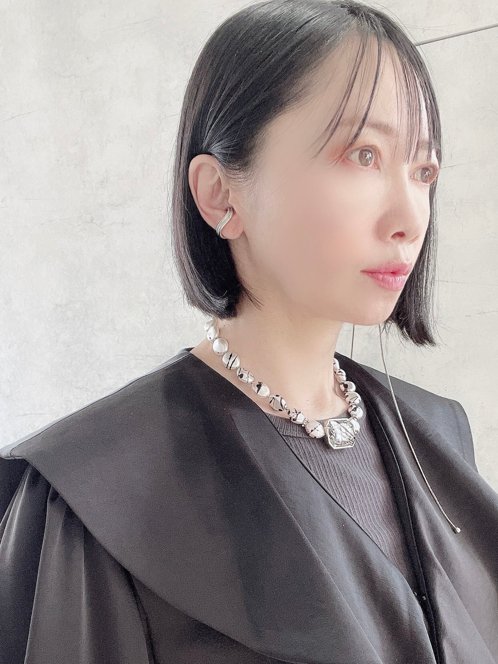 白と黒、フェミニンでありながらロック、洗練されたイメージを与えつつ、どこか優雅でシックな雰囲気が際立つジュエリーは、クリスタルや天然石を用い「2つめの皮膚」のような繊細な付け心地も特徴。