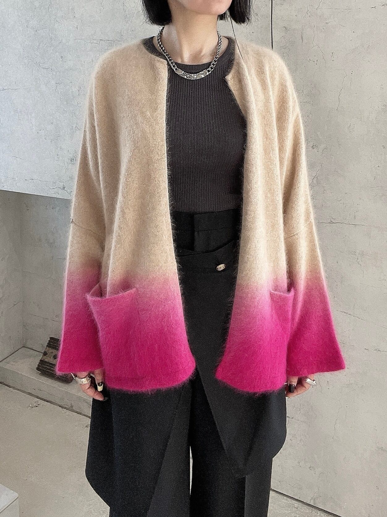 CIRCULATION送料無料【A・POIL アーポワル/フランス】ラクーングラデカーディガン ラクーン100% グラデーション ベージュ ピンク NO: AP FAIENCE/ / COL K(Porcelain/Print:Rose Lipstick)