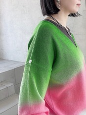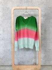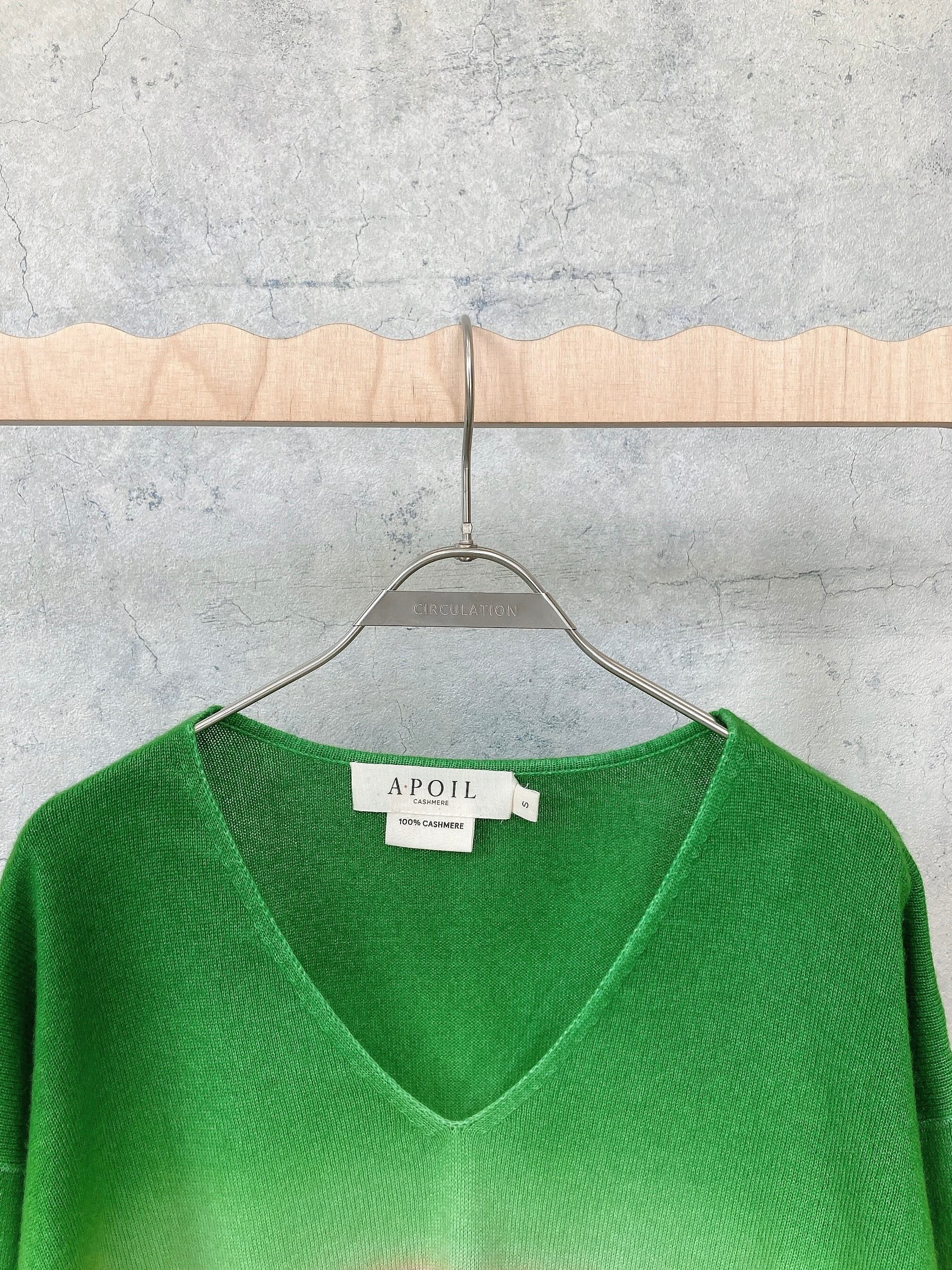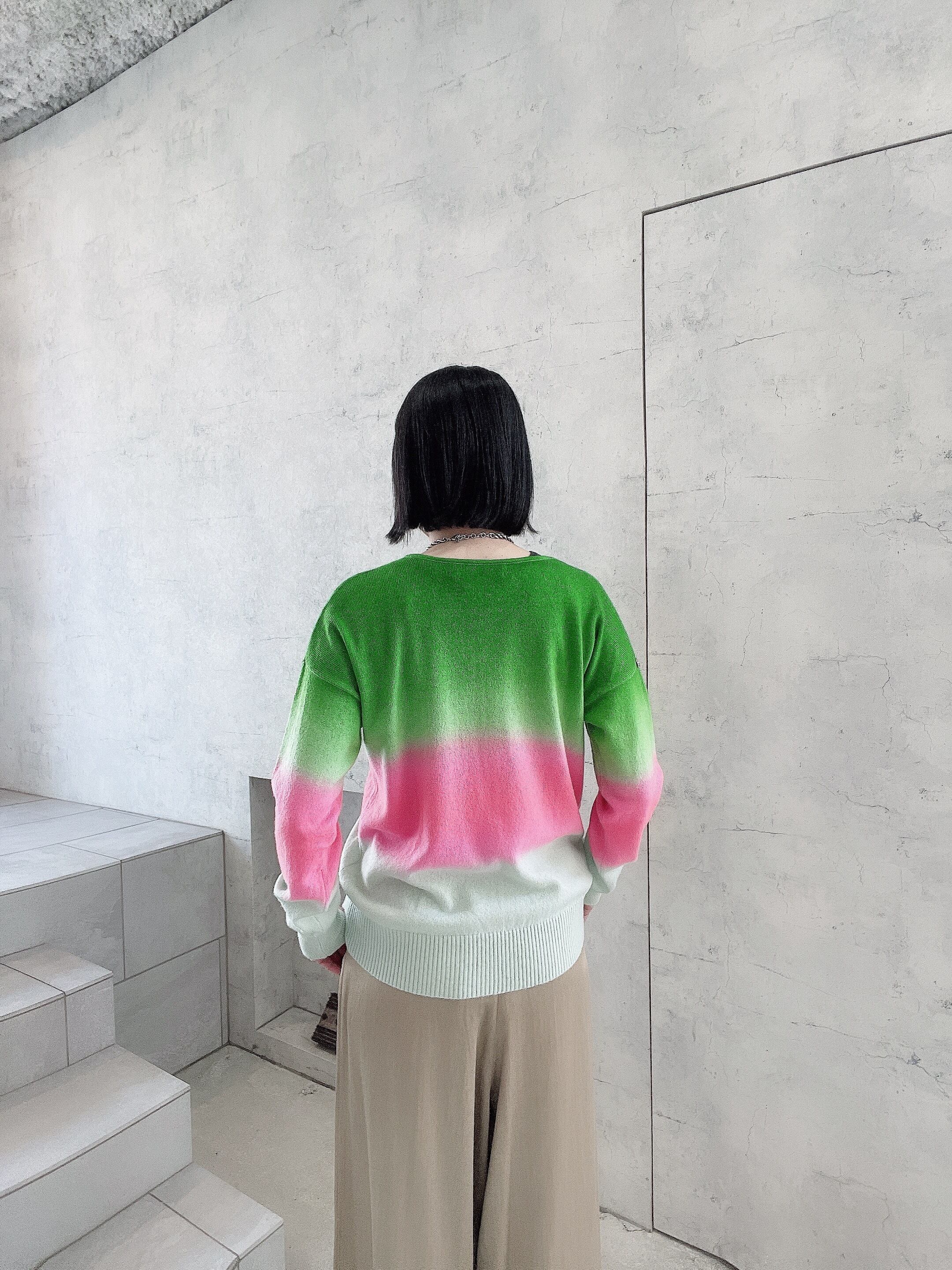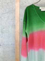 CIRCULATION送料無料【A・POIL アーポワル/フランス】Vネックグラデーションカシミヤニット カシミヤ100% グリーン ピンク ブルー NO: AP HANGOVER/ / COL B(Spray/Print:Flash/Dayglo)