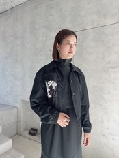 デザイナーがパリでの写真をデジタルプリントしてオリジナルテキスタイルを使用したブルゾン。