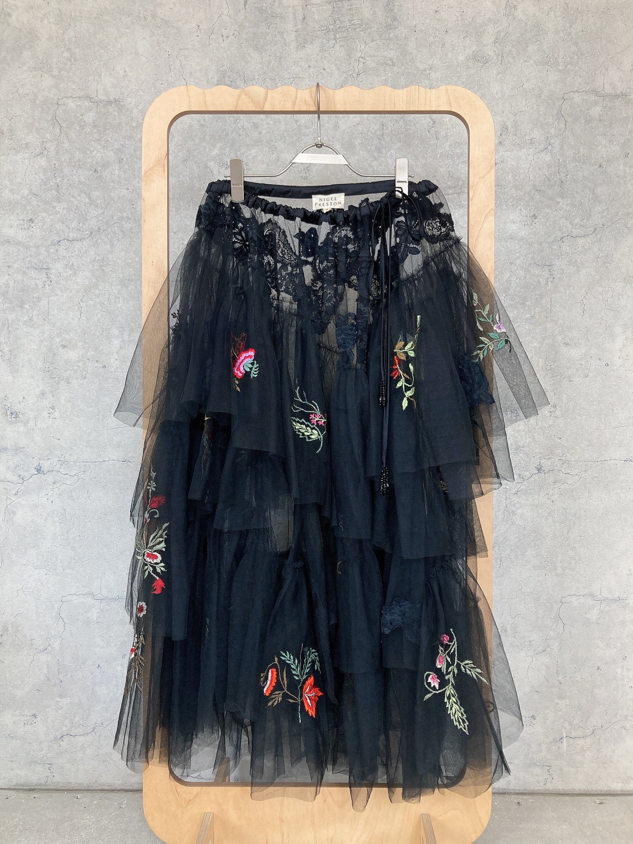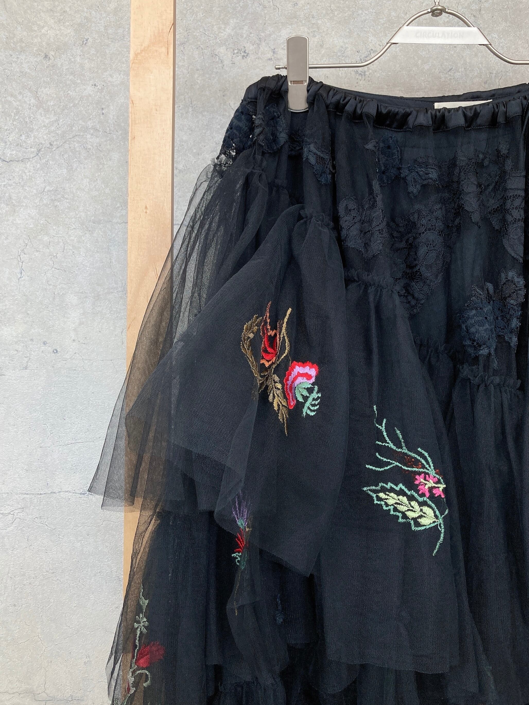 CIRCULATION送料無料【NIGEL PRESTON ナイジェル・プレストン/イギリス】 チュールロングスカート 刺繡 レース NO:NPBK25314/BK25314P / BLACK