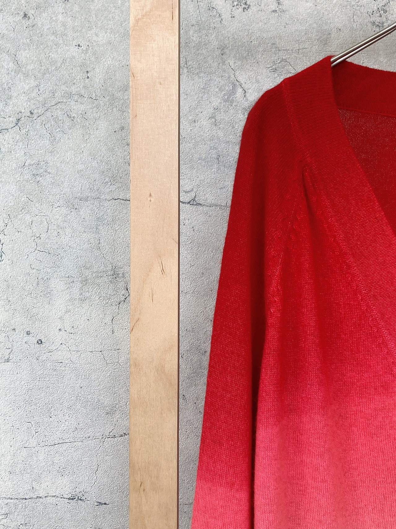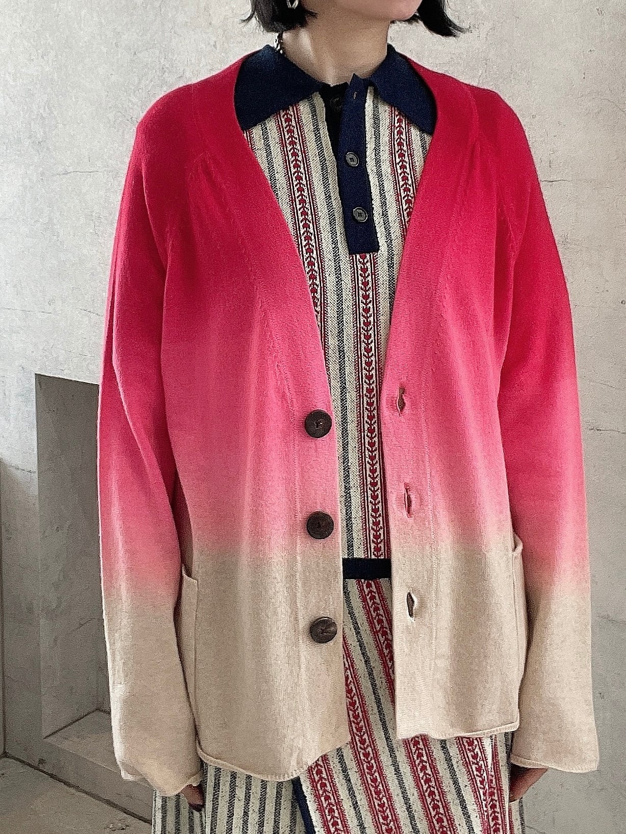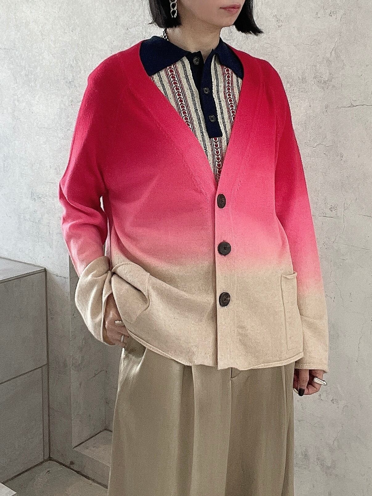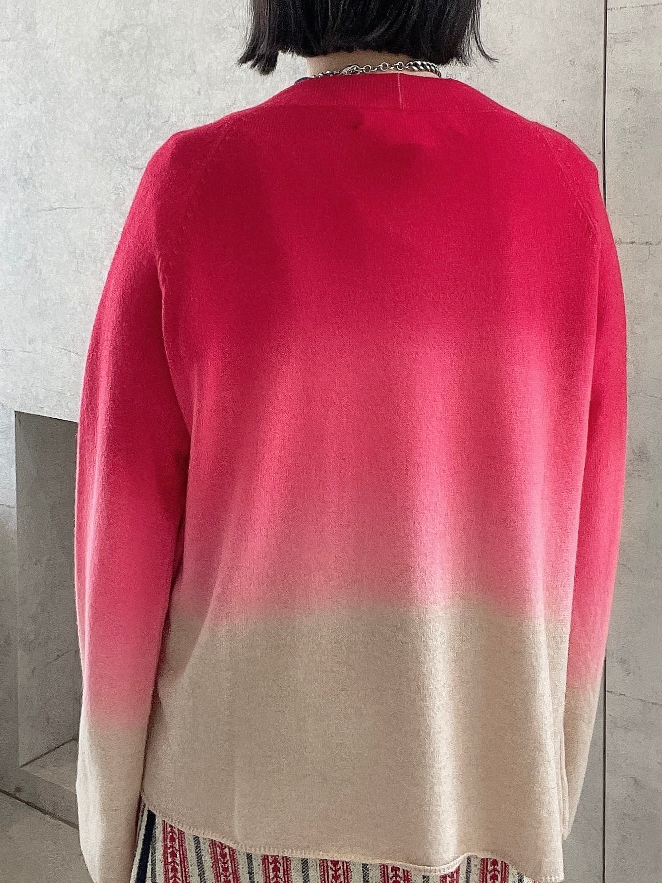 グラデーションが目を惹く後染めカシミヤ100%カーディガン。