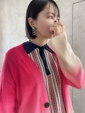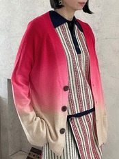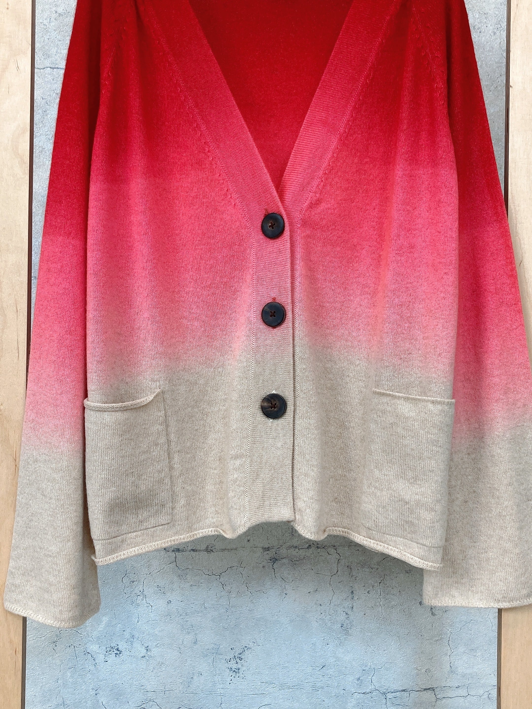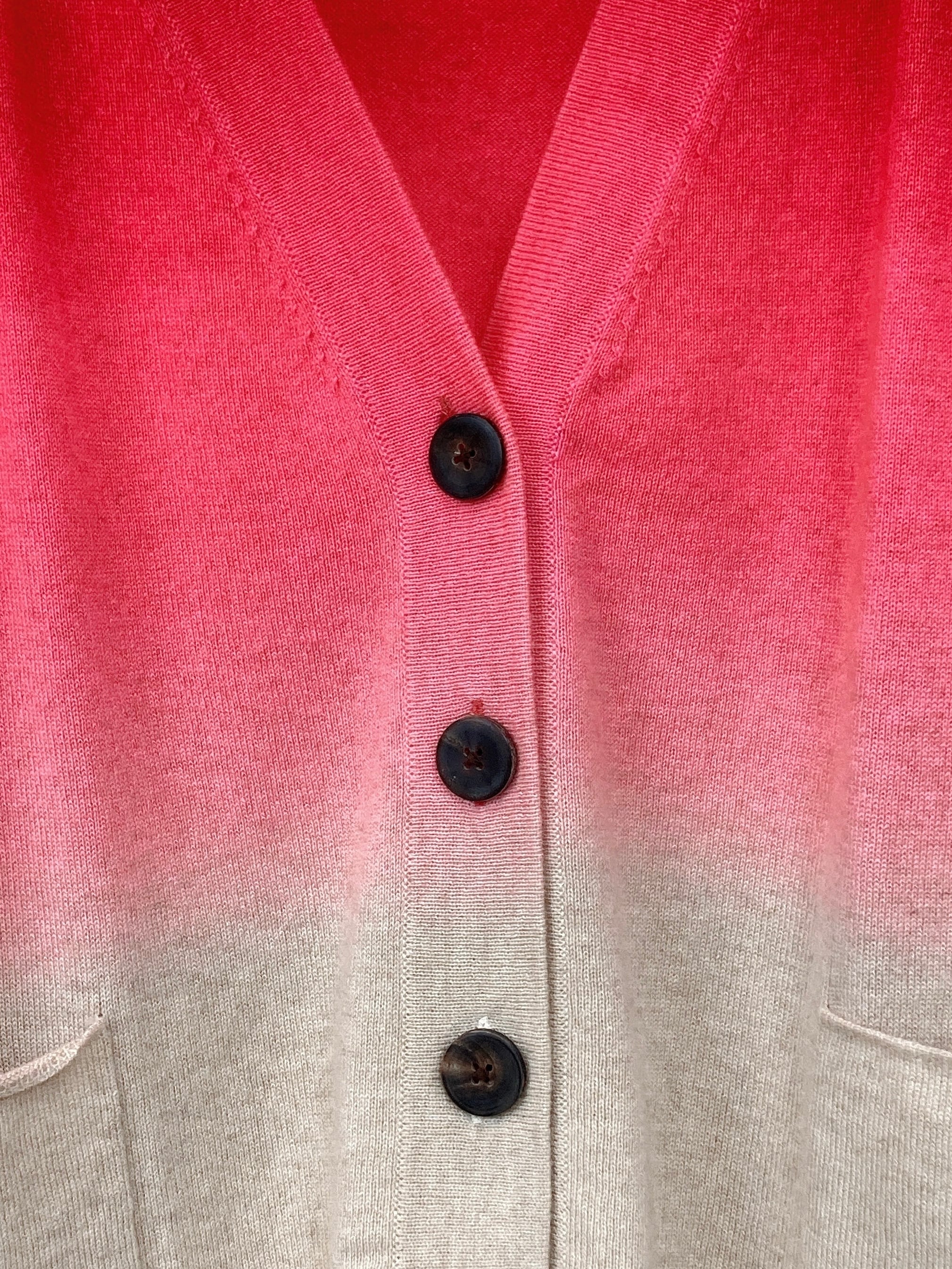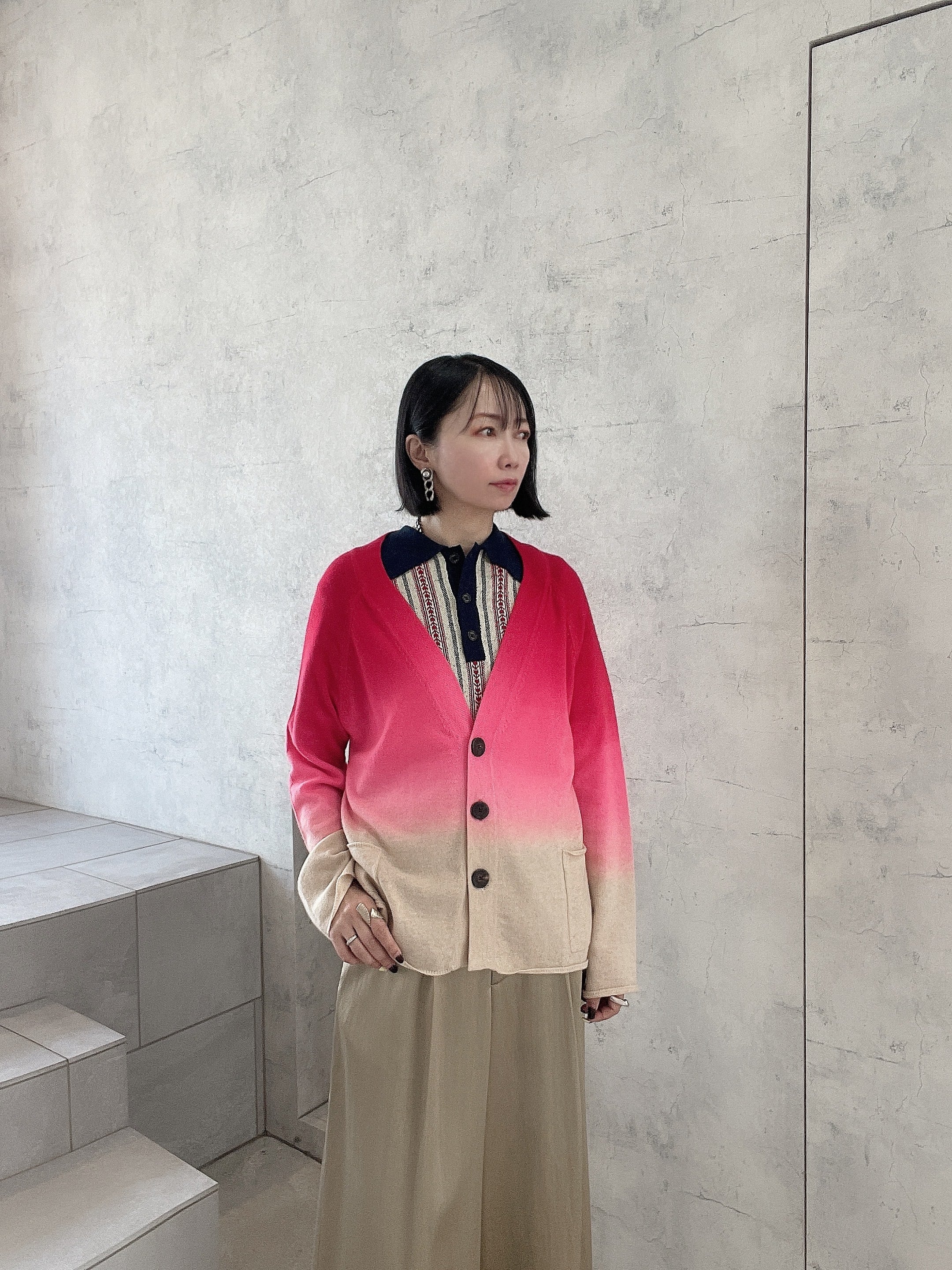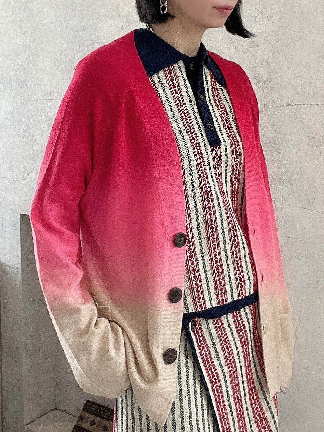 グラデーションが目を惹く後染めカシミヤ100%カーディガン。