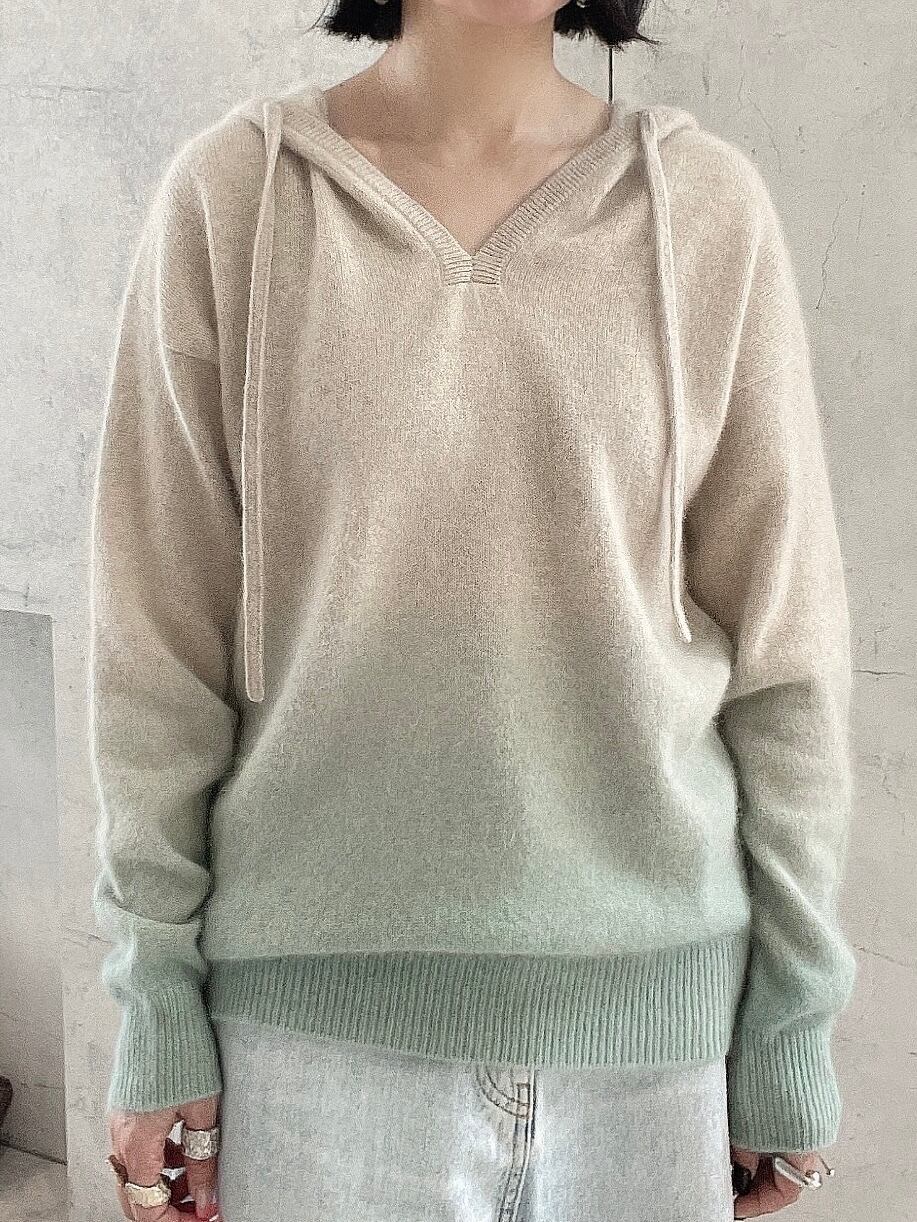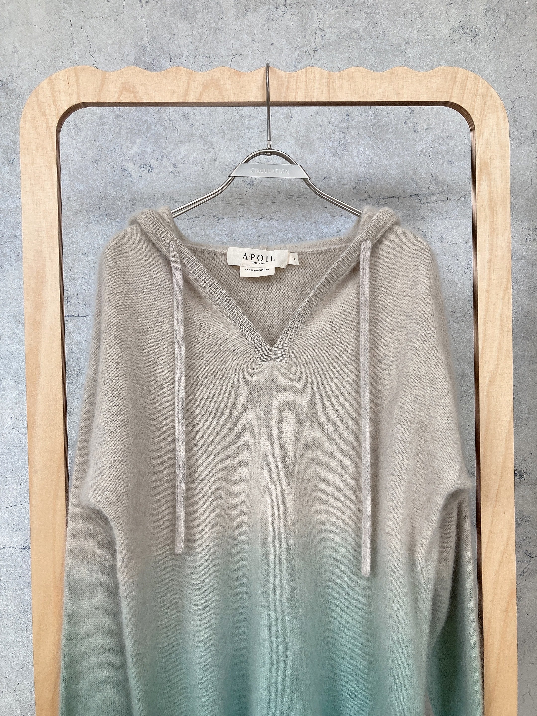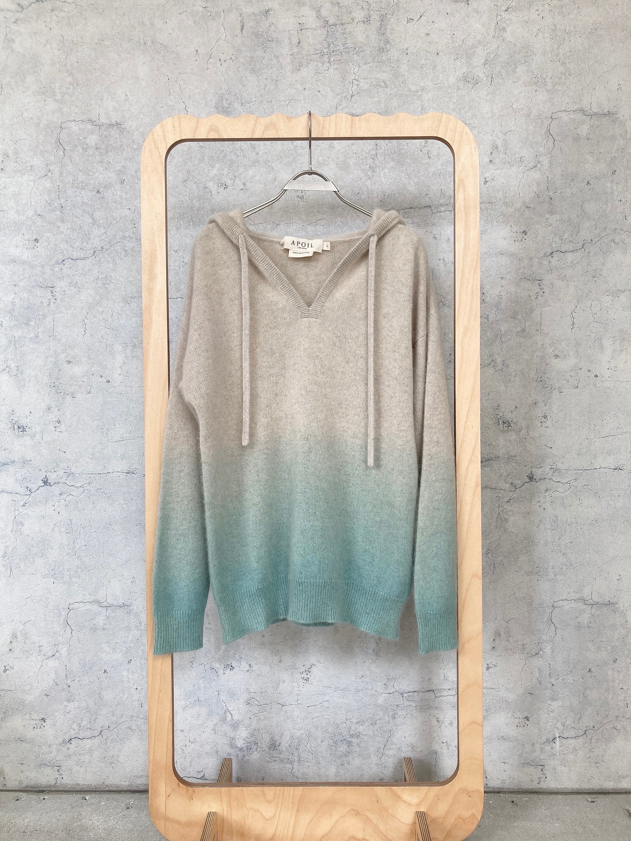 CIRCULATION送料無料【A・POIL アーポワル/フランス】ラクーングラデVネックフーディーニット ラクーン100% グラデーション ベージュ ブルー NO: AP FABULEUX25AW / COL J(Porcelain/Print:Tiffany)