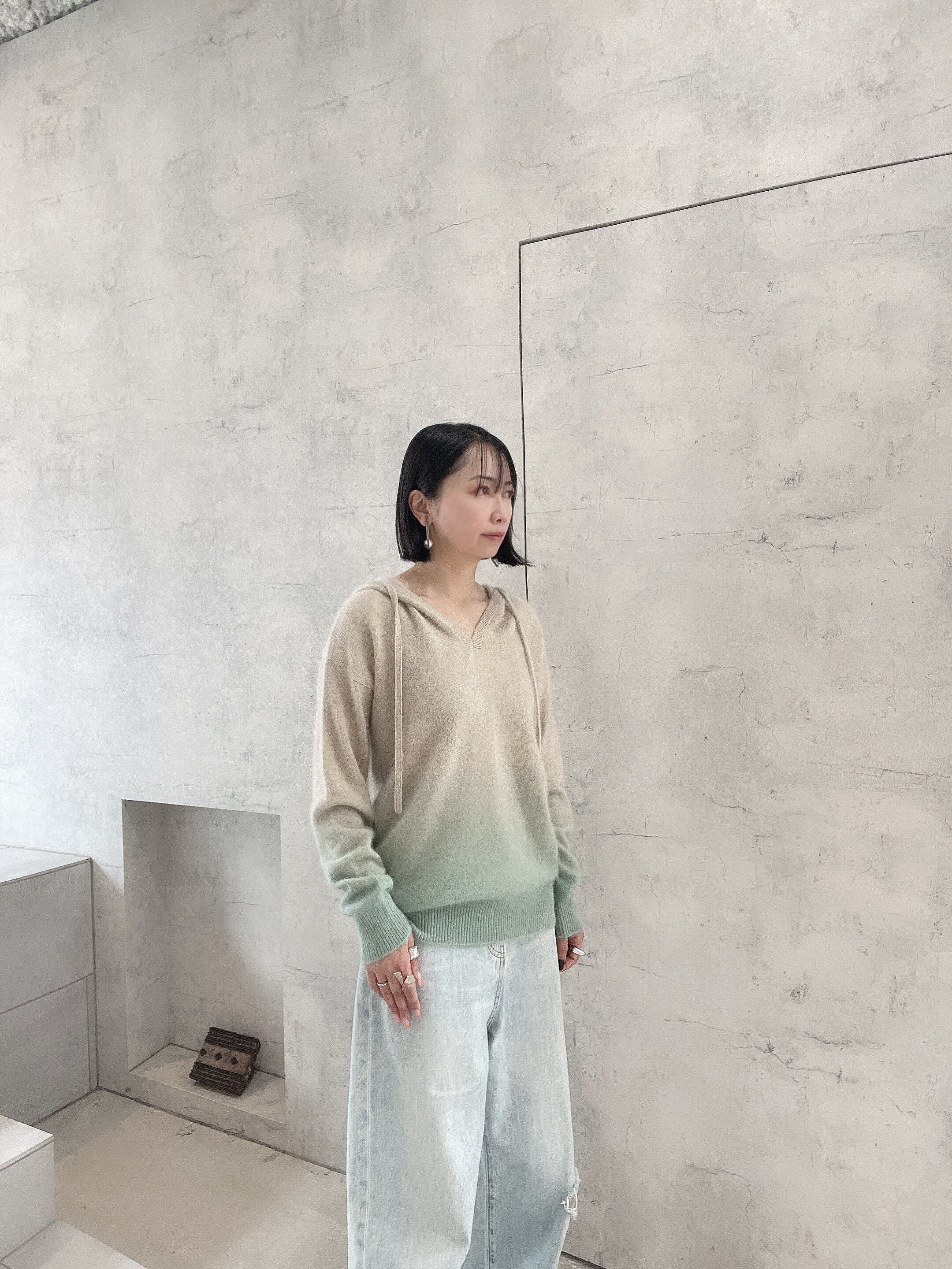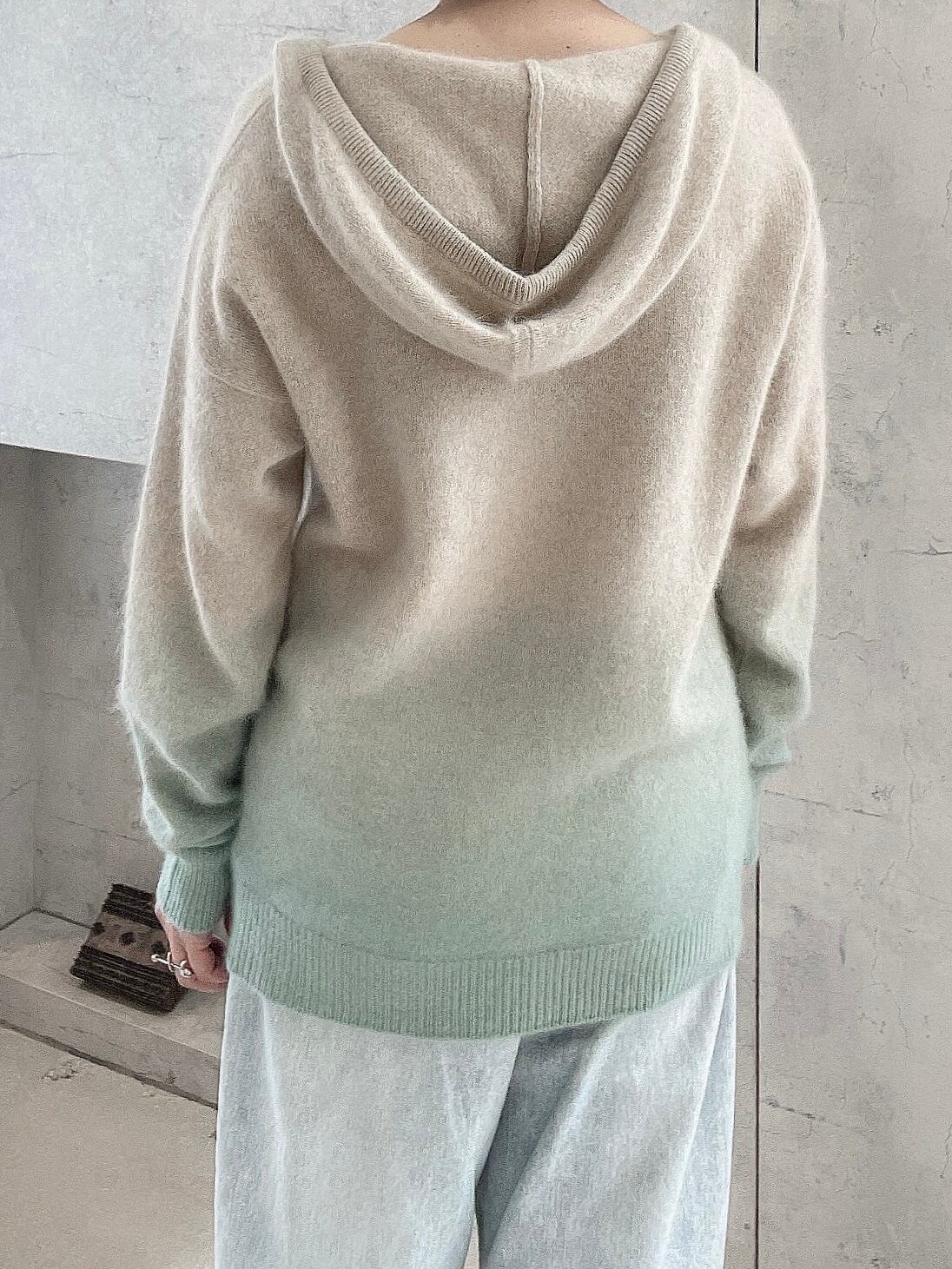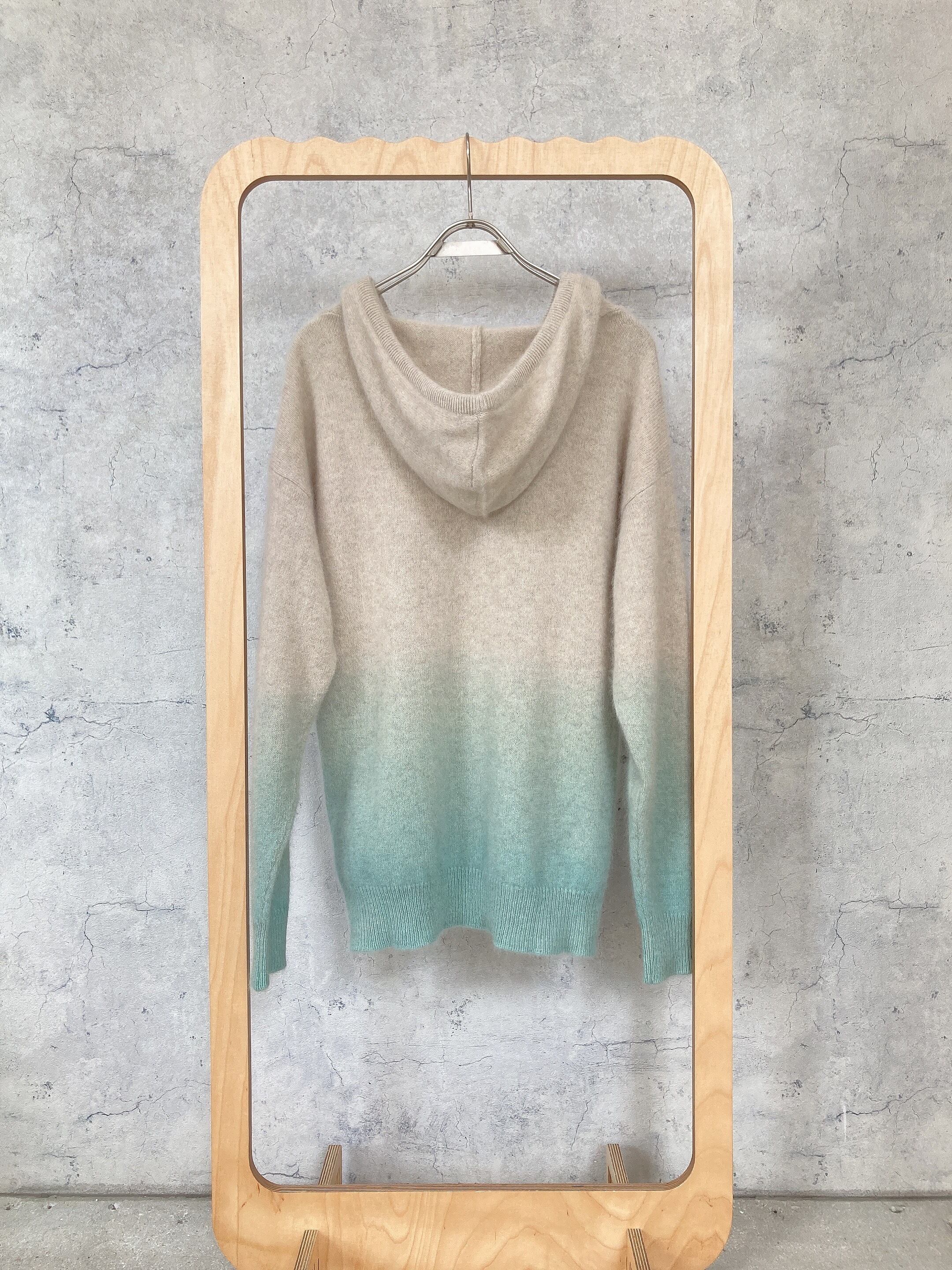 CIRCULATION送料無料【A・POIL アーポワル/フランス】ラクーングラデVネックフーディーニット ラクーン100% グラデーション ベージュ ブルー NO: AP FABULEUX25AW / COL J(Porcelain/Print:Tiffany)