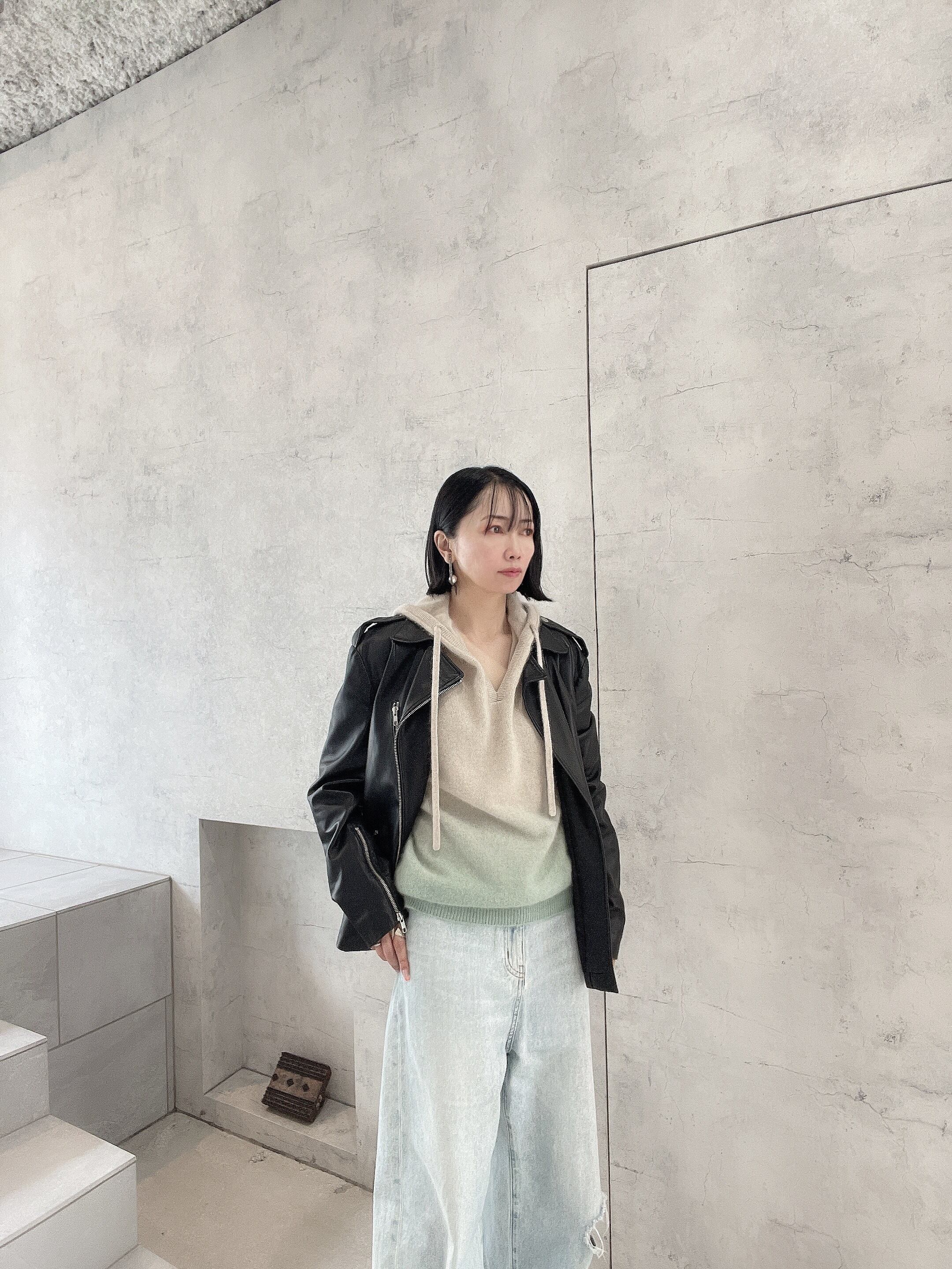デニムスタイルも1ランクスタイルアップしてくれる一枚。ジャケットやライダースからフードを出して