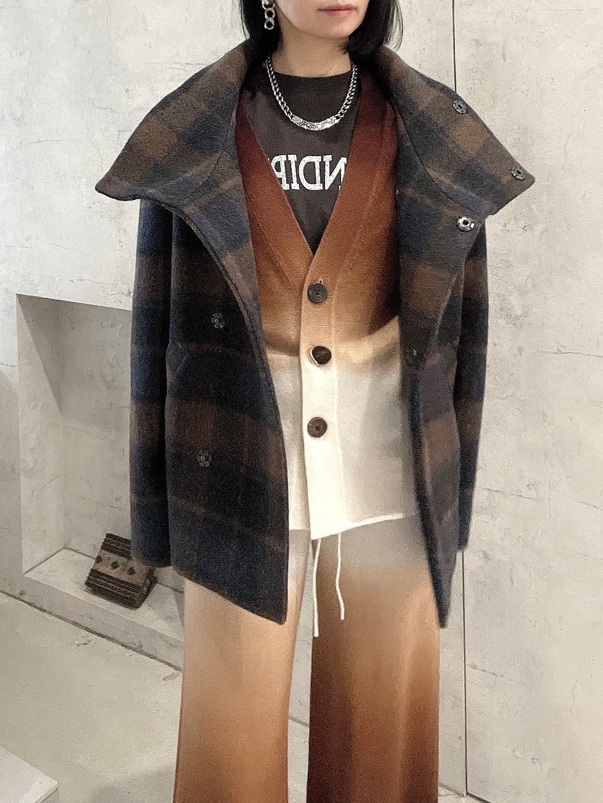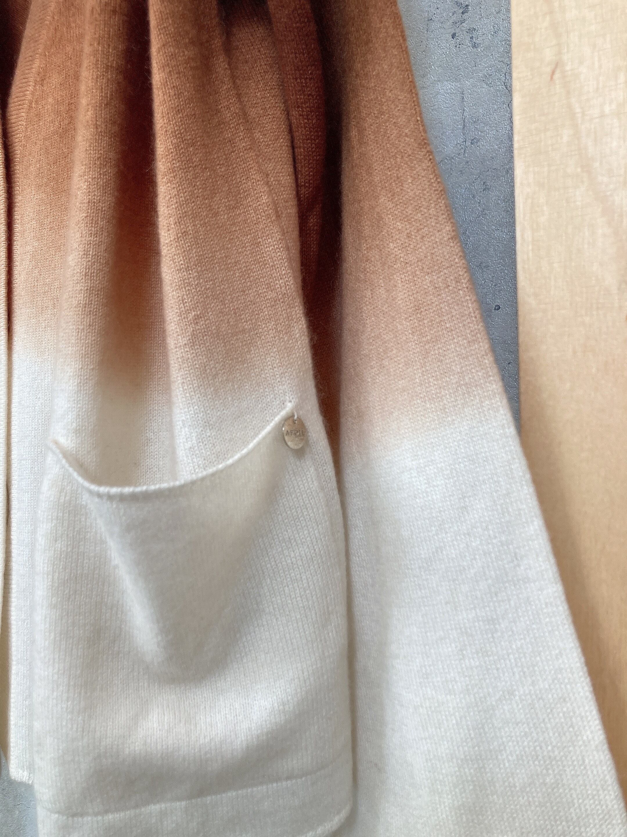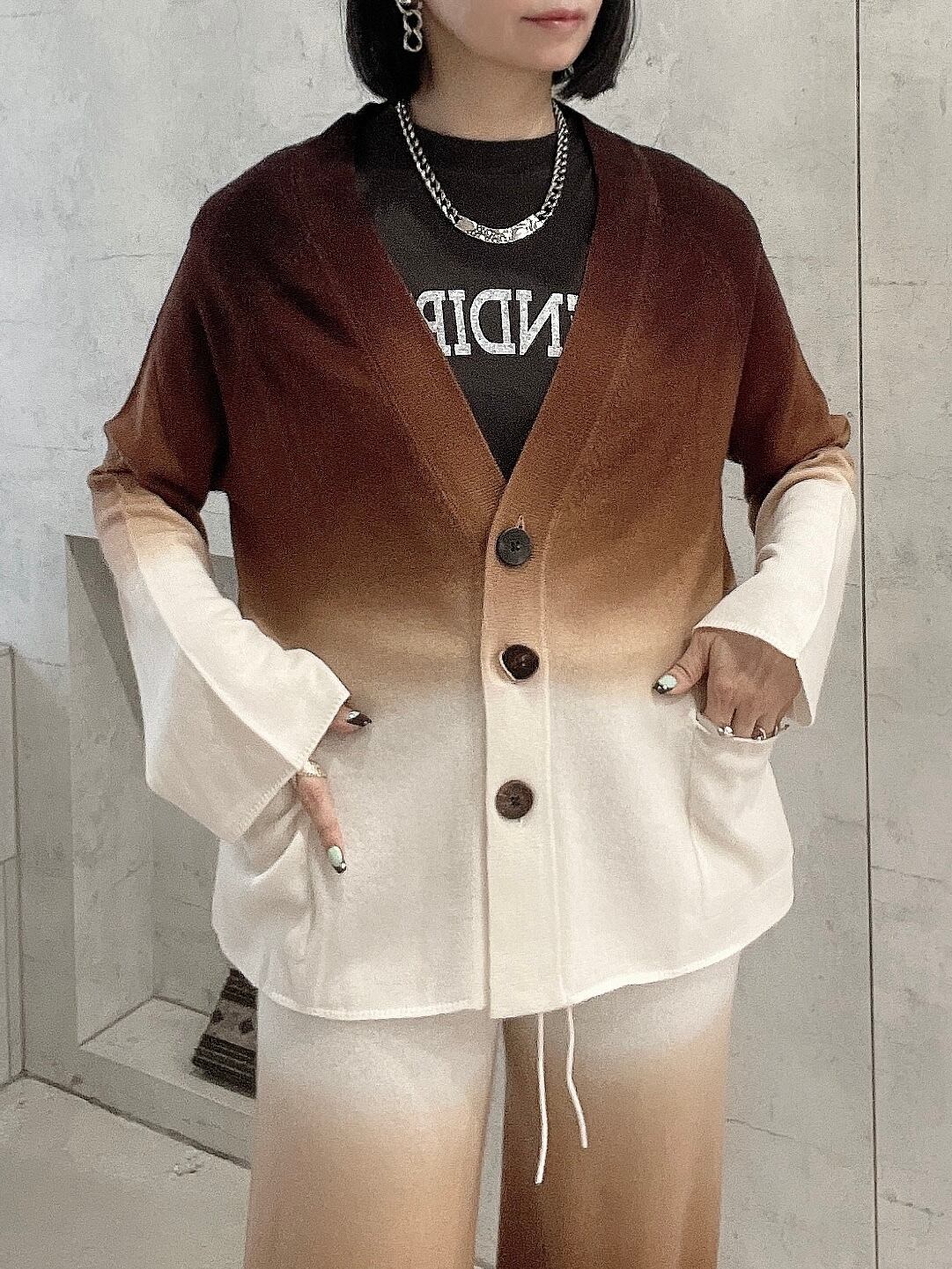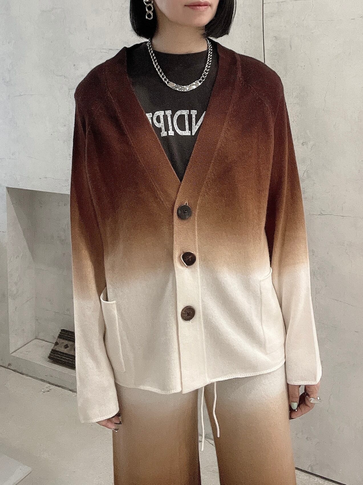 コートやジャケットのinにもサマになるグラデーション。後染めで1点1点グラデーションに染色する為、高度の技術と手間が必要です。