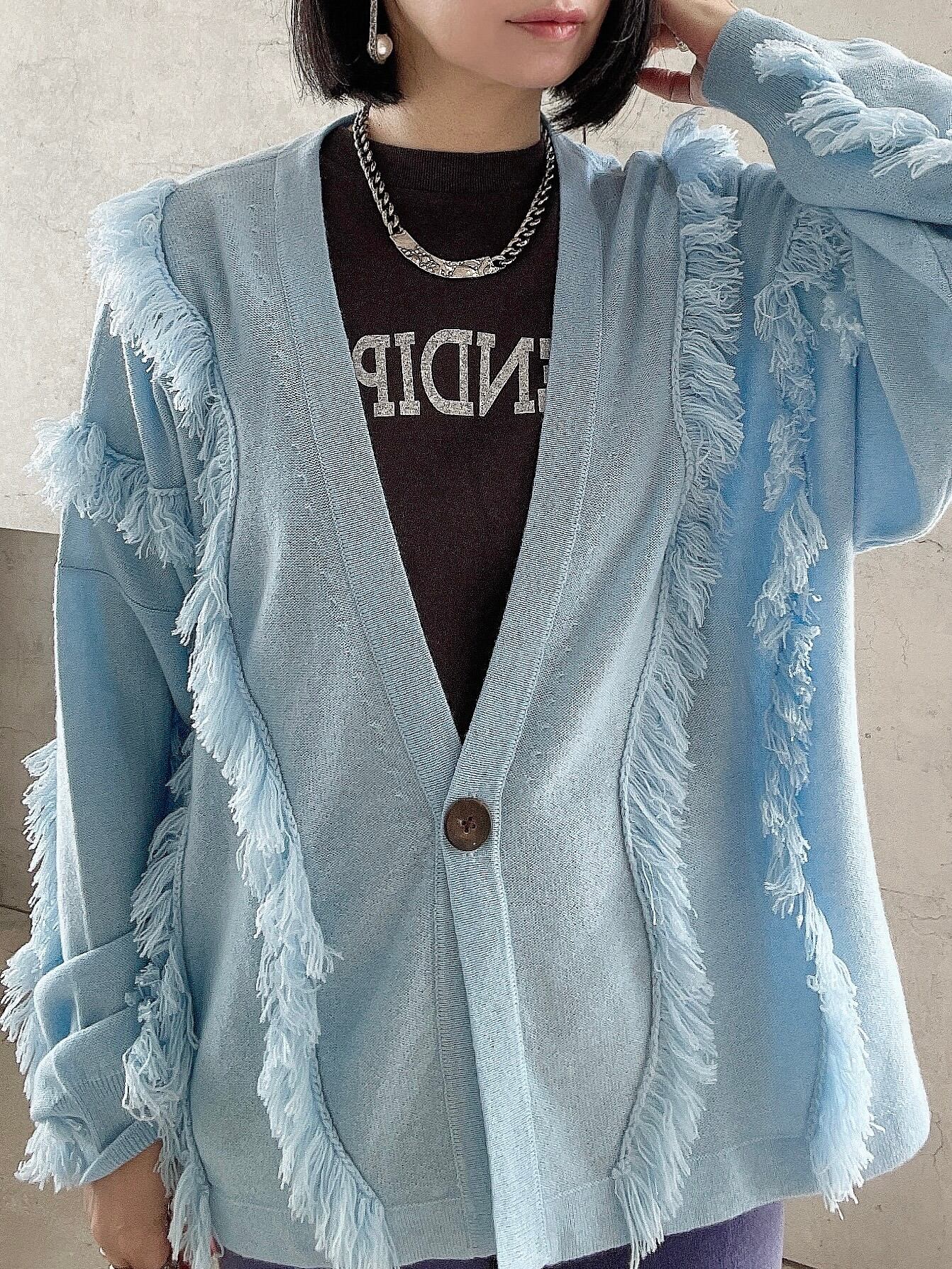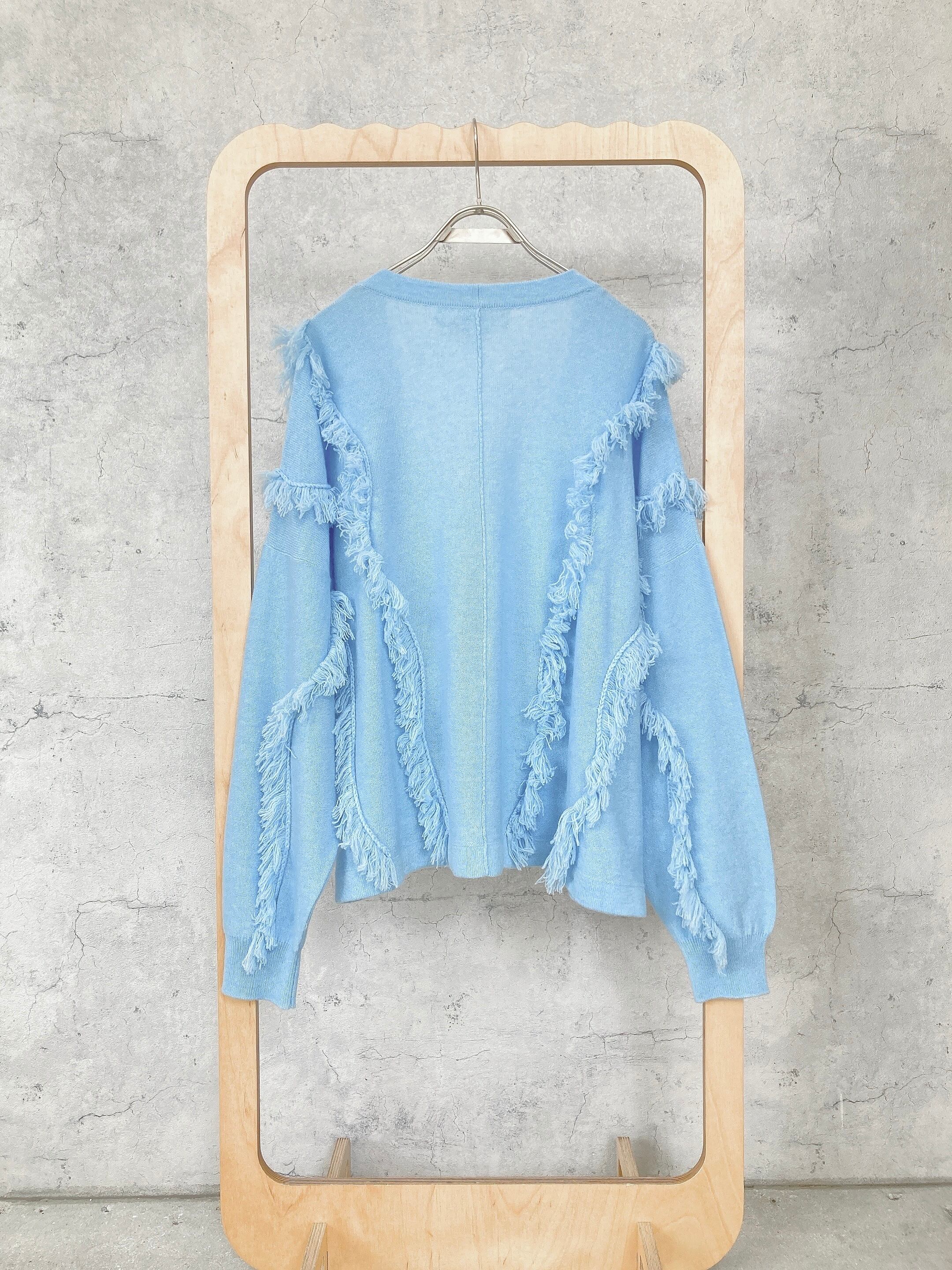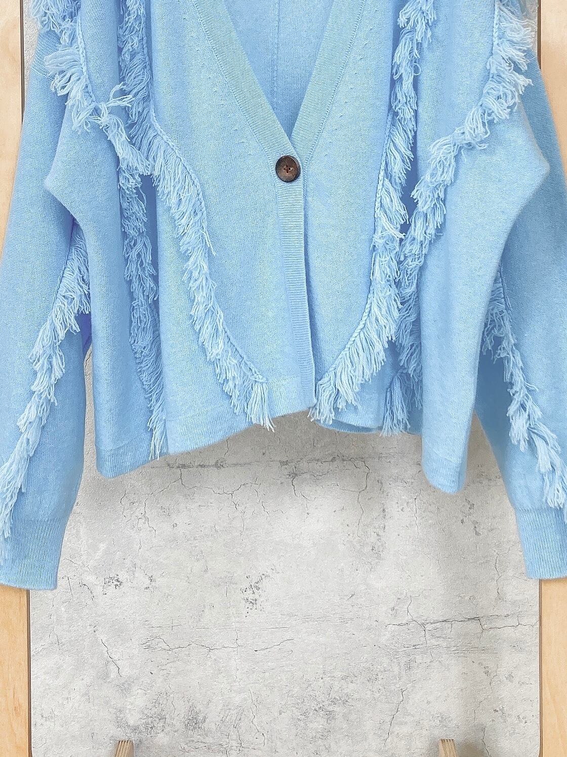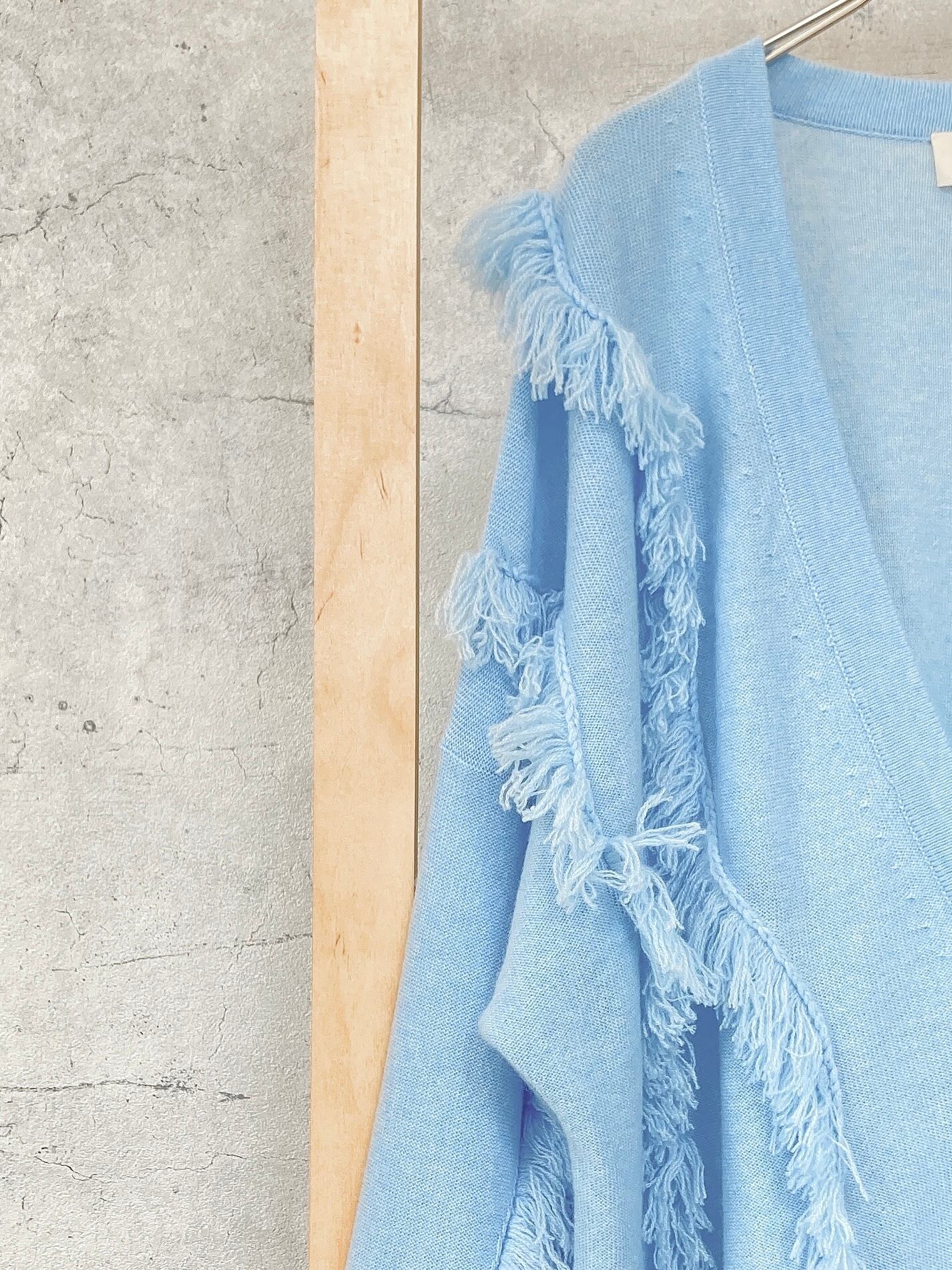 CIRCULATION送料無料【A・POIL アーポワル/フランス】100%カシミヤ フリンジカーディガン フリンジ ブルー NO: AP HADALLAU / Stratosphere(ブルー)