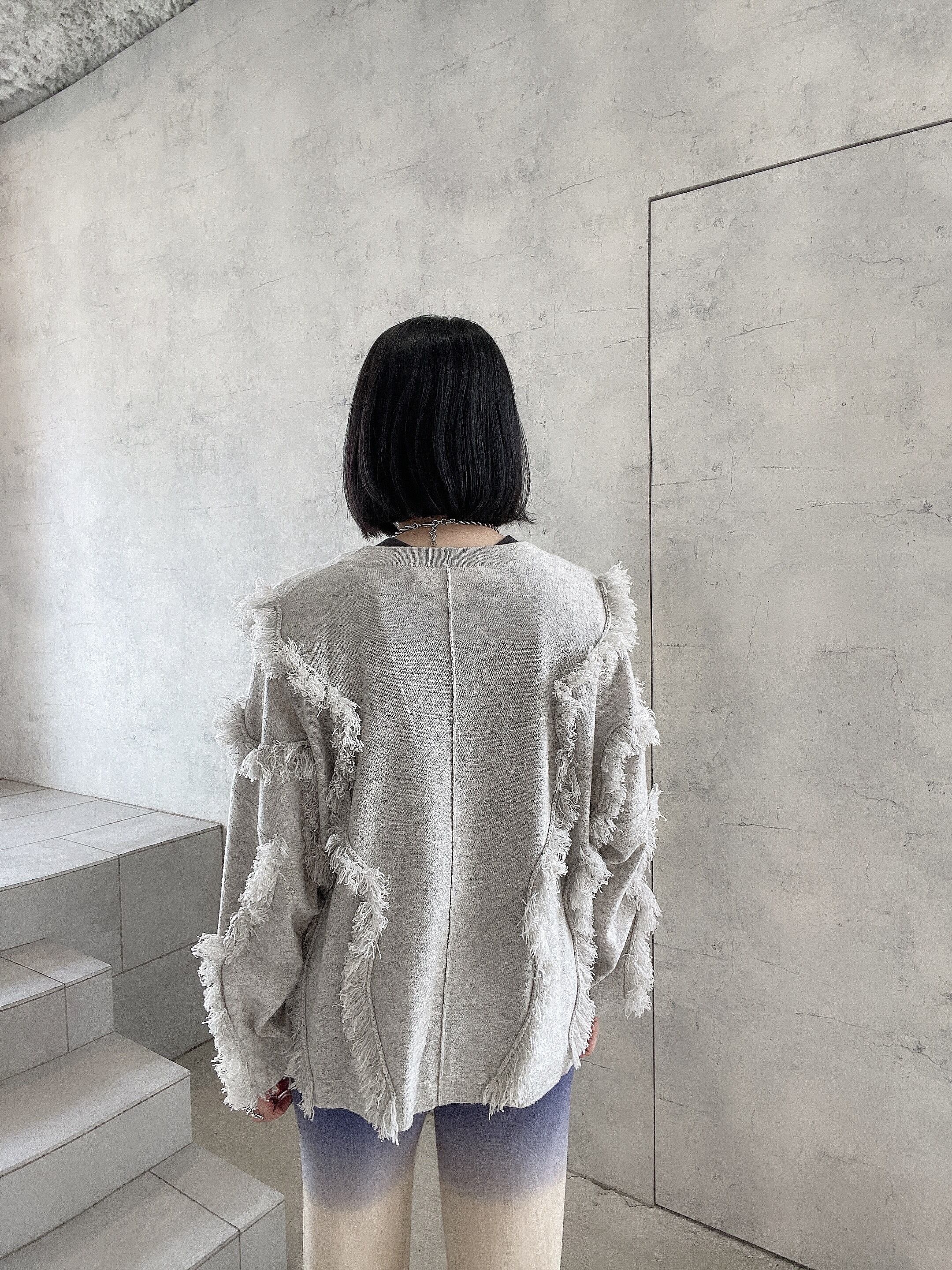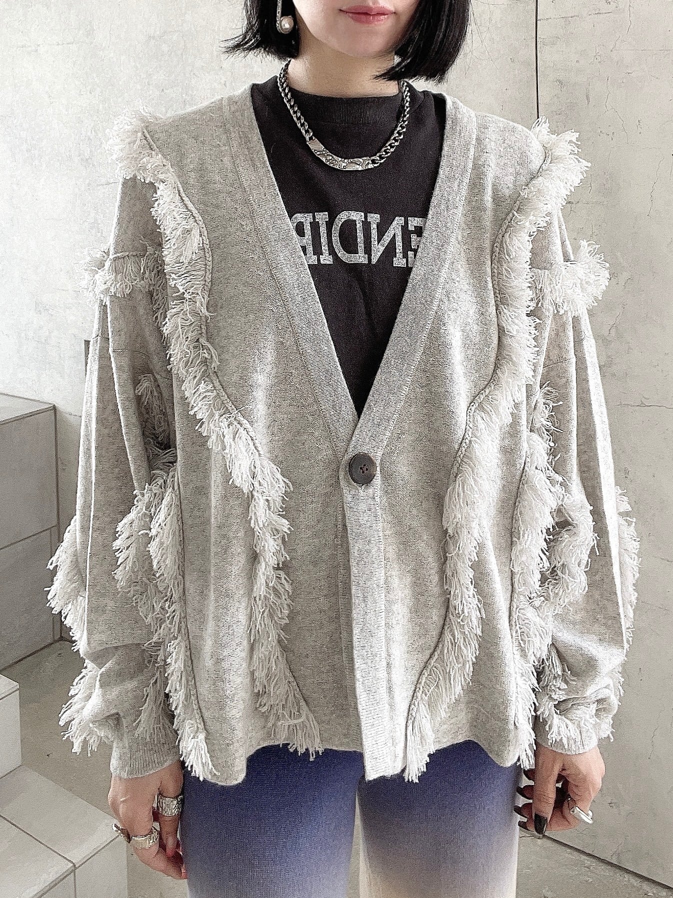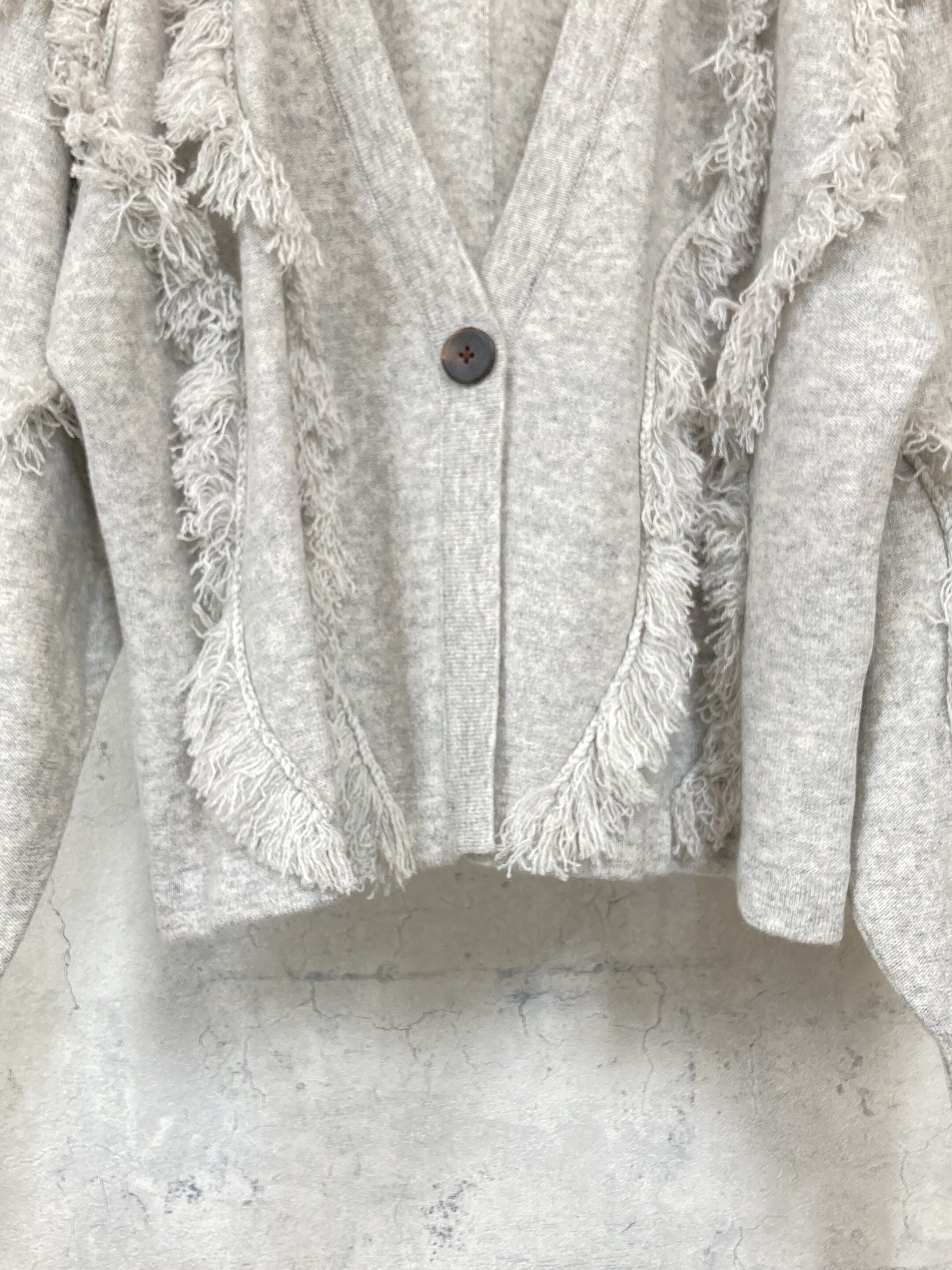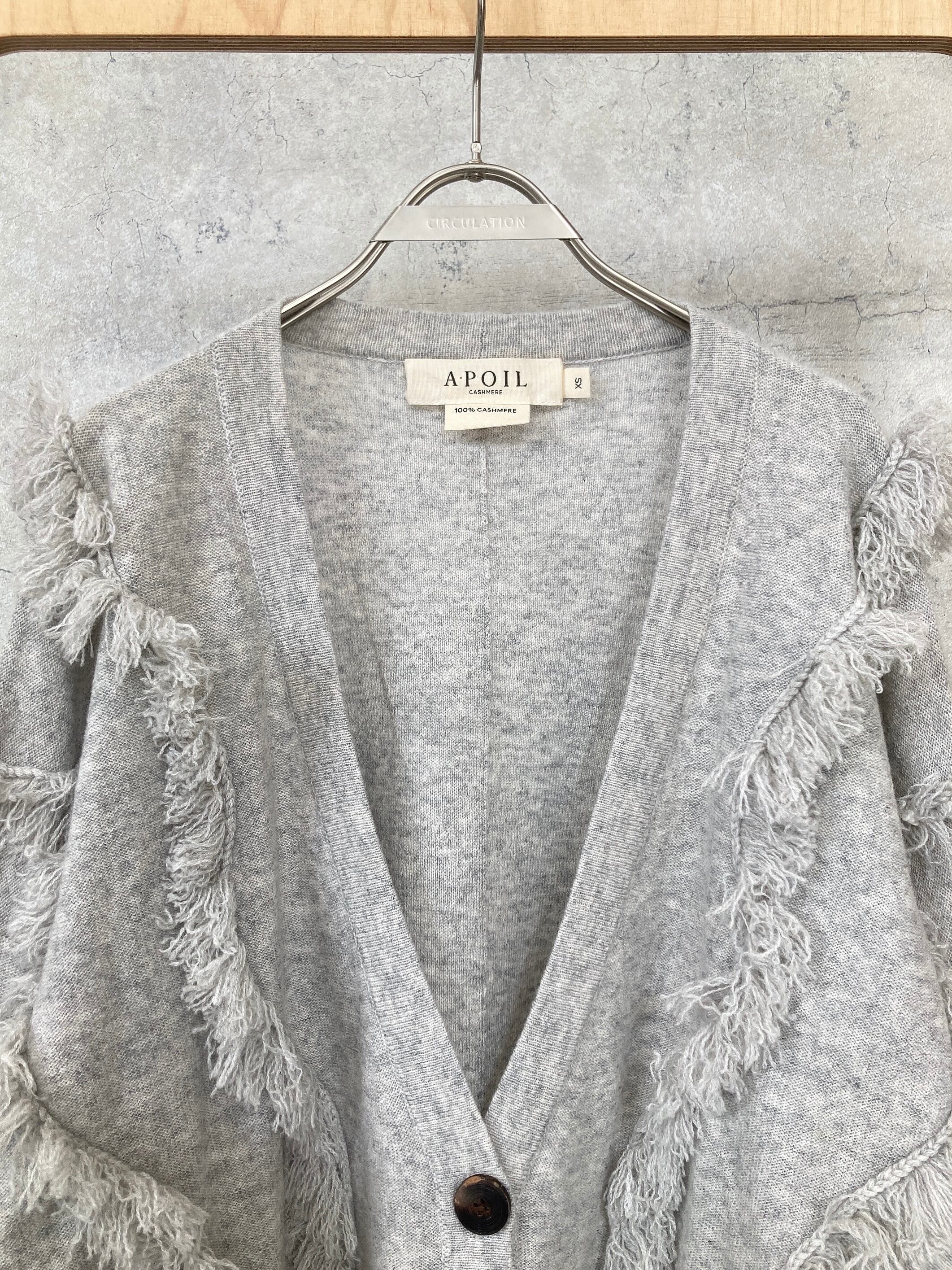 CIRCULATION送料無料【A・POIL アーポワル/フランス】100%カシミヤ フリンジカーディガン フリンジ グレー NO: AP HADALLAU / Foggy(グレー)