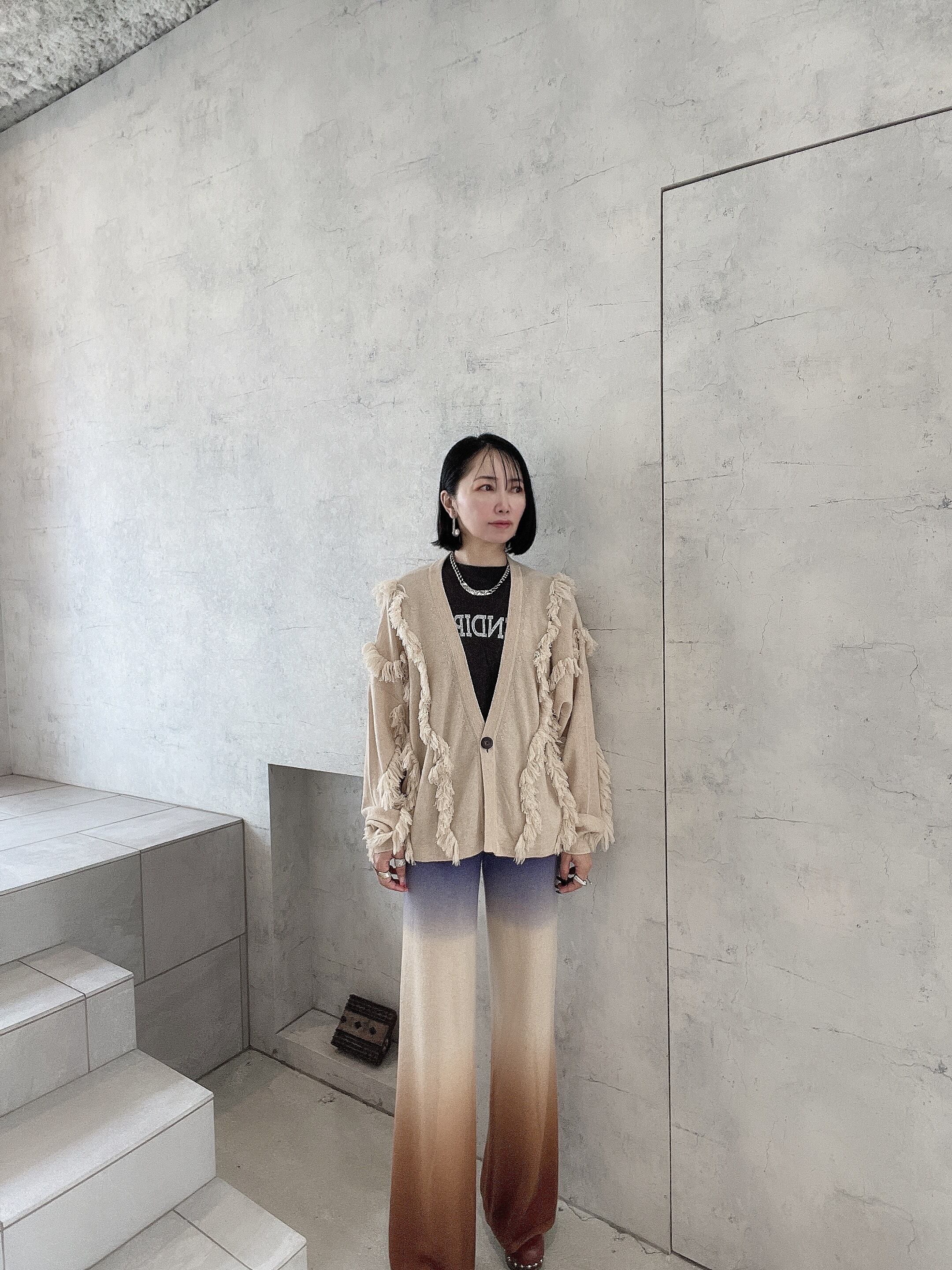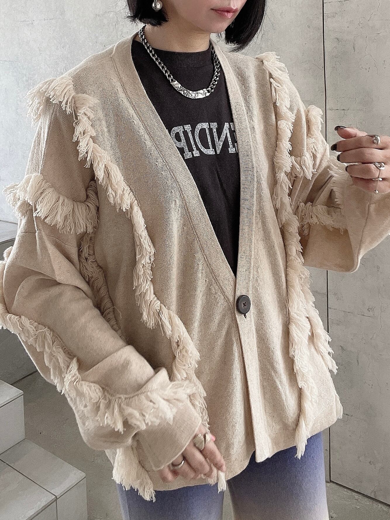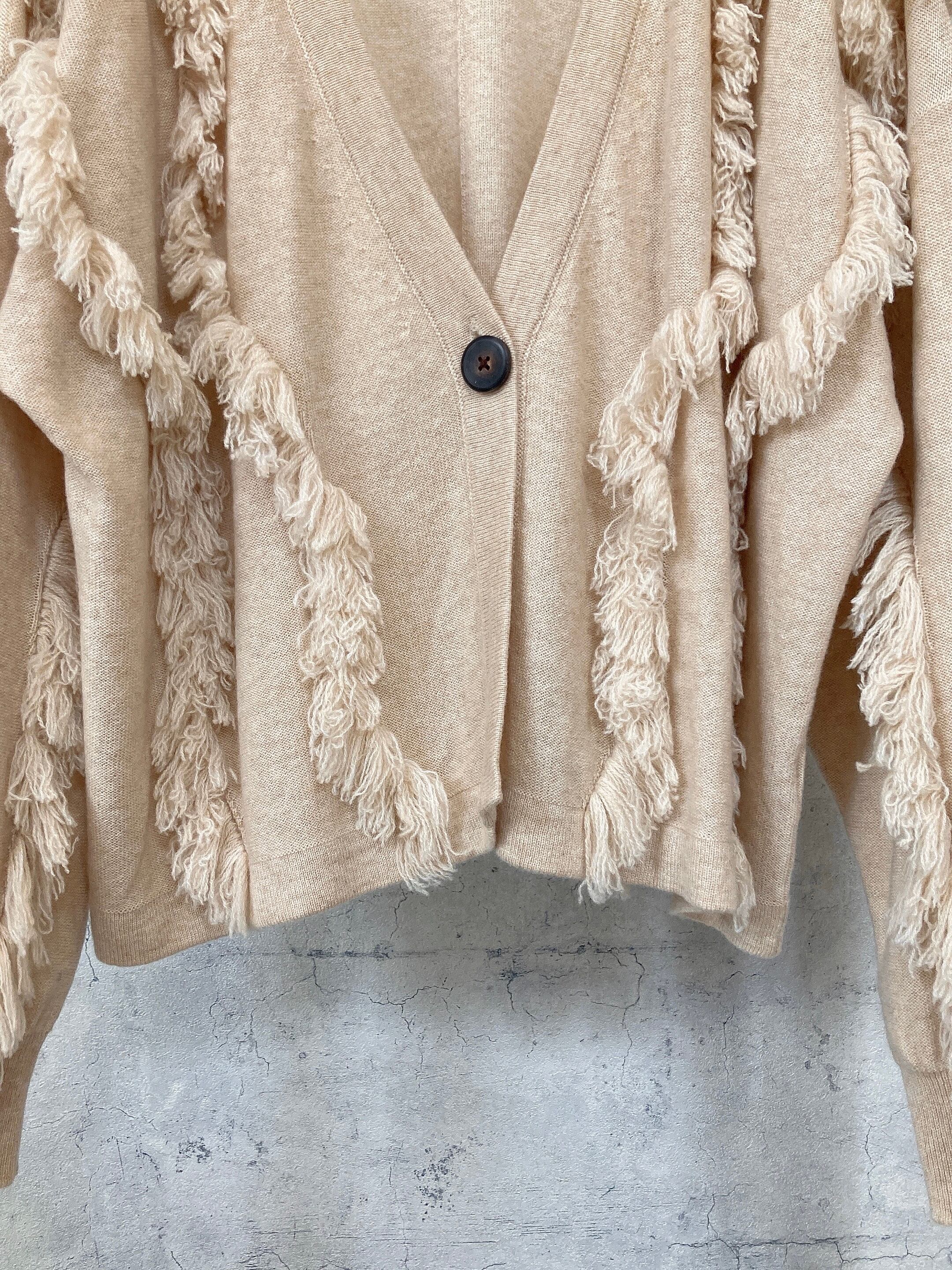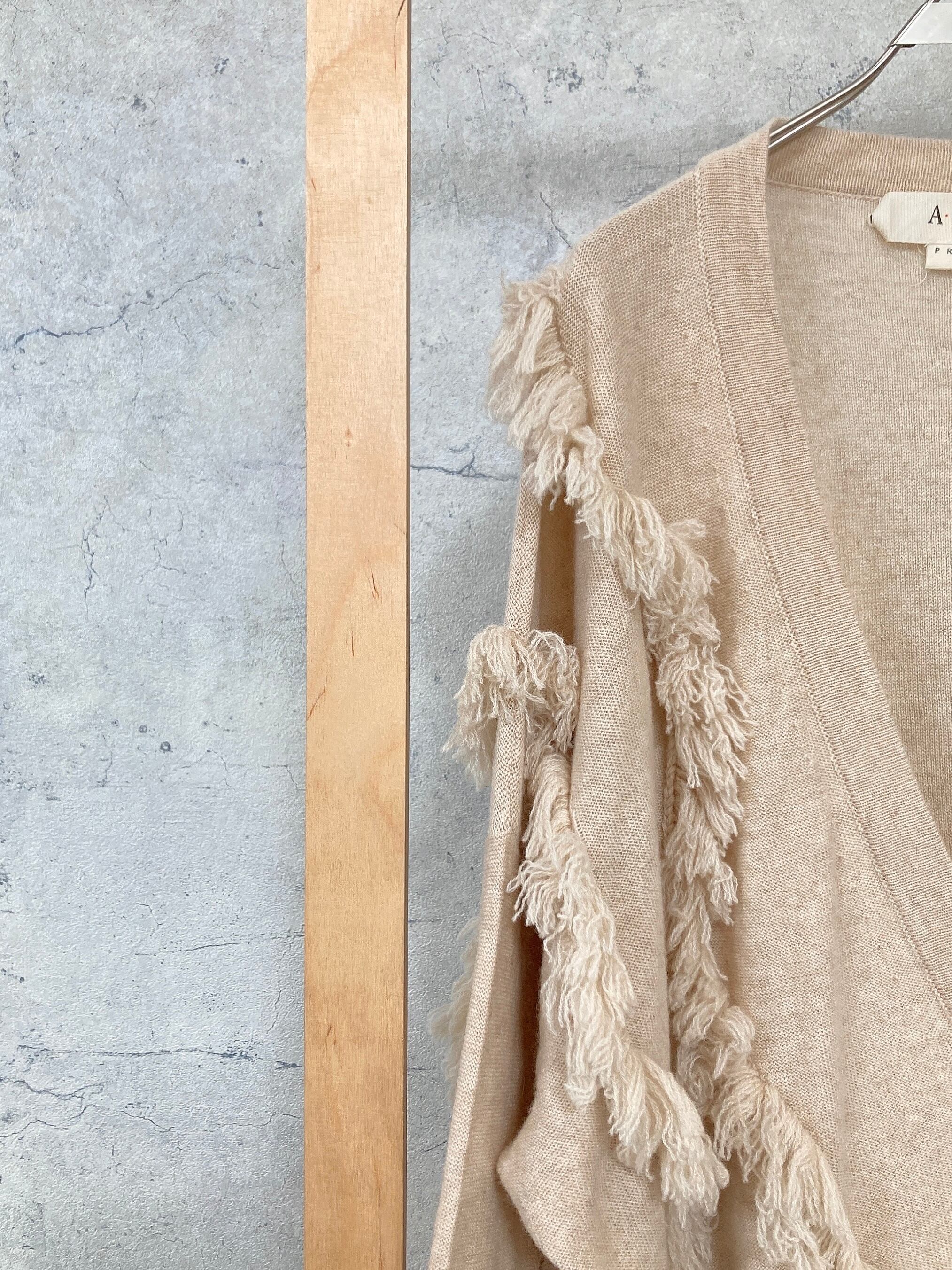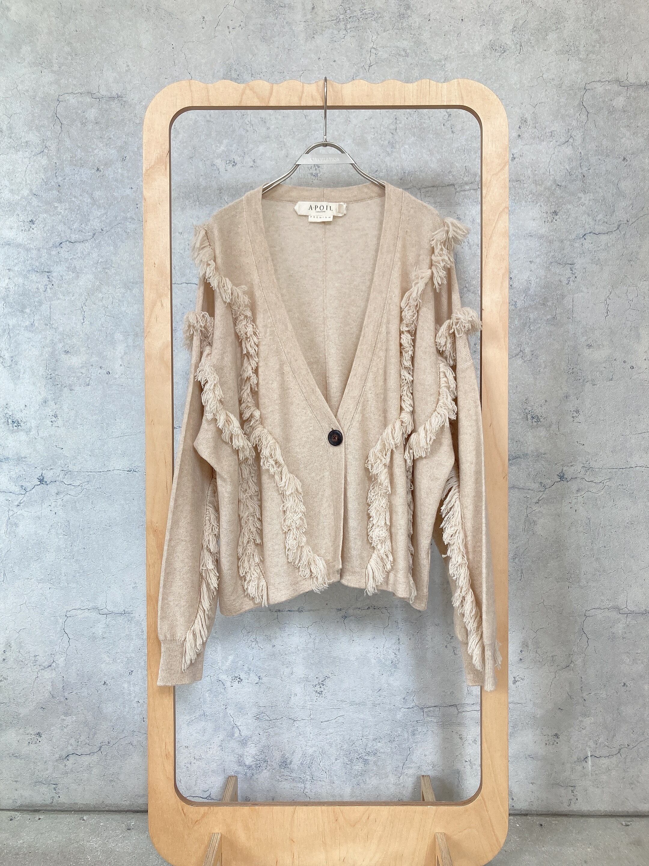 CIRCULATION送料無料【A・POIL アーポワル/フランス】100%カシミヤ フリンジカーディガン フリンジ ベージュ NO: AP HADALLAU / Natural Beige
