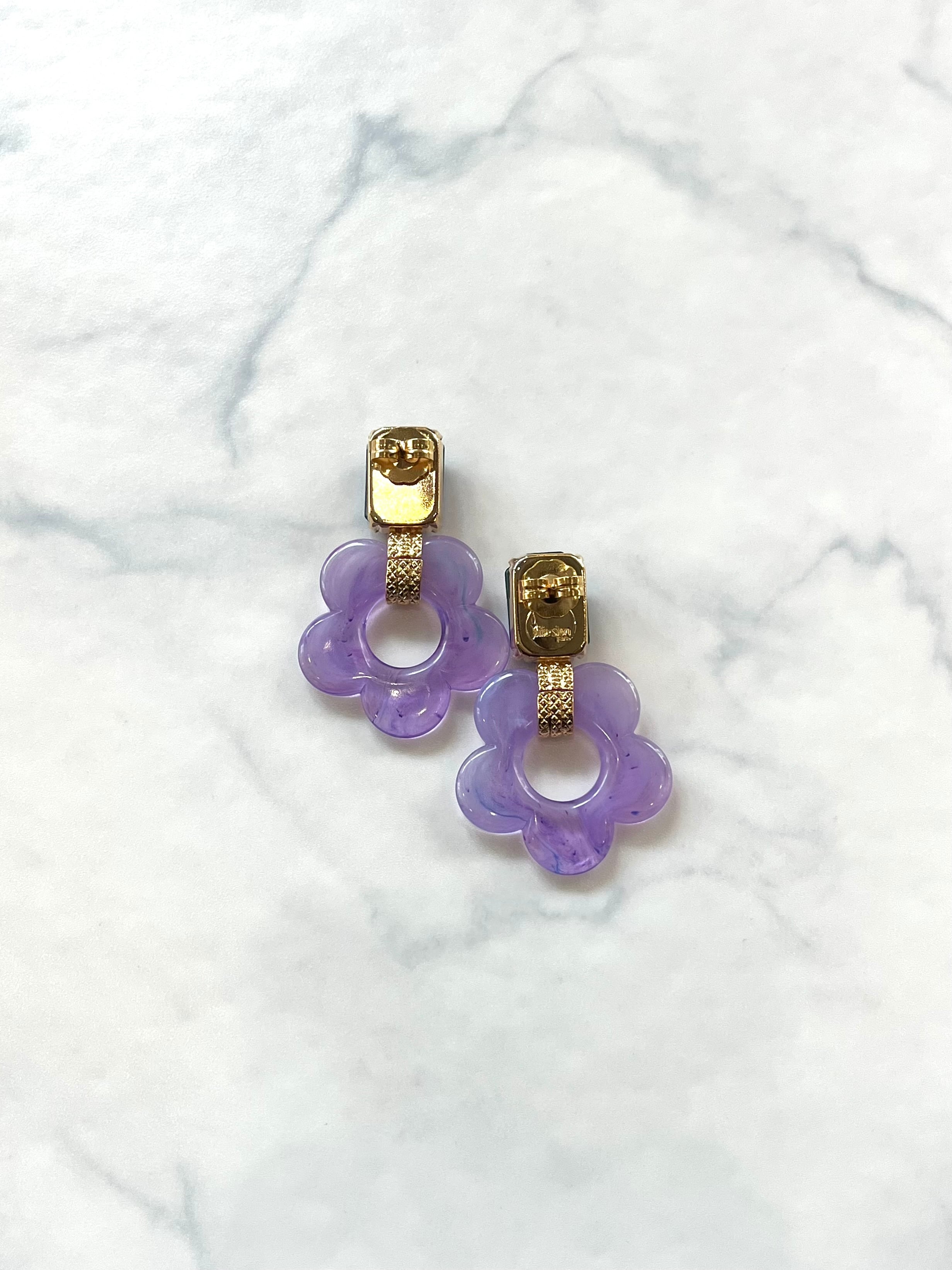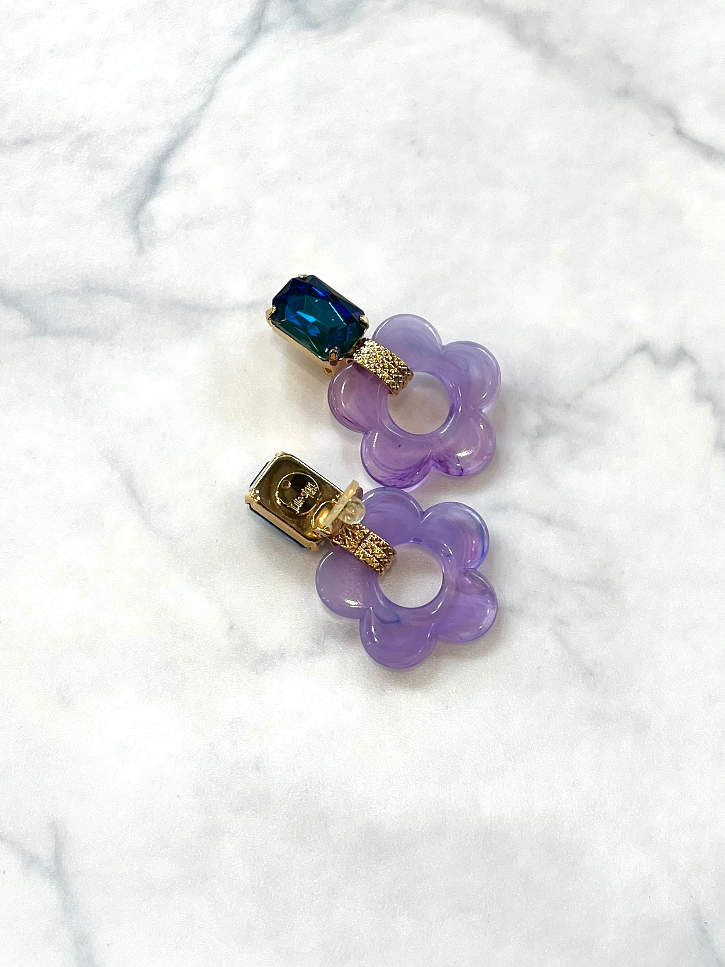 CIRCULATION送料無料【JULIE SION ジュリーシオン/フランス】フラワーレジン パープル イヤリング ピアス NO: BO FLOREM STRASS / Violet