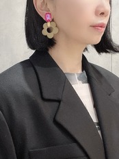 パーツが非常に綺麗でパリポップな大人のアクセサリーがシンプルなスタイルのポイントにも。