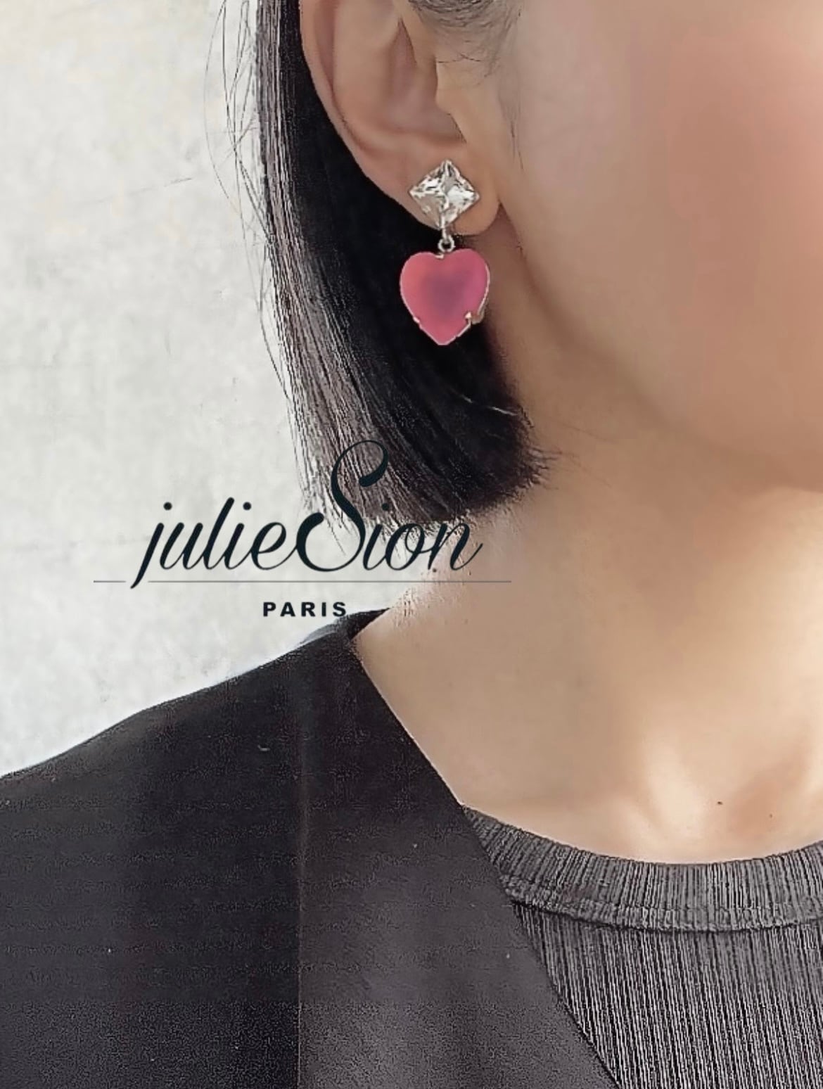 CIRCULATION送料無料【JULIE SION ジュリーシオン/フランス】ハートクリスタル ピンク イヤリング ピアス NO: BO POESIE / Rose
