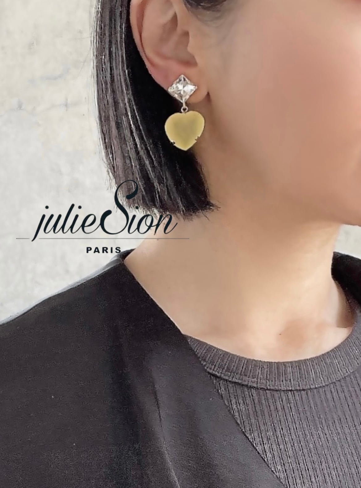 CIRCULATION送料無料【JULIE SION ジュリーシオン/フランス】ハートクリスタル イエロー イヤリング ピアス NO: BO POESIE / Jaune(イエロー)
