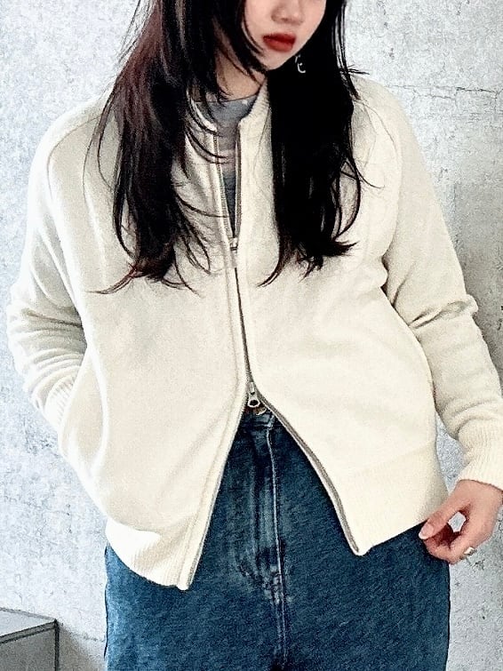 カシミアトラックジャケット。暗い色は着たくない春、コットンでは寒い季節やコートは着れないけ季節に一枚で暖かい春カシミアで、一気にスプリングスタイルに。