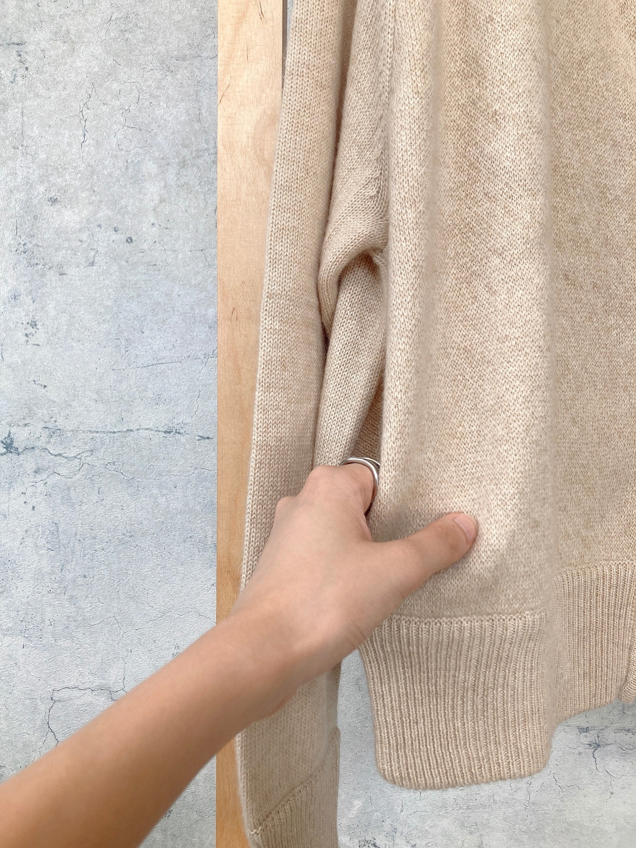 APOILのカシミアはフランスでも特に良いカシミヤを長年にわたり使用しており、その風合いはみるからに上質で心地よい肌触りは一度着用すると包まれているような気持ちになる最高級ならではの質感です。
