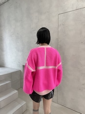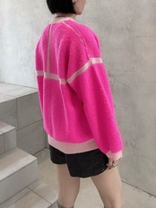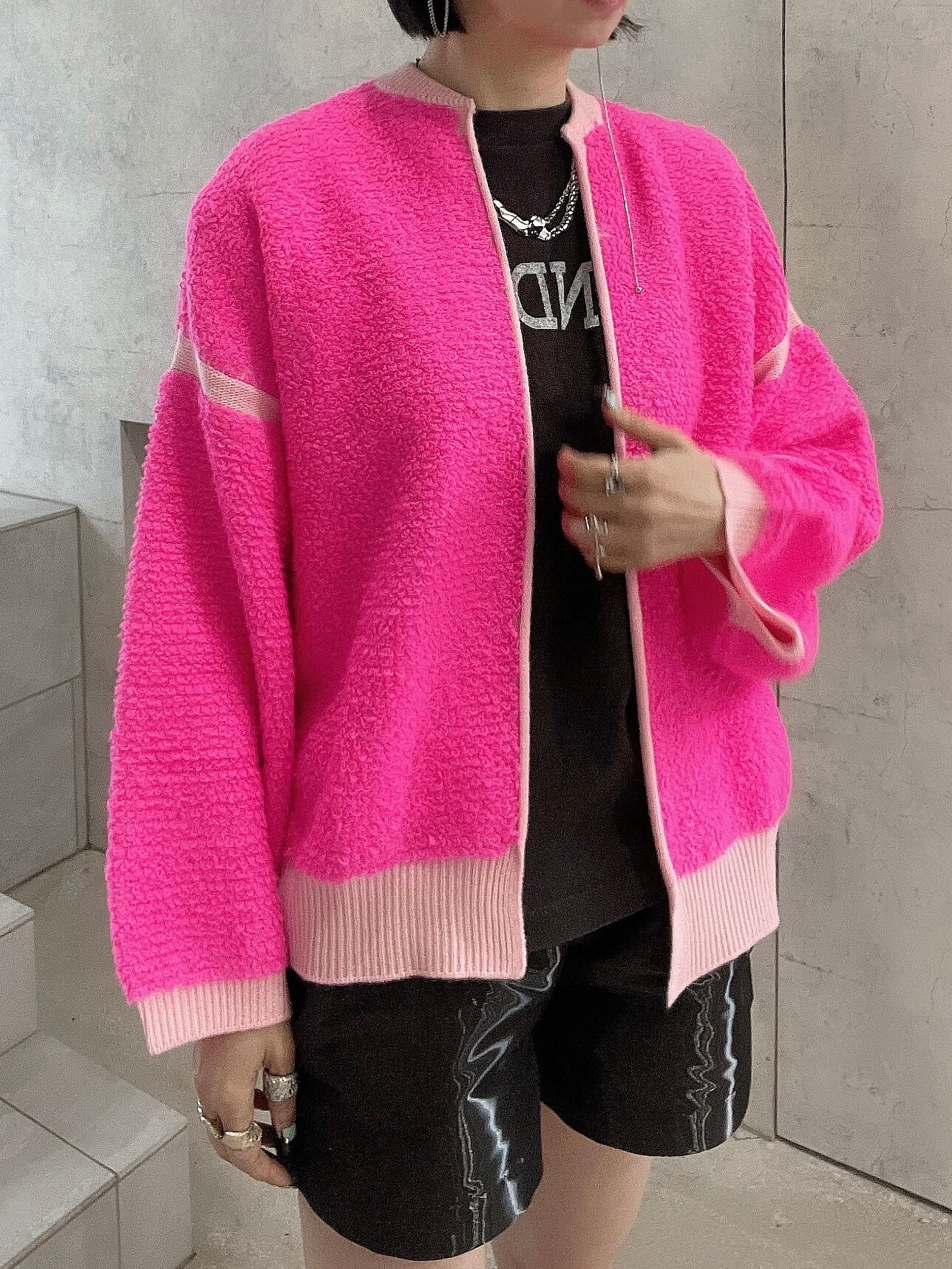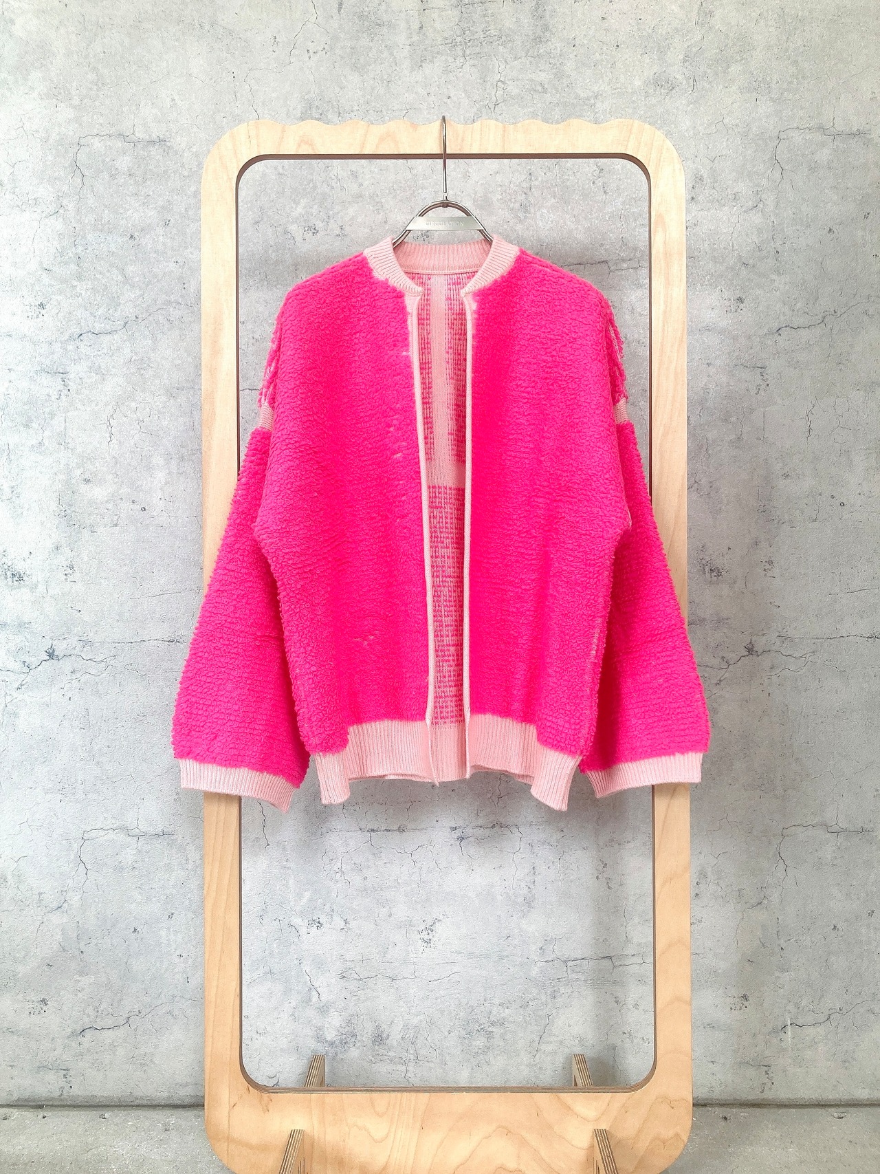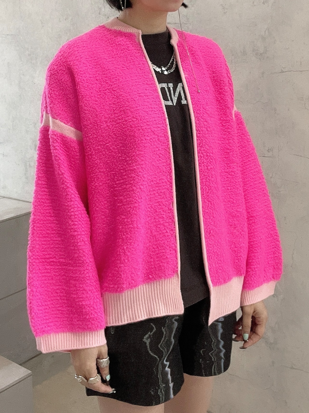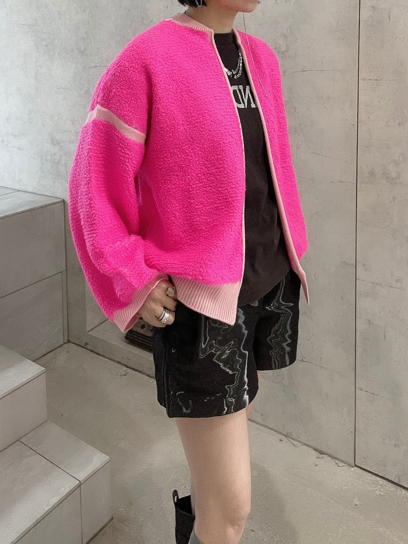 CIRCULATION送料無料【A・POIL アーポワル/フランス】100%カシミヤ リバーシブルパイルカーディガン リバーシブル カーディガン ピンク NO: AP HOLDUP / COL E(Powder/Dayglo)
