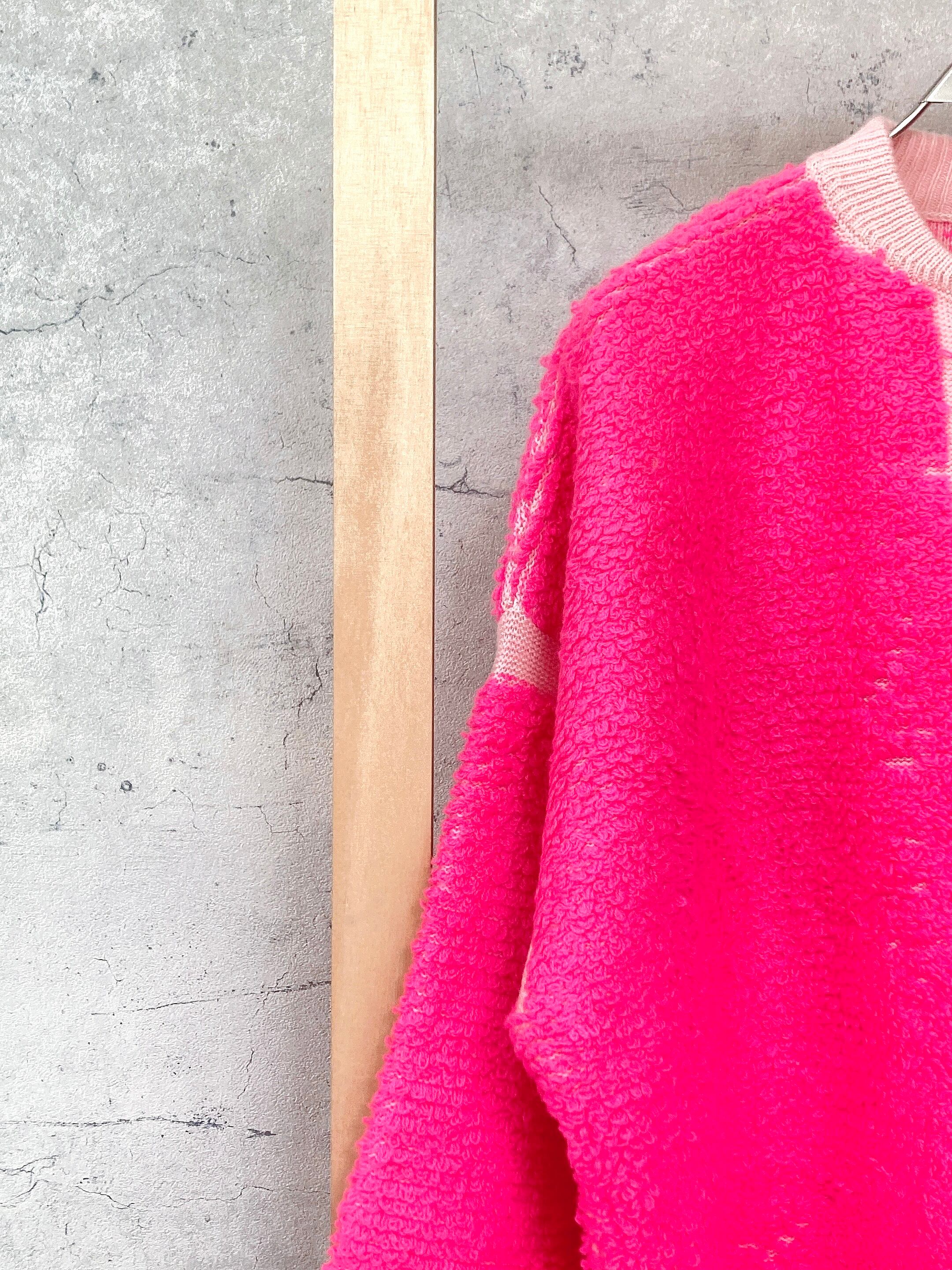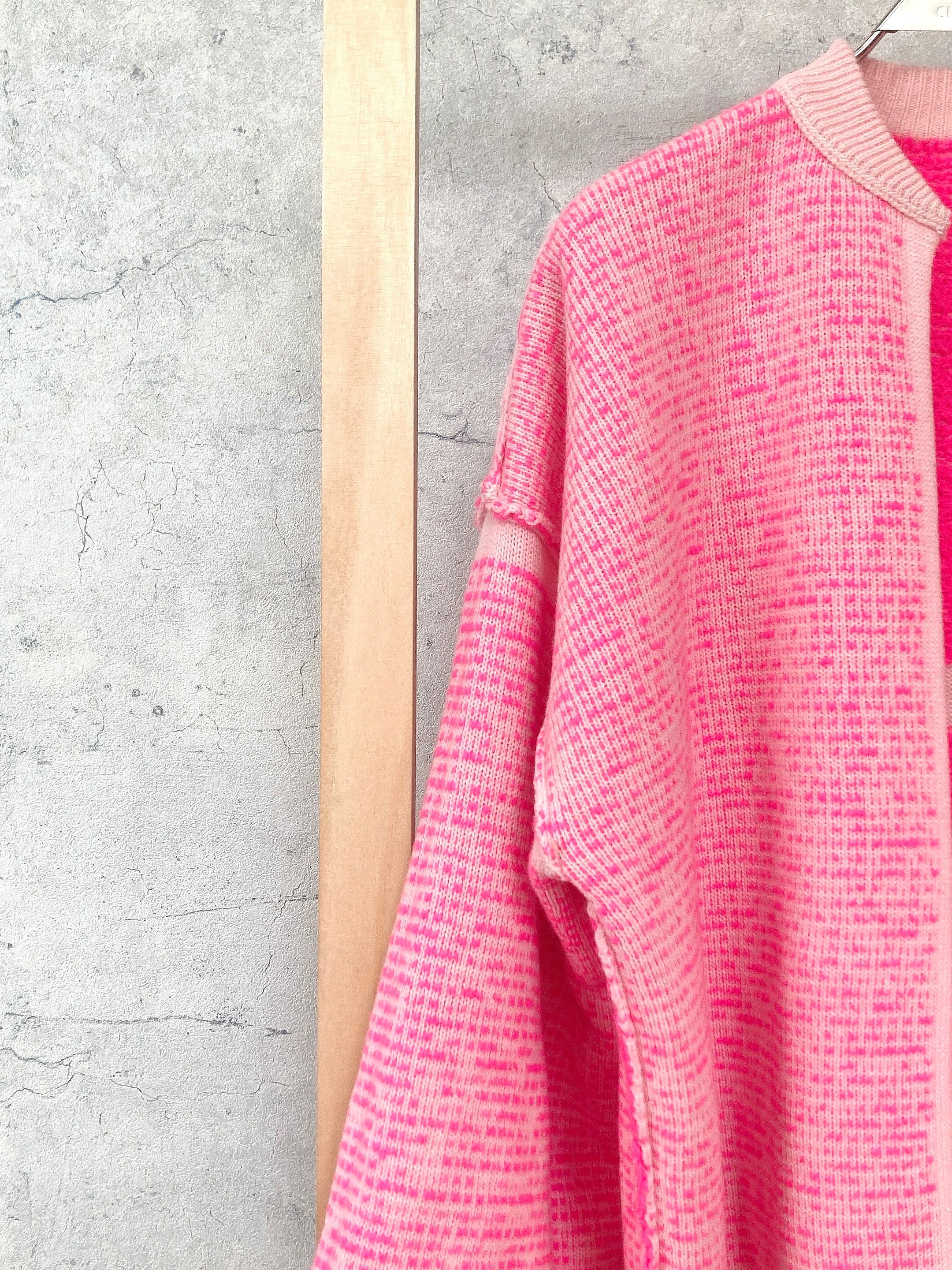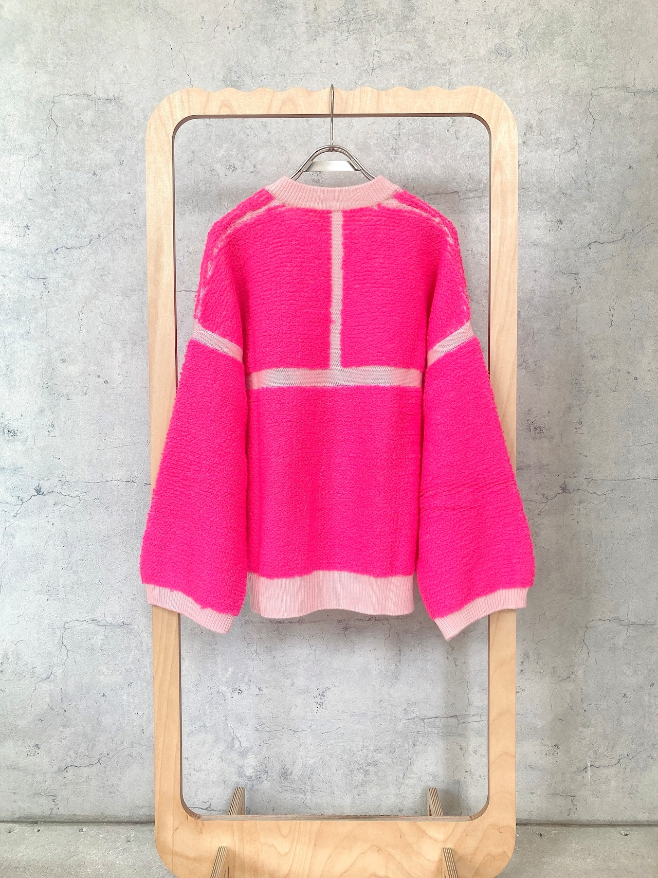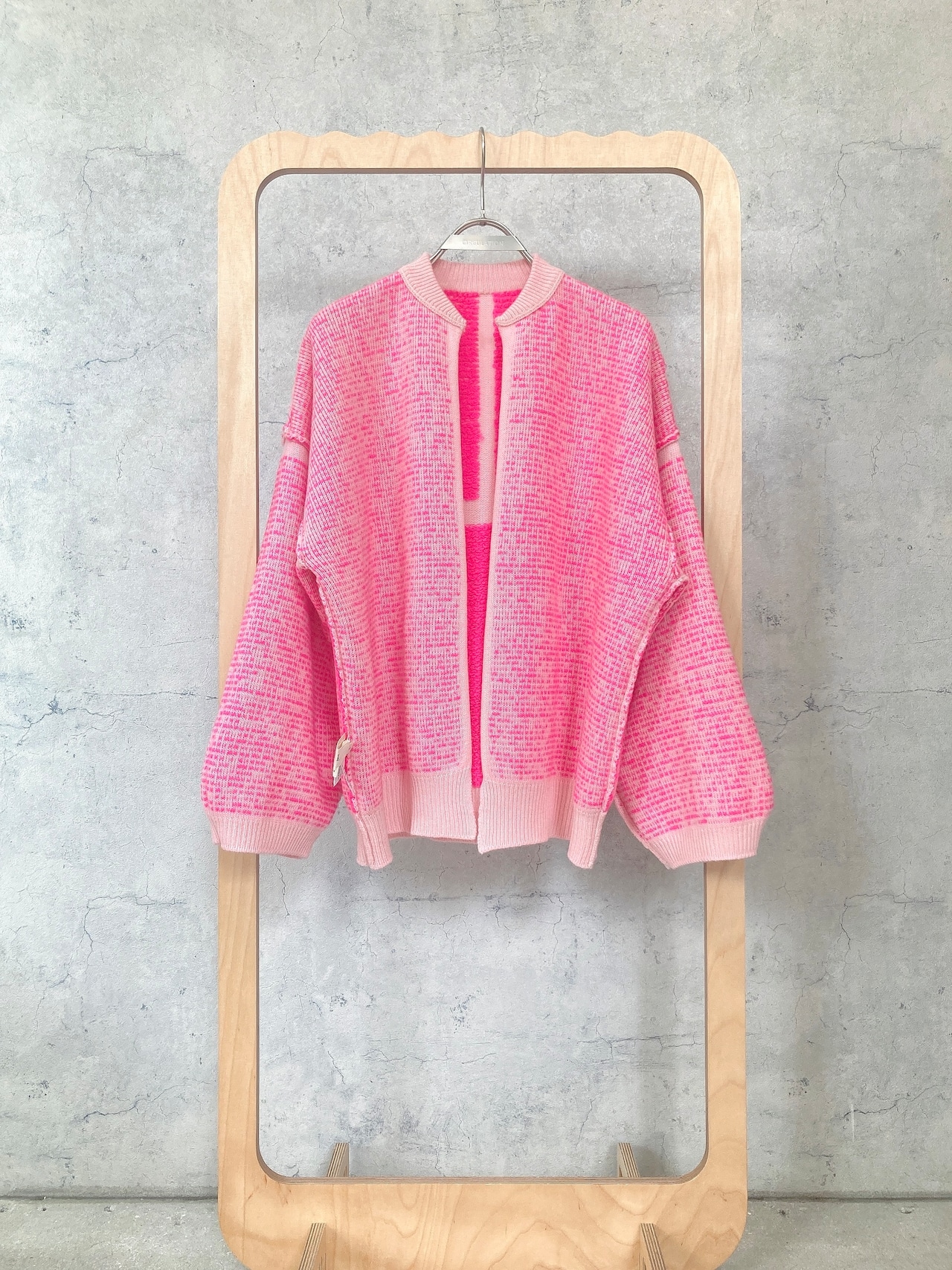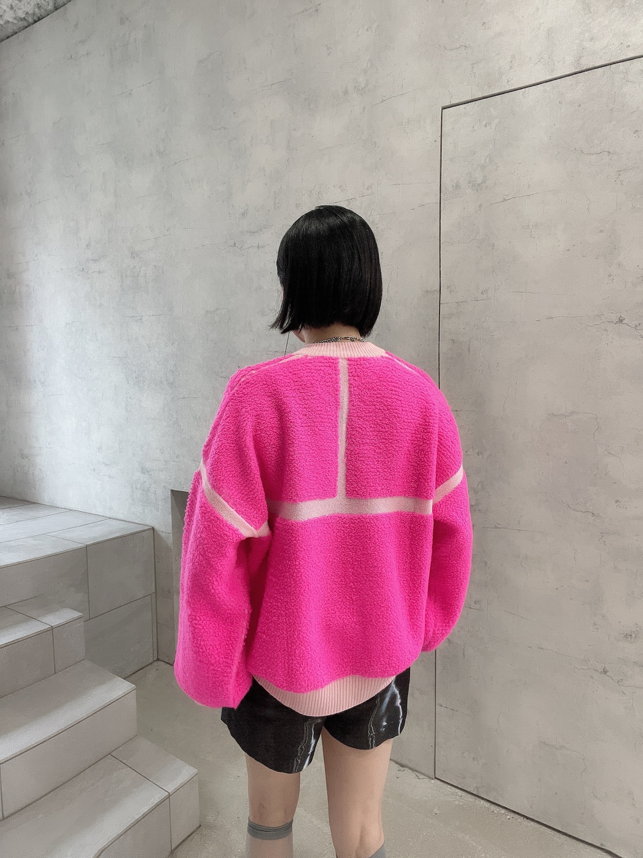 CIRCULATION送料無料【A・POIL アーポワル/フランス】100%カシミヤ リバーシブルパイルカーディガン リバーシブル カーディガン ピンク NO: AP HOLDUP / COL E(Powder/Dayglo)
