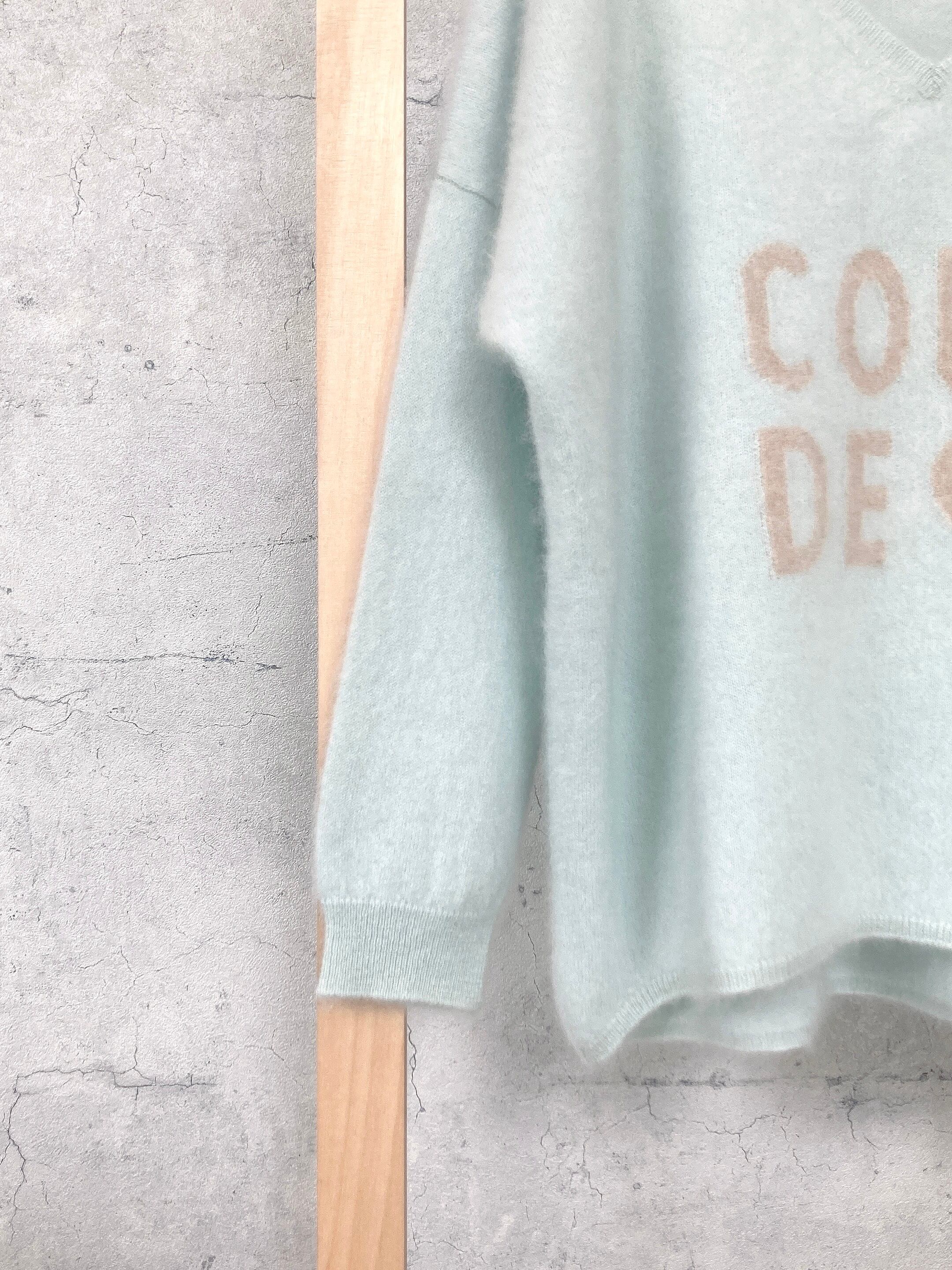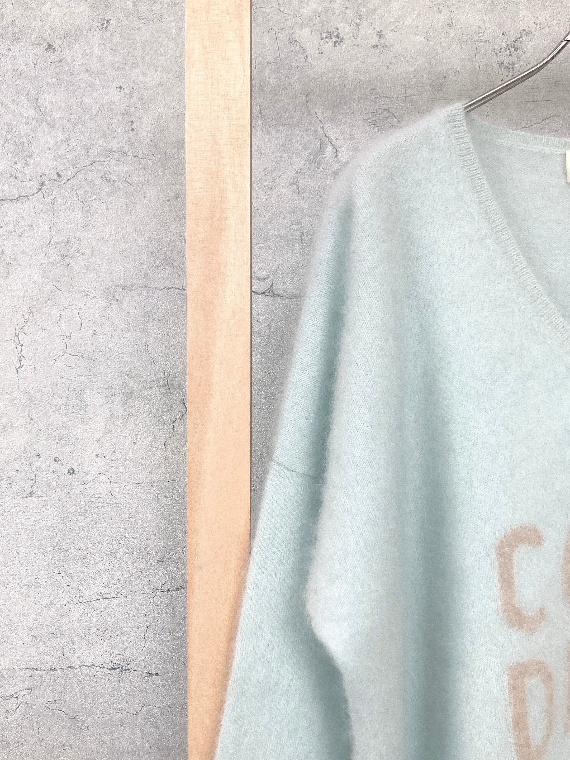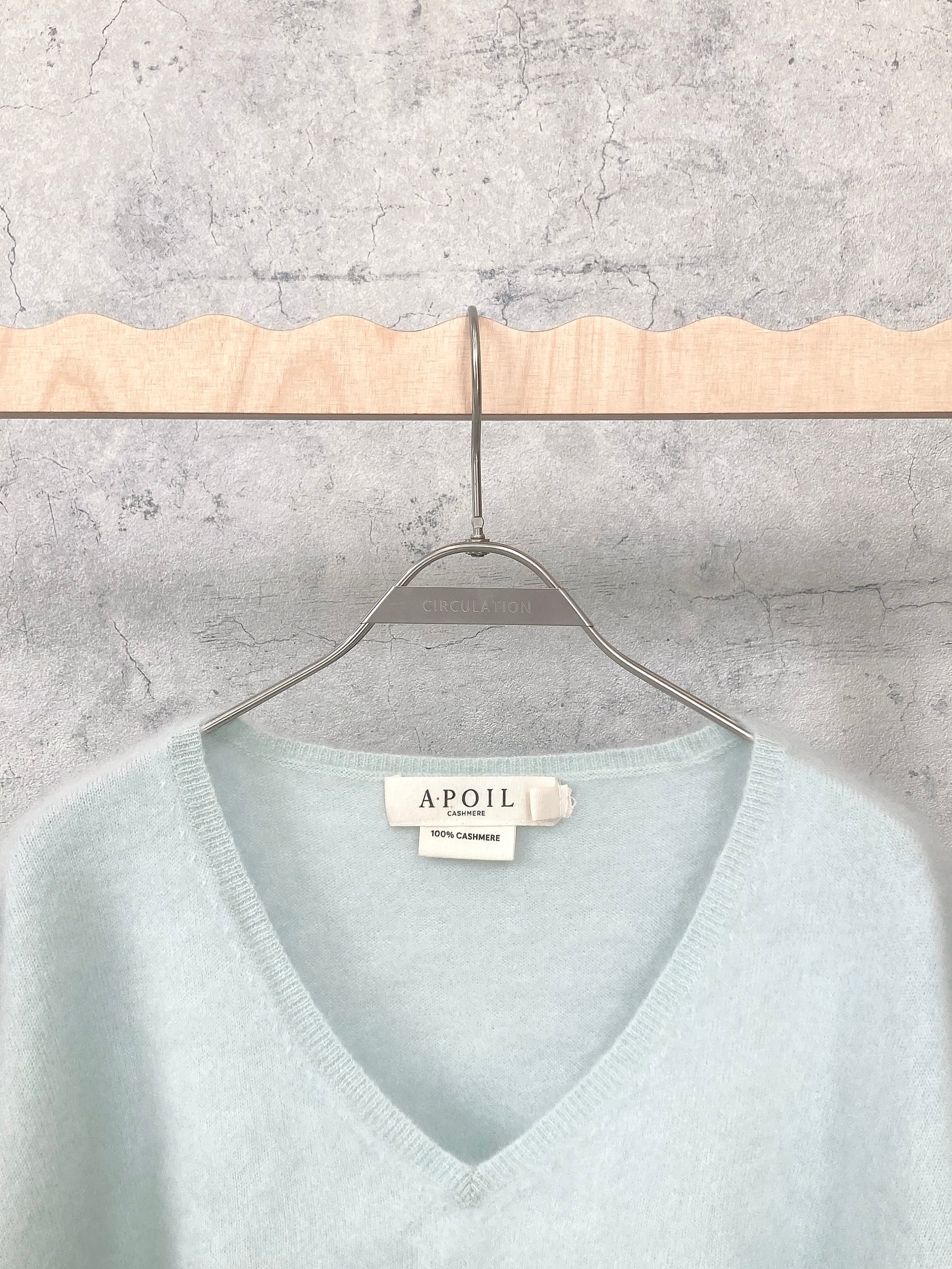 CIRCULATION送料無料【A・POIL アーポワル/フランス】カシミヤVネックロゴニット カシミヤ100% Vネック ロゴニット アクアブルー NO: AP HERSE/ / COL B(Aqua/Beige)