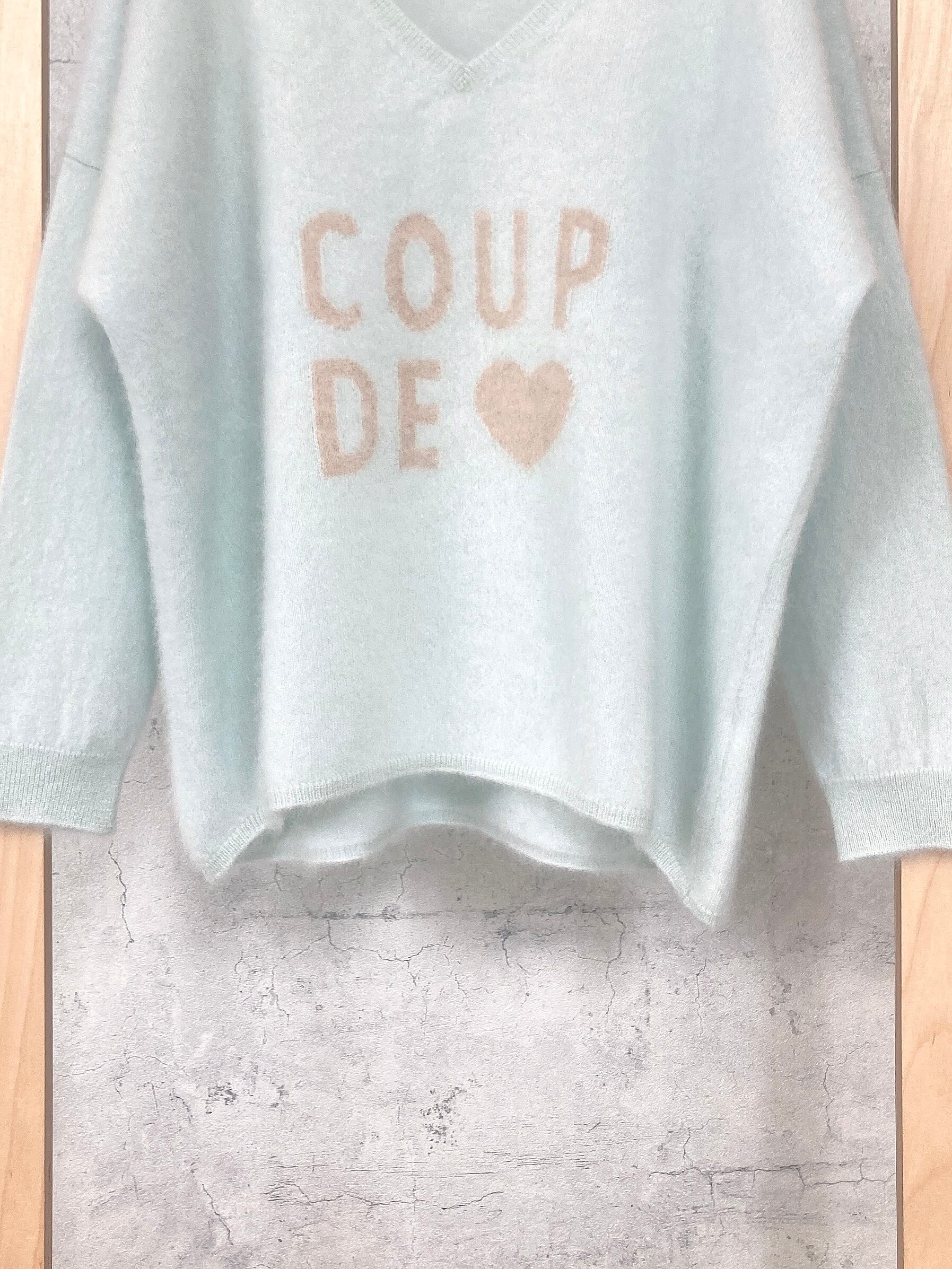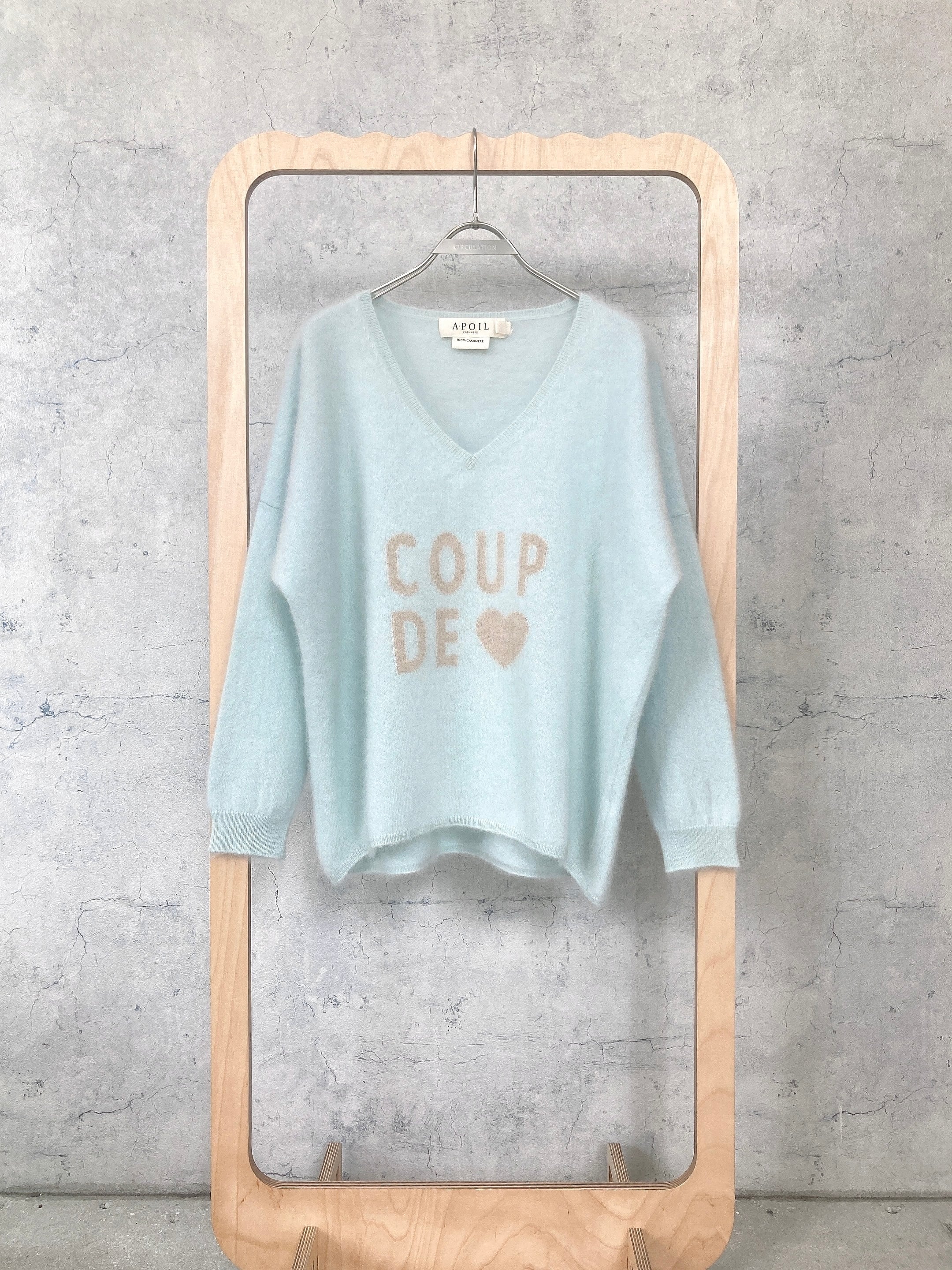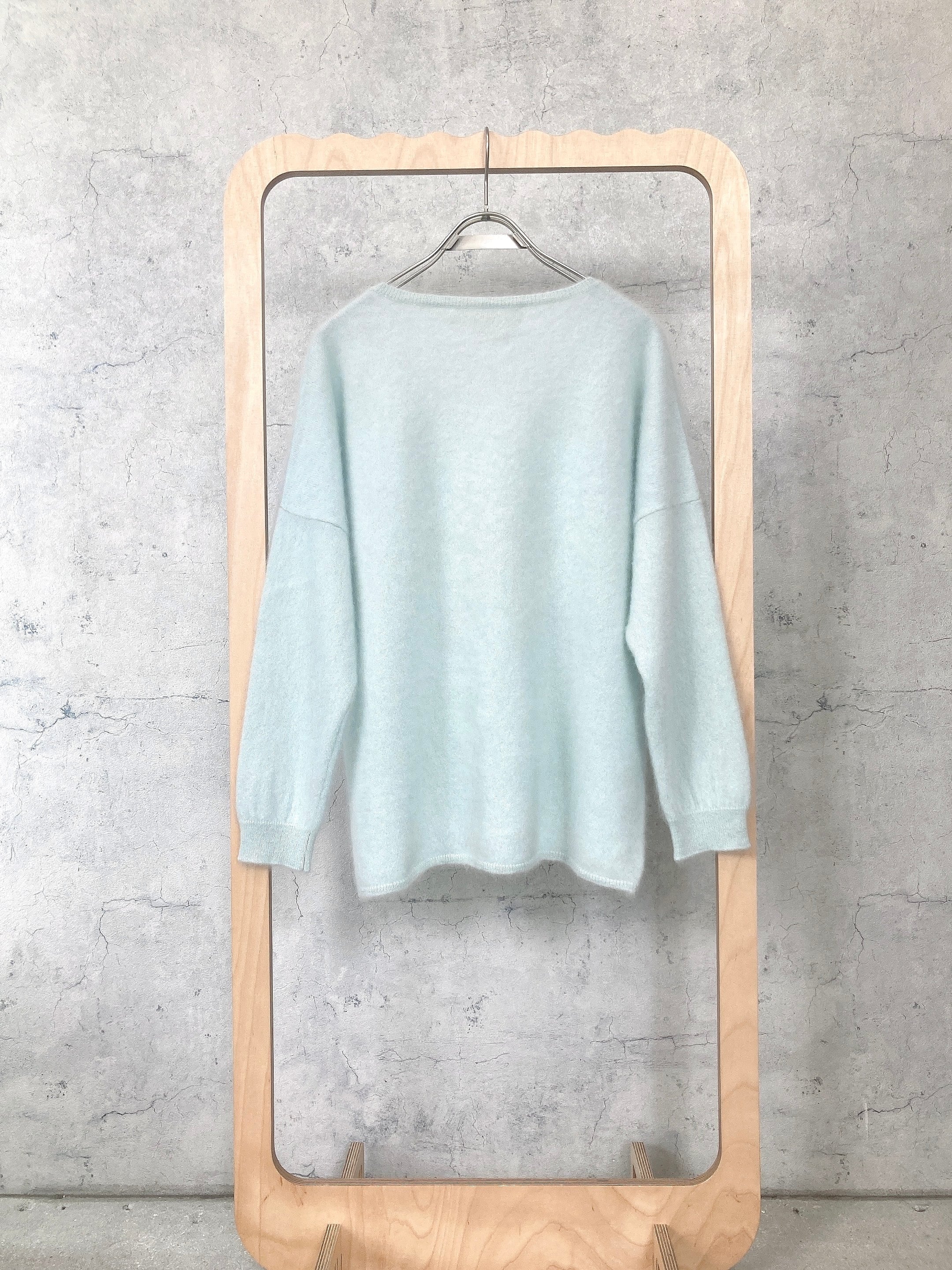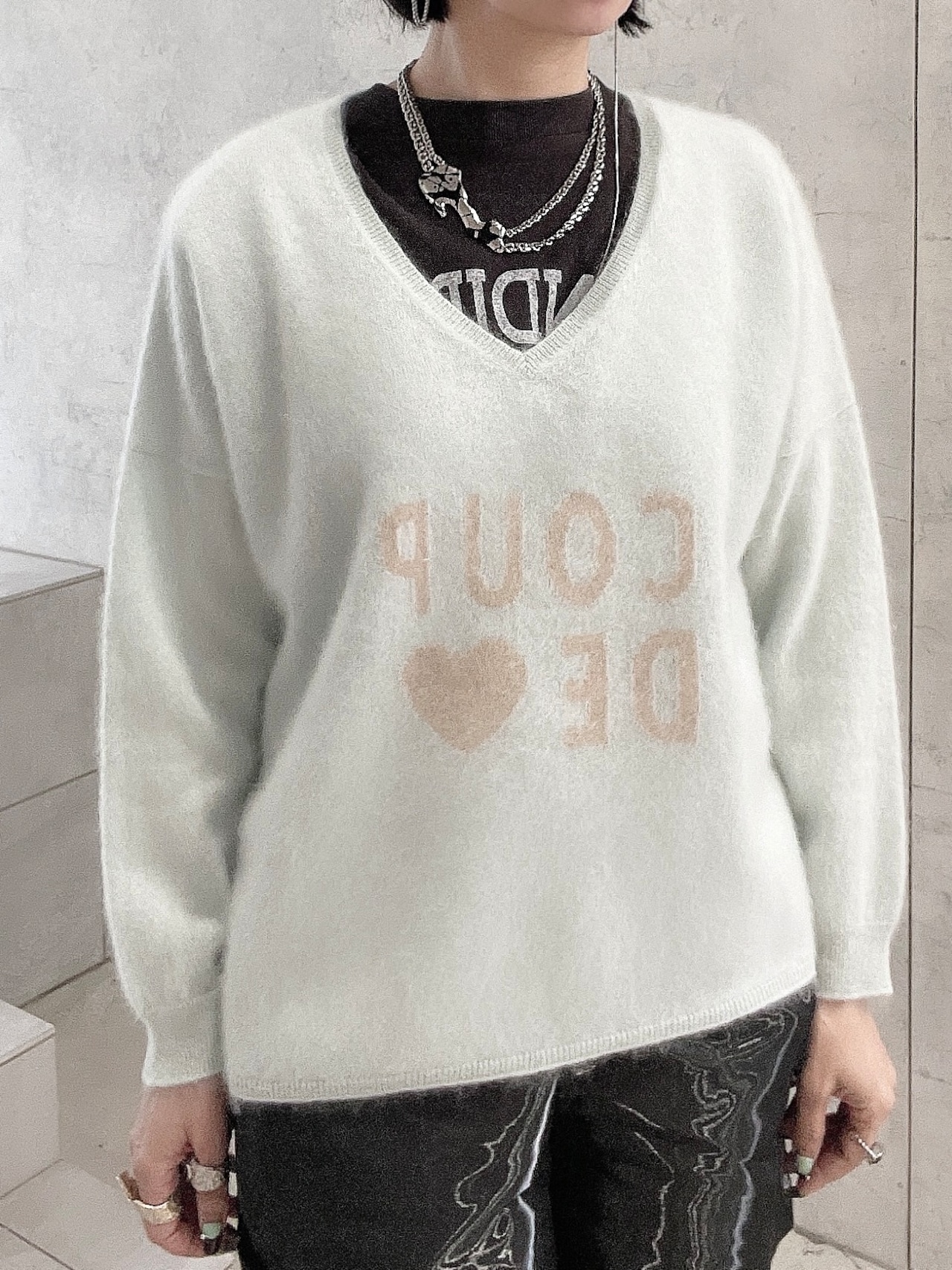 CIRCULATION送料無料【A・POIL アーポワル/フランス】カシミヤVネックロゴニット カシミヤ100% Vネック ロゴニット アクアブルー NO: AP HERSE/ / COL B(Aqua/Beige)
