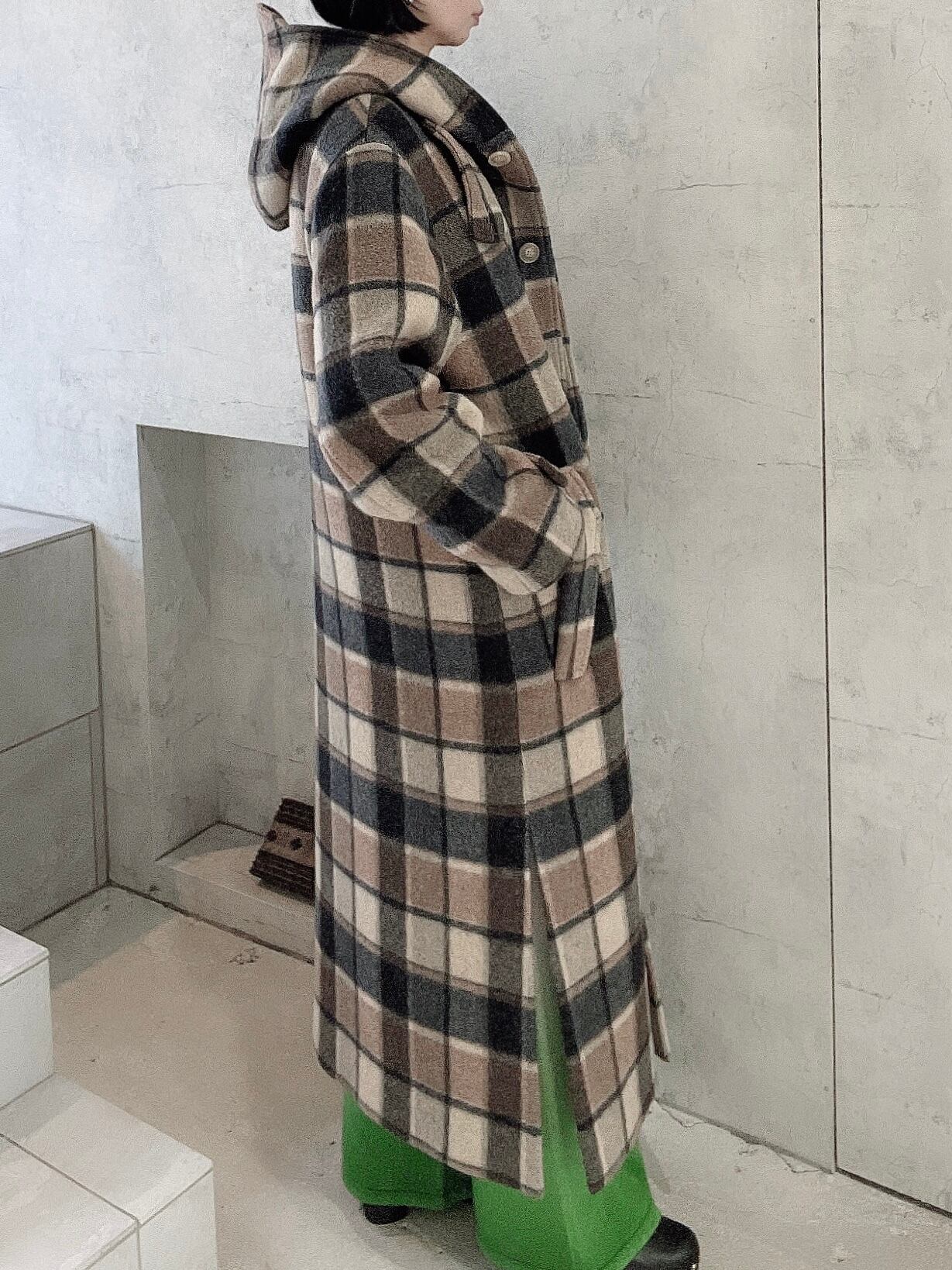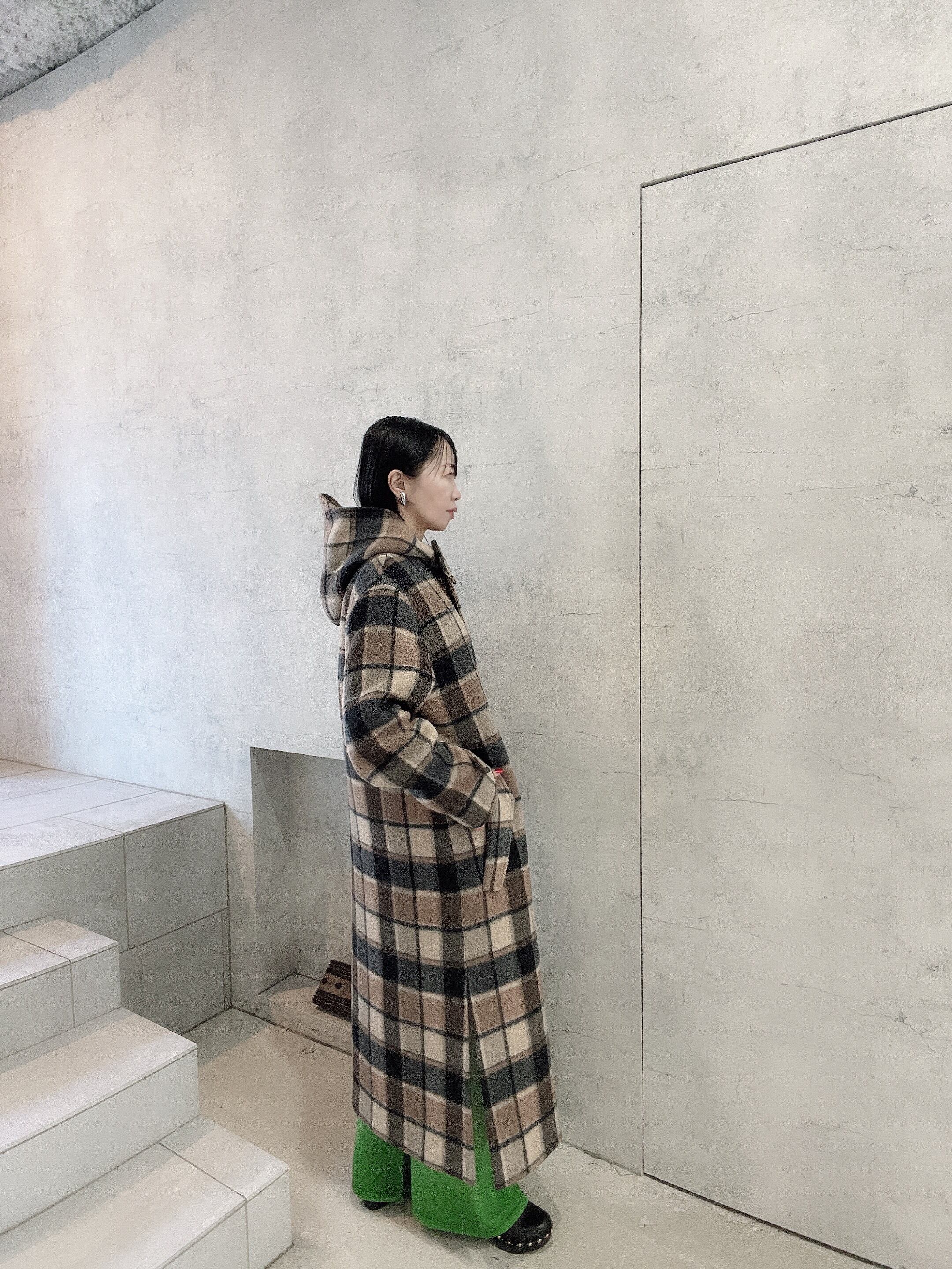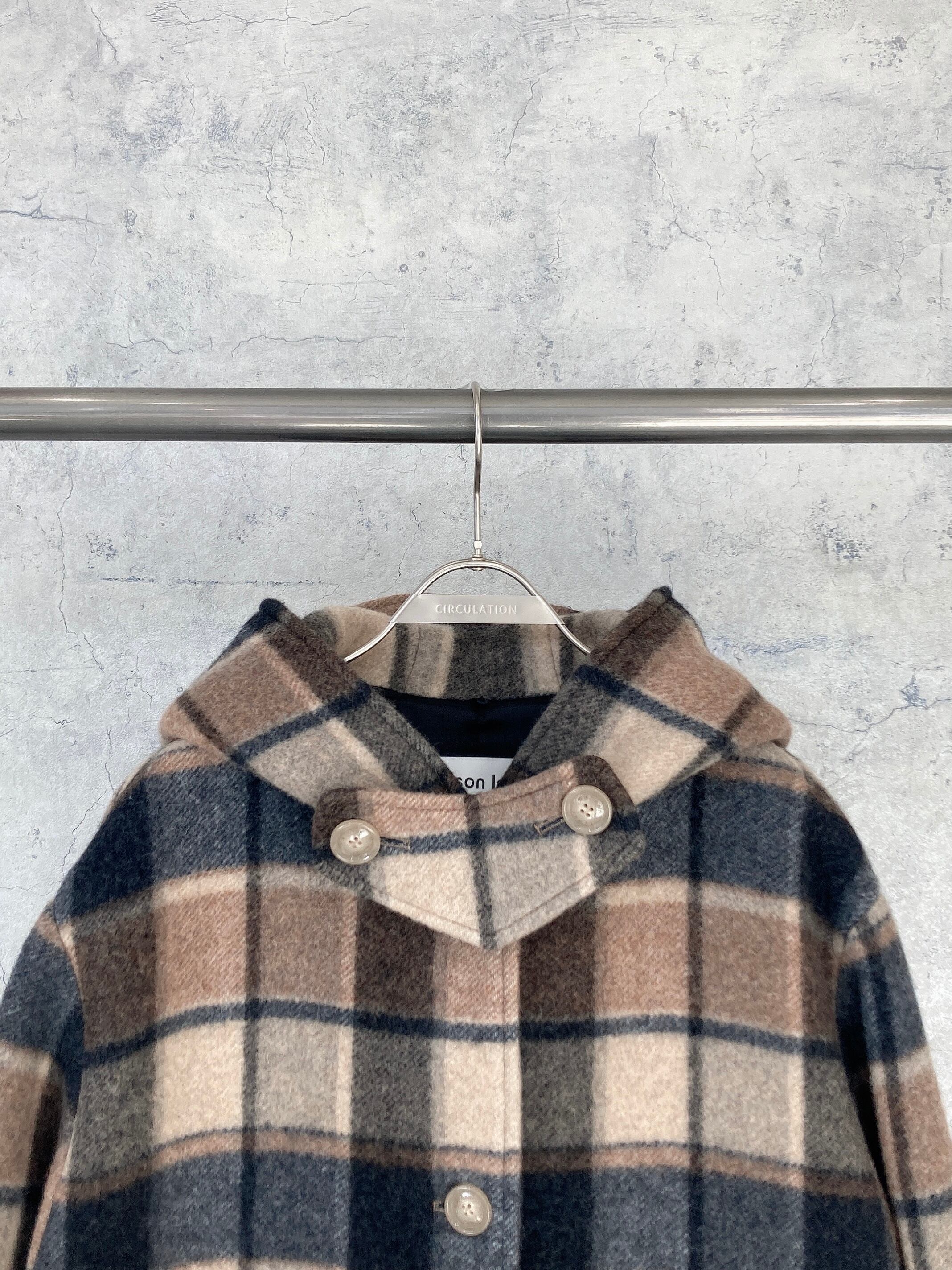 CIRCULATION送料無料【maison lener メゾン レネー/フランス】フーディーチェックコート チェック フード コート ベージュ NO: BRISELAME ML-BABS / Beige/Marron