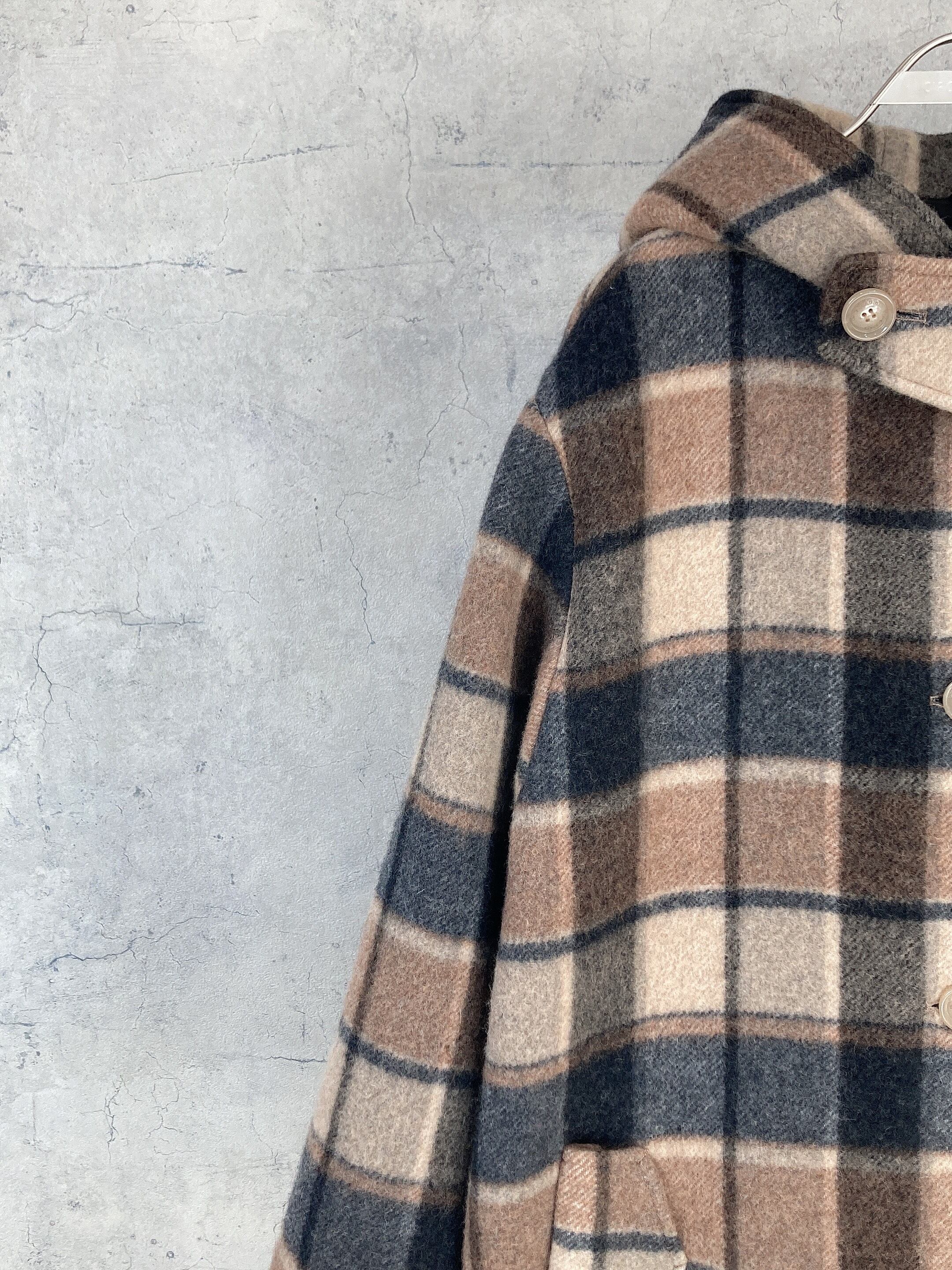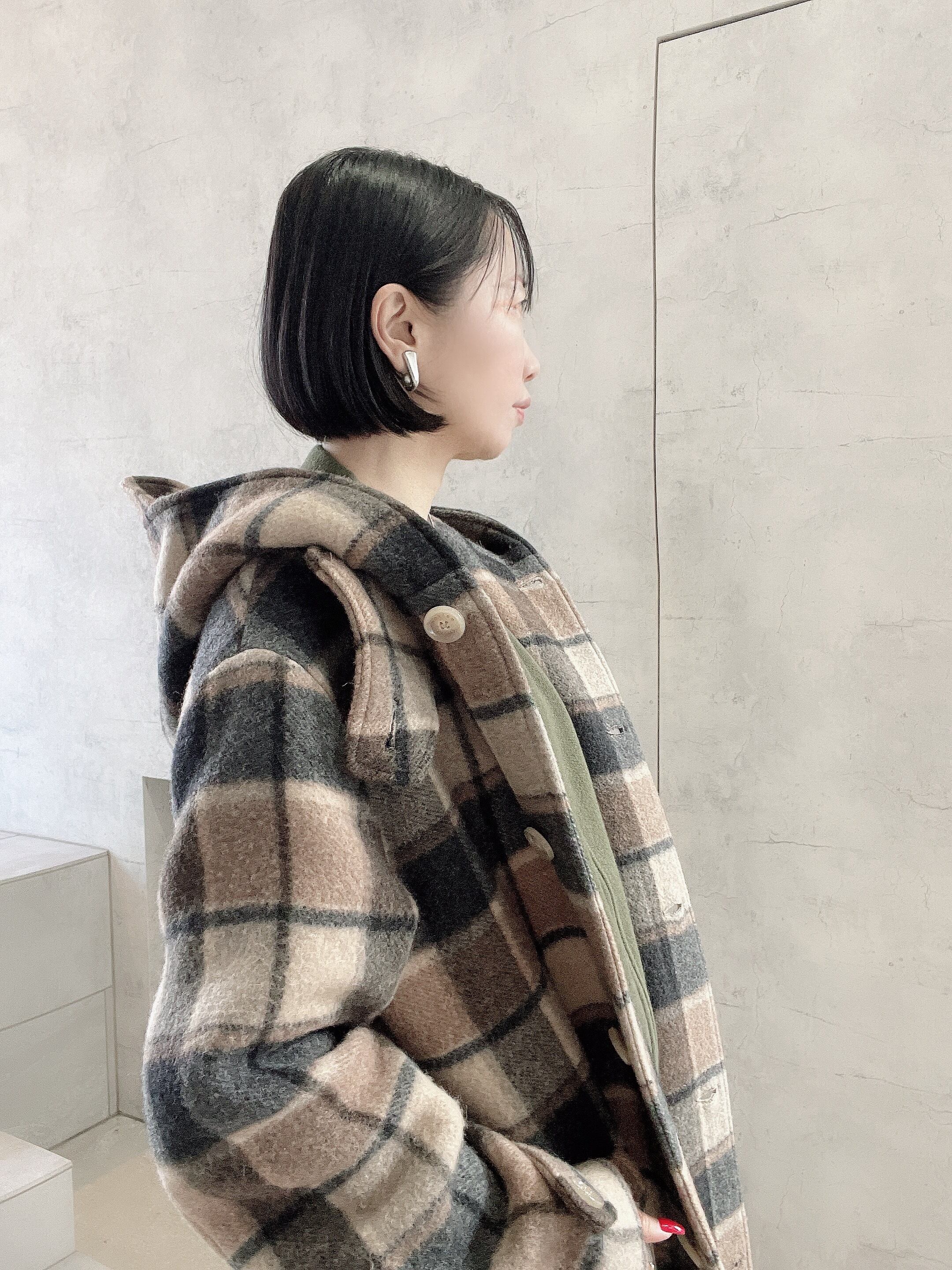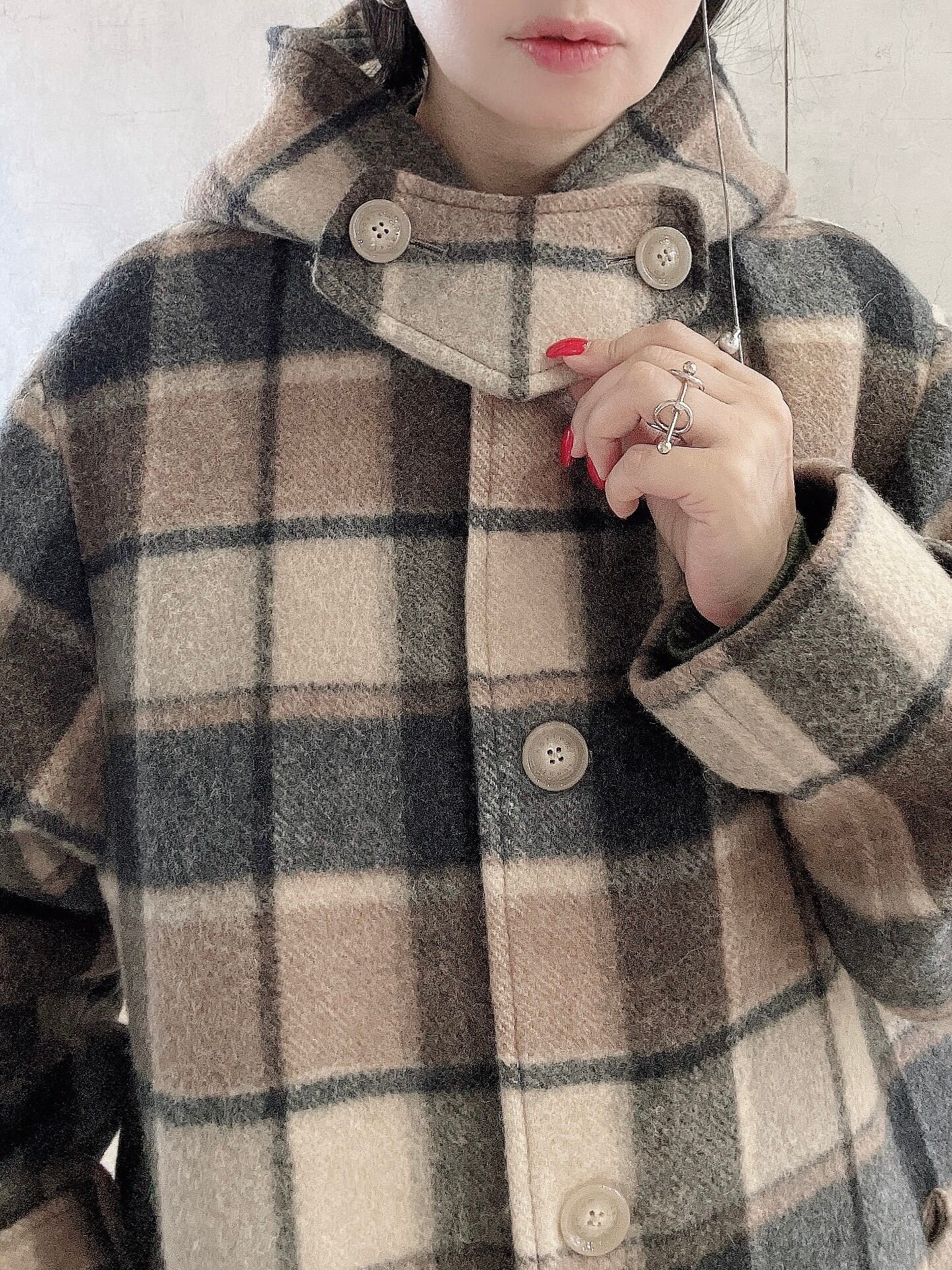 CIRCULATION送料無料【maison lener メゾン レネー/フランス】フーディーチェックコート チェック フード コート ベージュ NO: BRISELAME ML-BABS / Beige/Marron