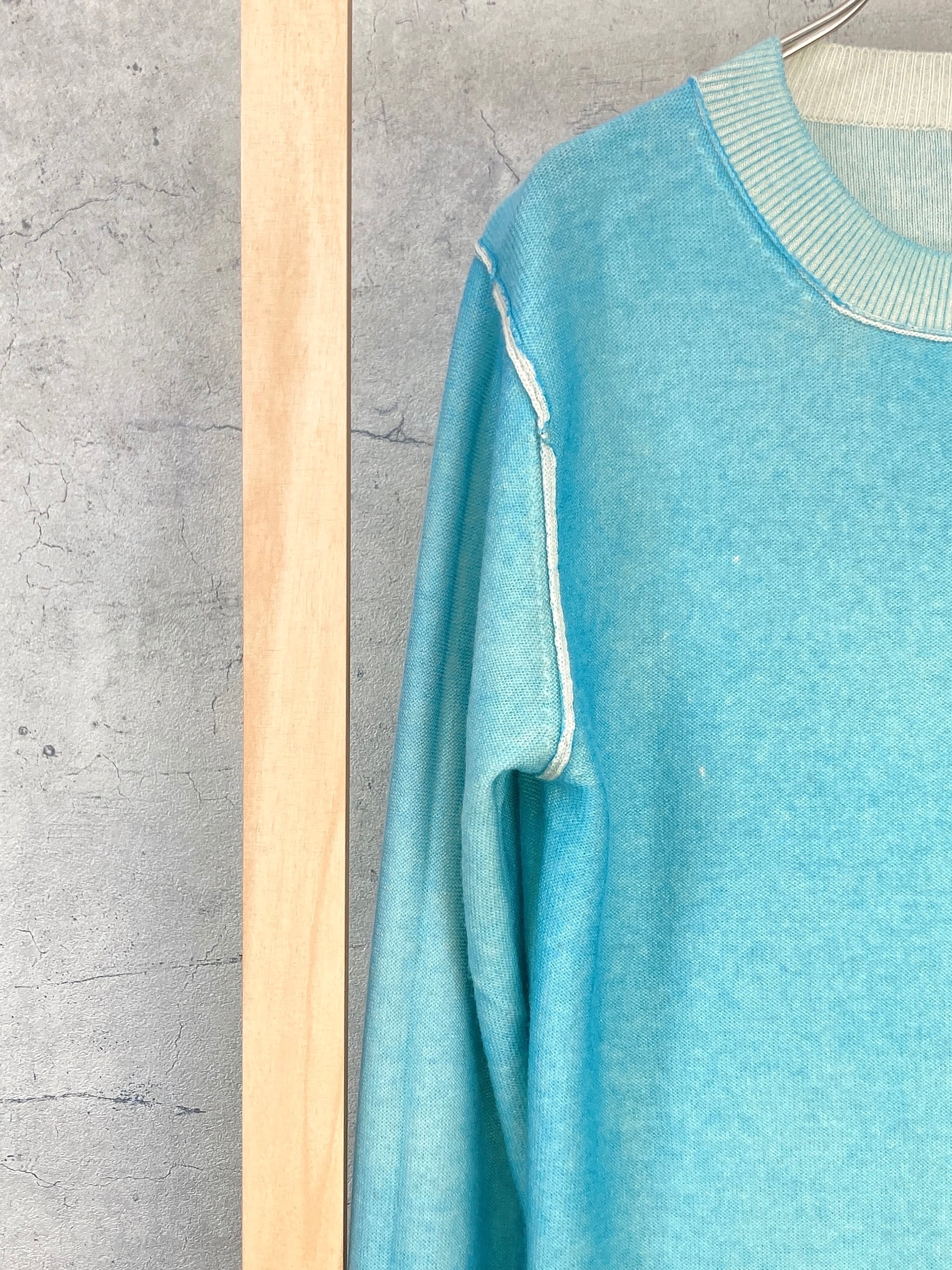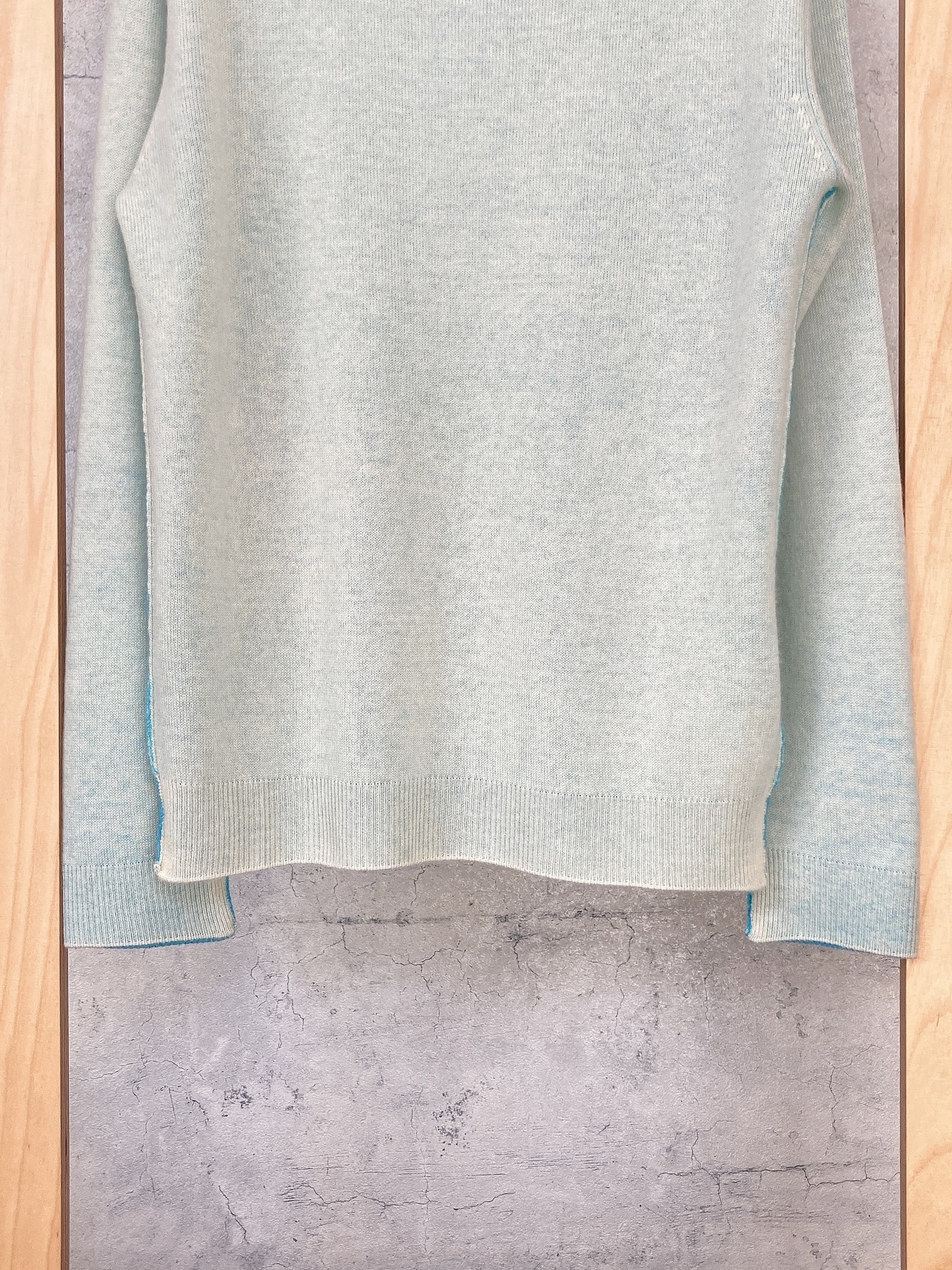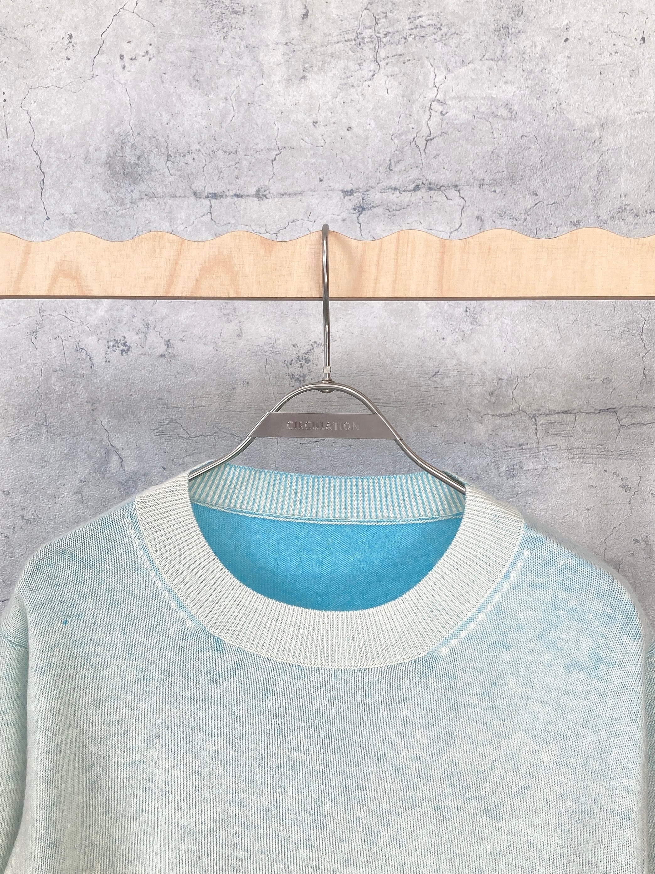 CIRCULATION送料無料【A・POIL アーポワル/フランス】ウールカシミヤ リバーシブル クルーネック カラーニット ブルー NO: AP WOCA-FENETRE25AW / COL G(Parchment/Print:Tiffany)