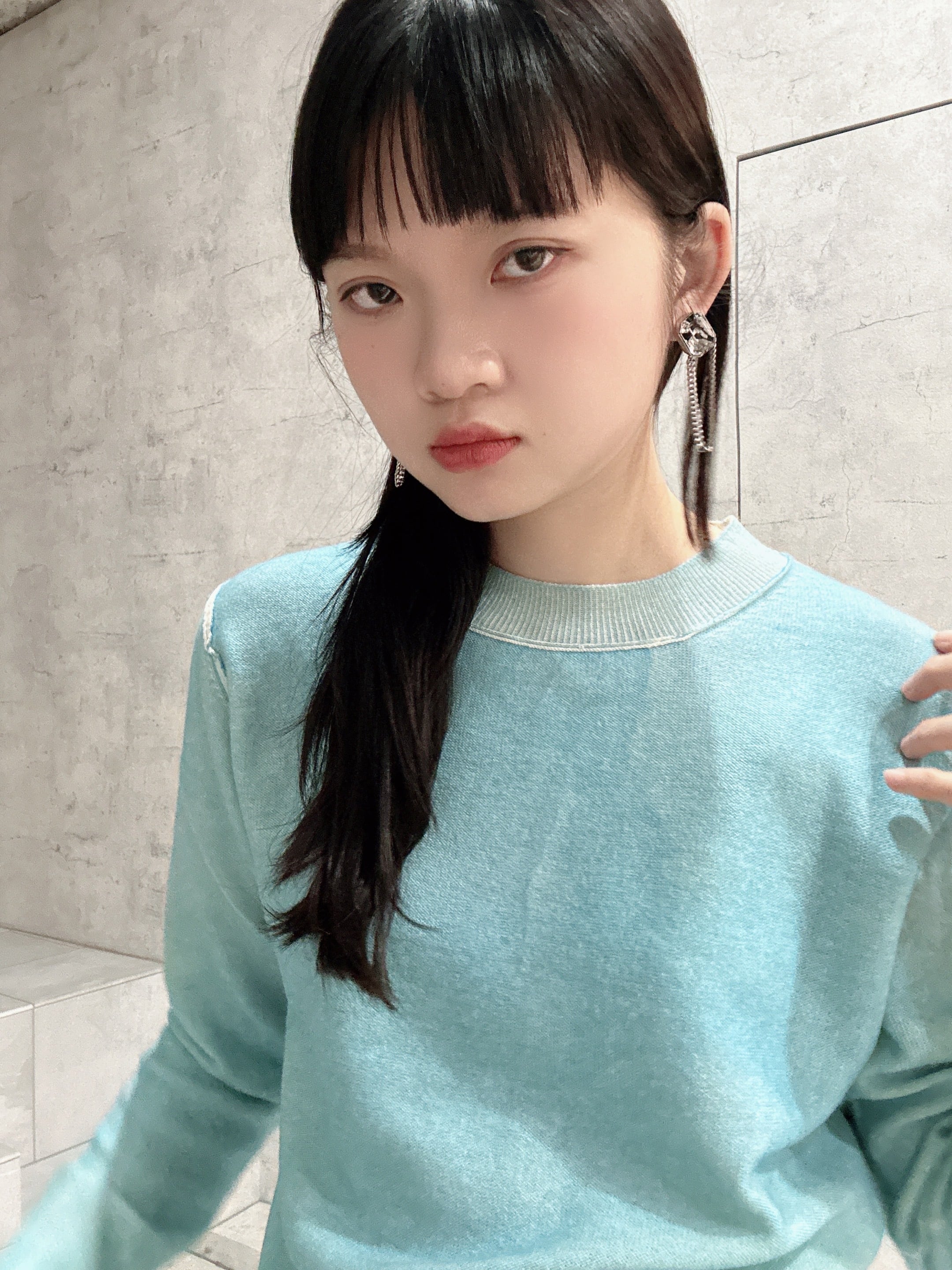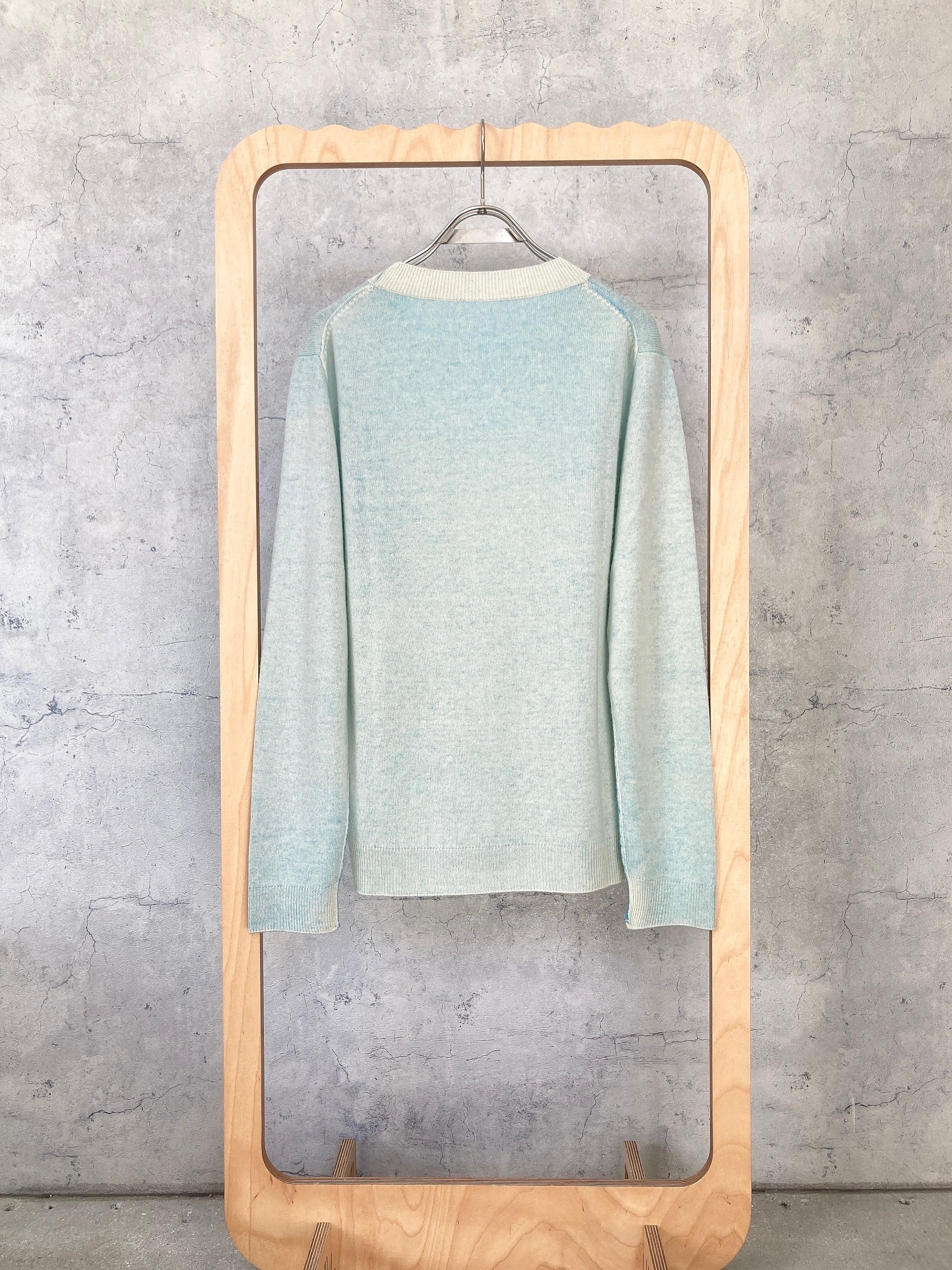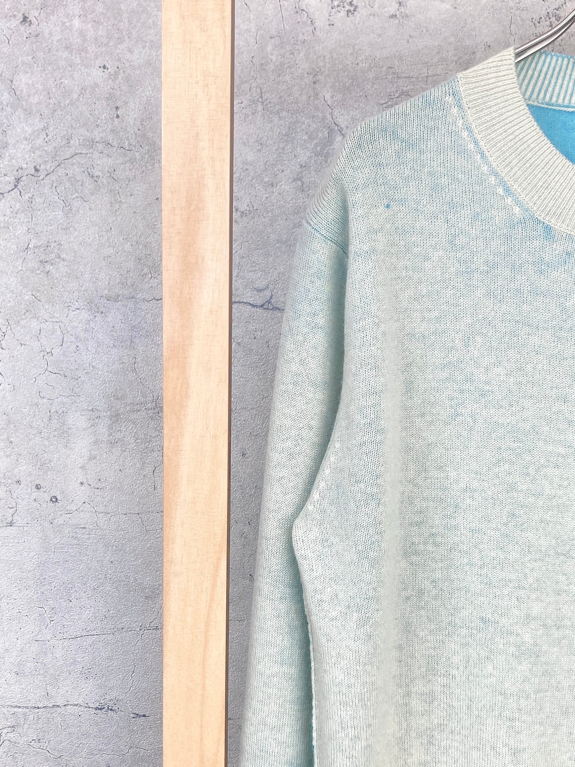 CIRCULATION送料無料【A・POIL アーポワル/フランス】ウールカシミヤ リバーシブル クルーネック カラーニット ブルー NO: AP WOCA-FENETRE25AW / COL G(Parchment/Print:Tiffany)
