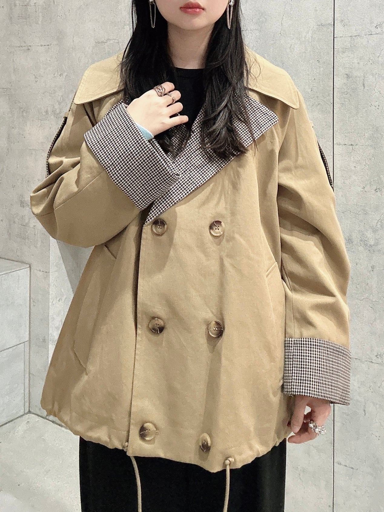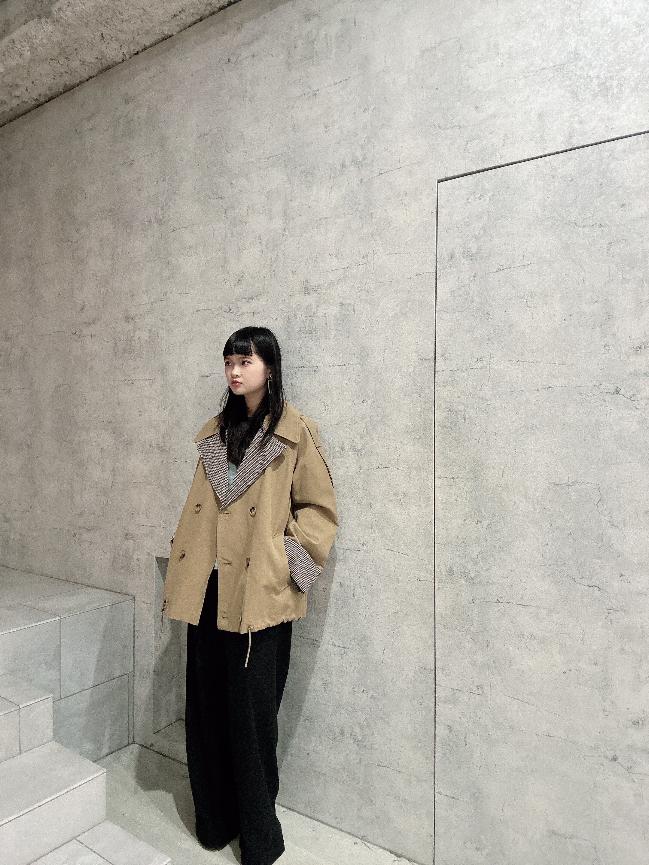 トレンチでありながら裾がドローストリングされておりスポーツテイストもmixされています。