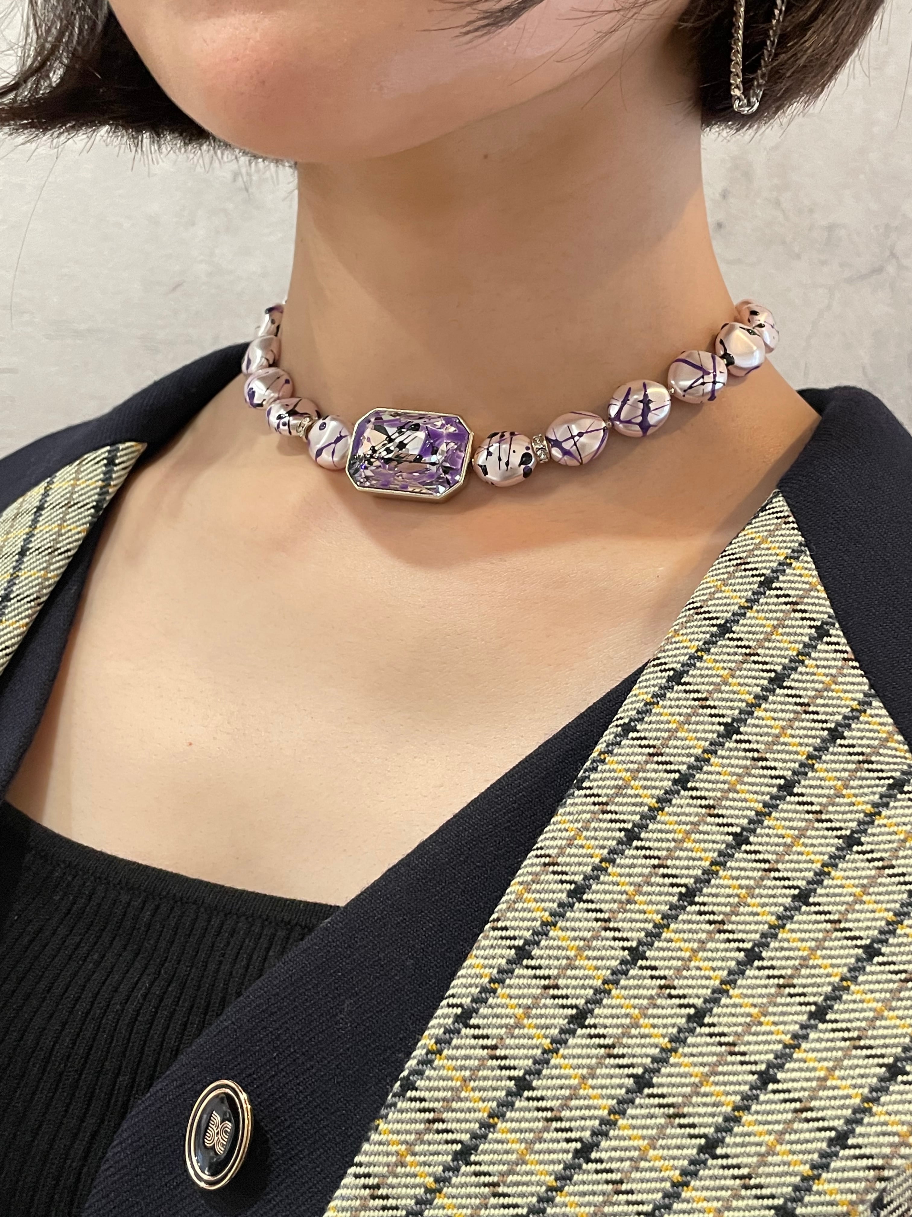 「Noesis」音というコンセプトをもとにパールとクリスタルにエナメルでArtしたParisならではのチョーカー。立体感のあるクリスタルが正面だけでなく横顔にも表情をつけてくれます。