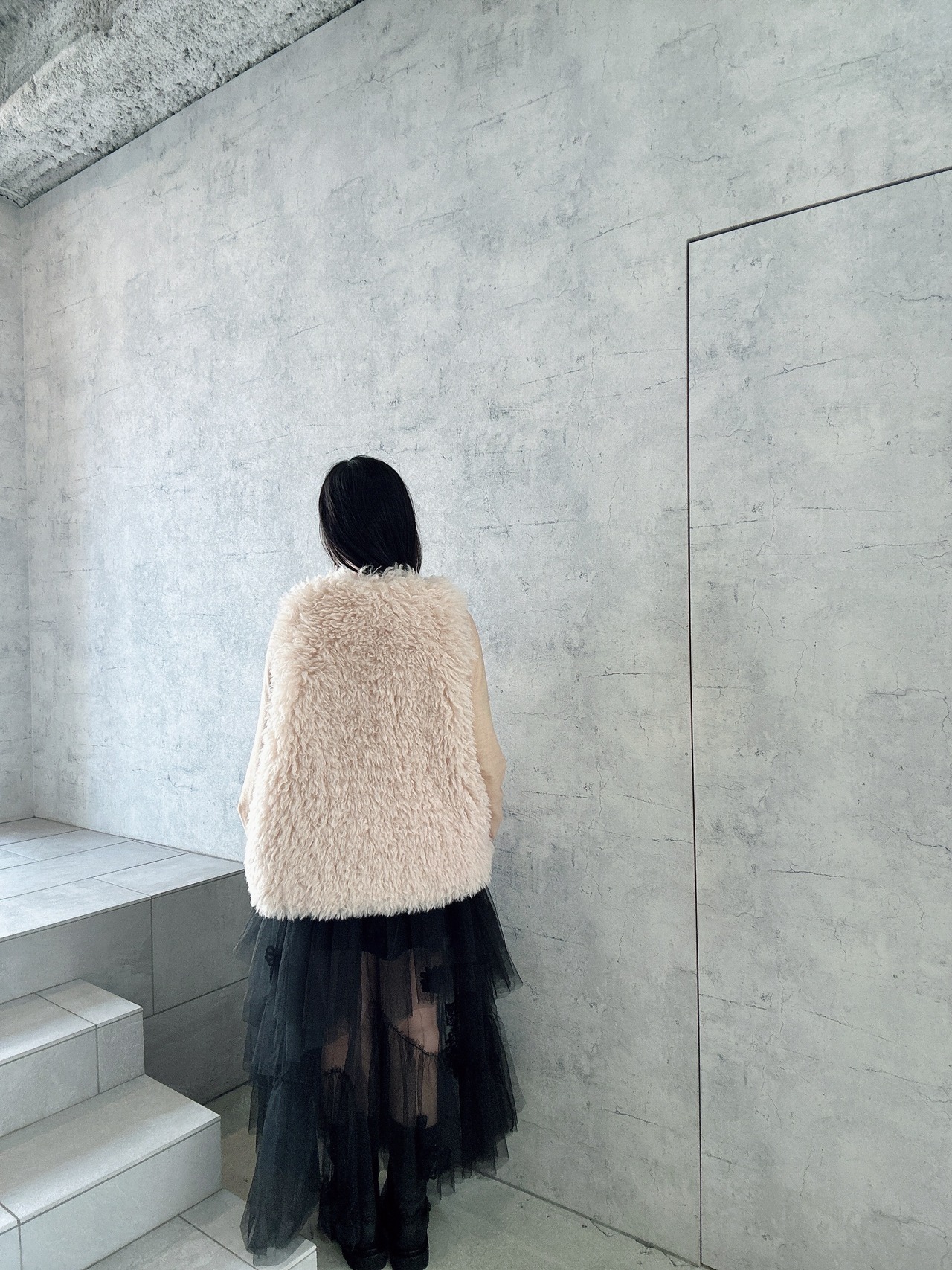 フェイクファーでありながら、毛足の綺麗さと柔らかさ、オリジナルカラーに拘った一枚。普段の着こなしに1枚合わせるだけで一気にスタイルアップしてくれます。