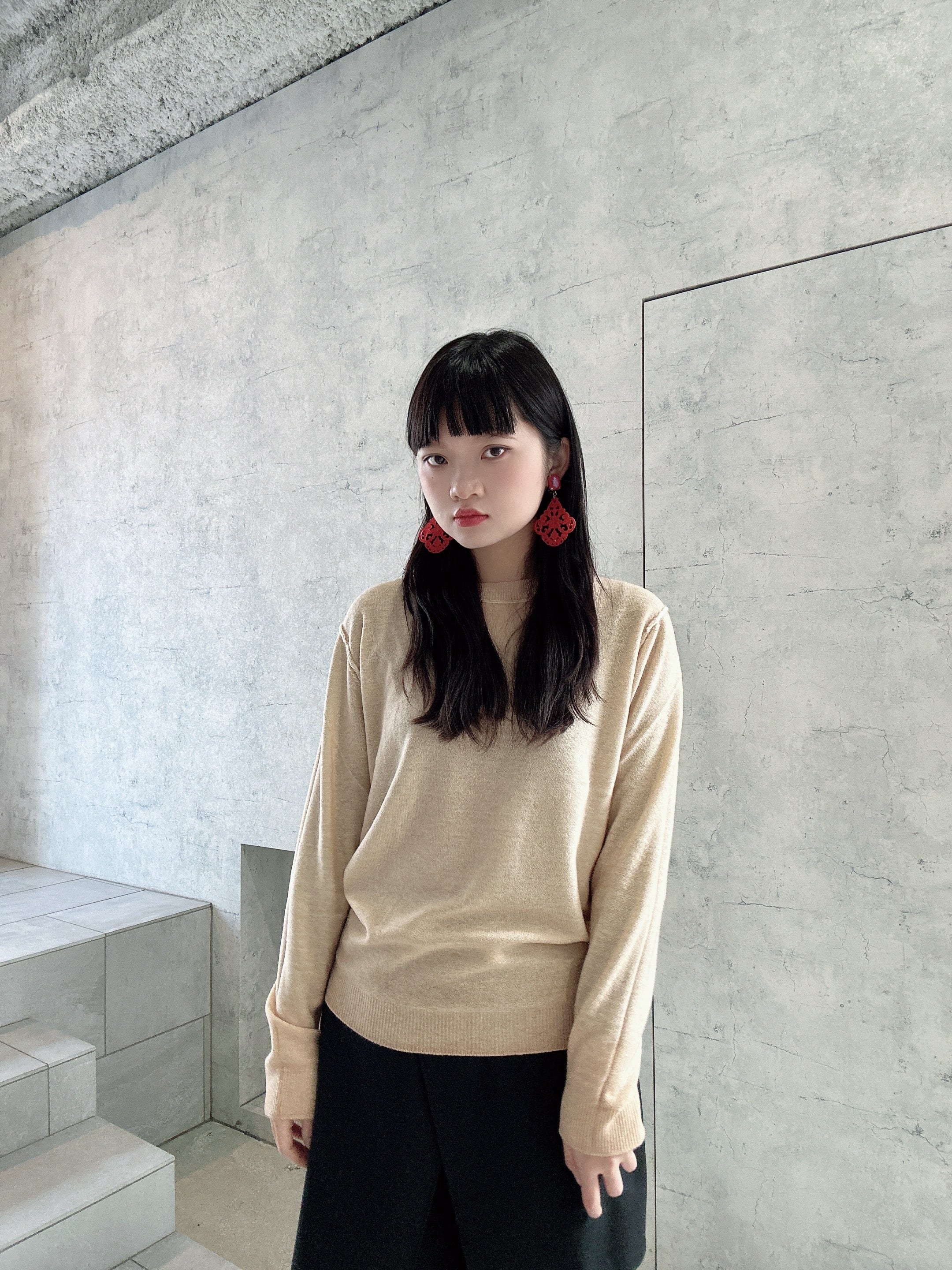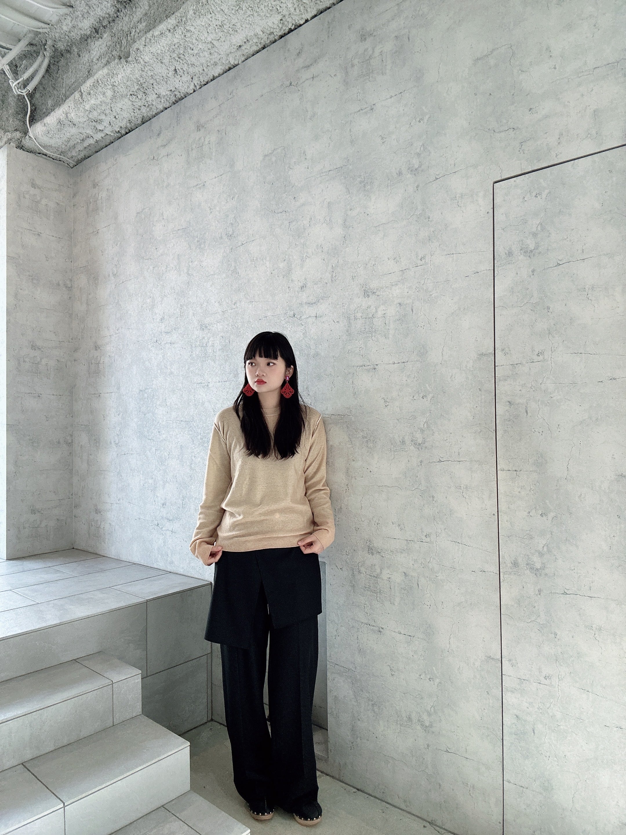トップはシャイニー、シャンデリアモチーフはマットというバランスの良さがアクセントになりつつも光過ぎずスタイリングに馴染みやすいアクセサリー。