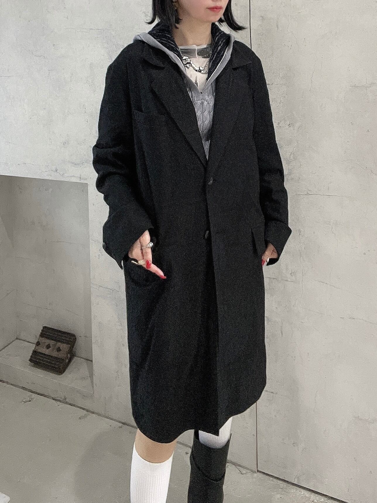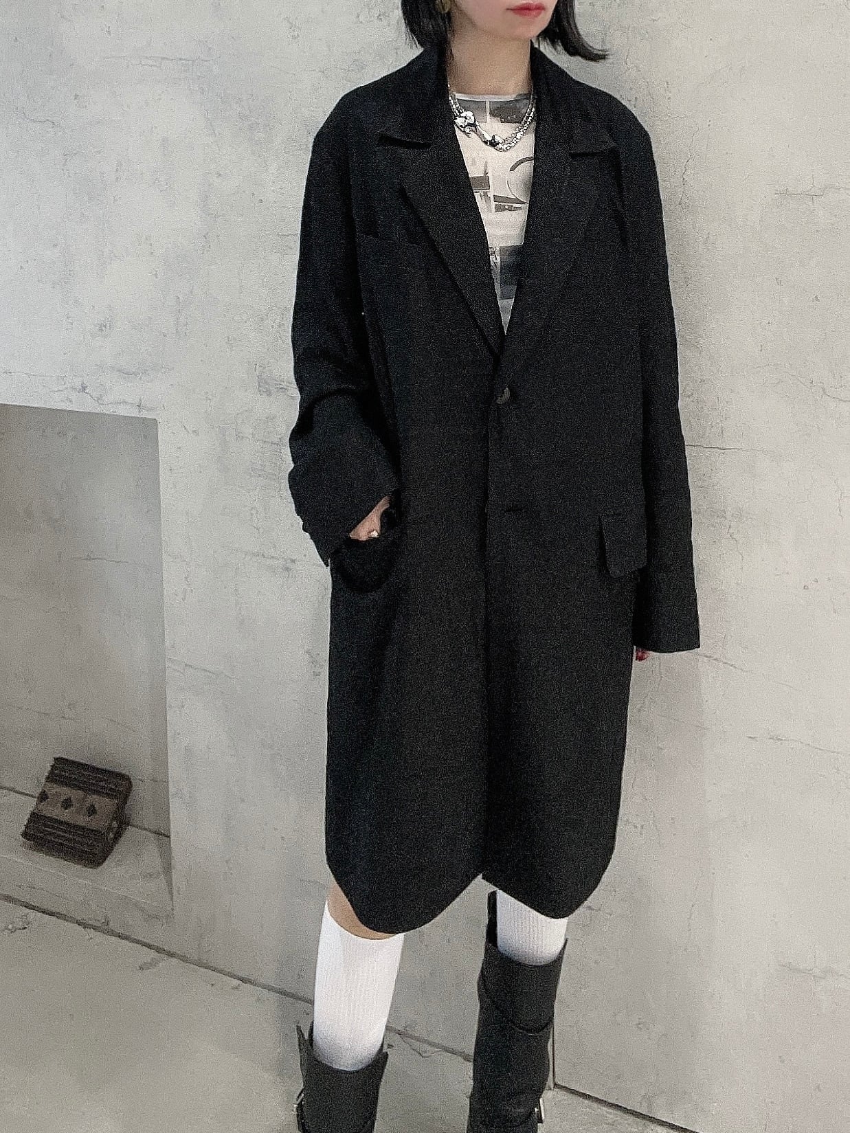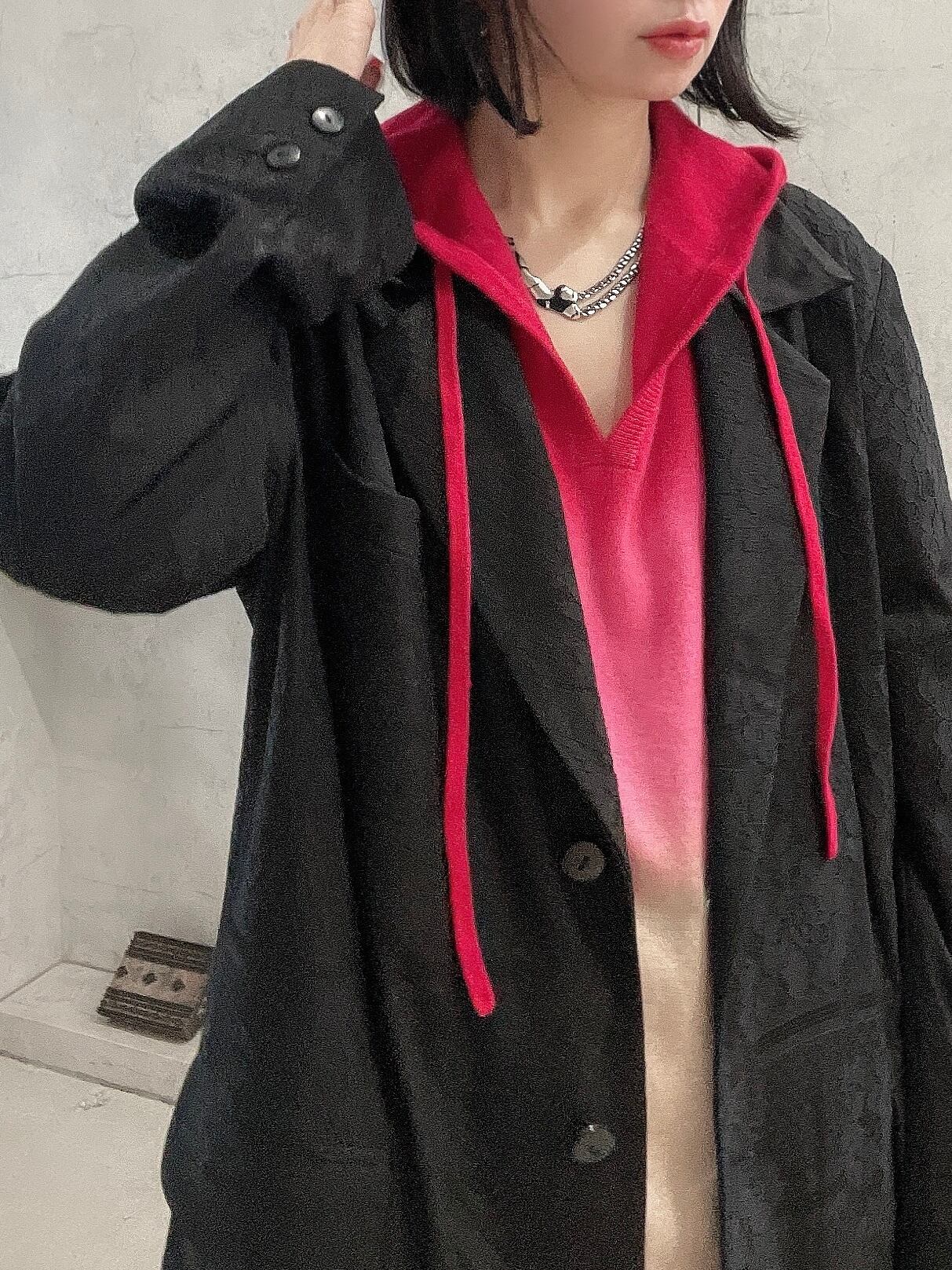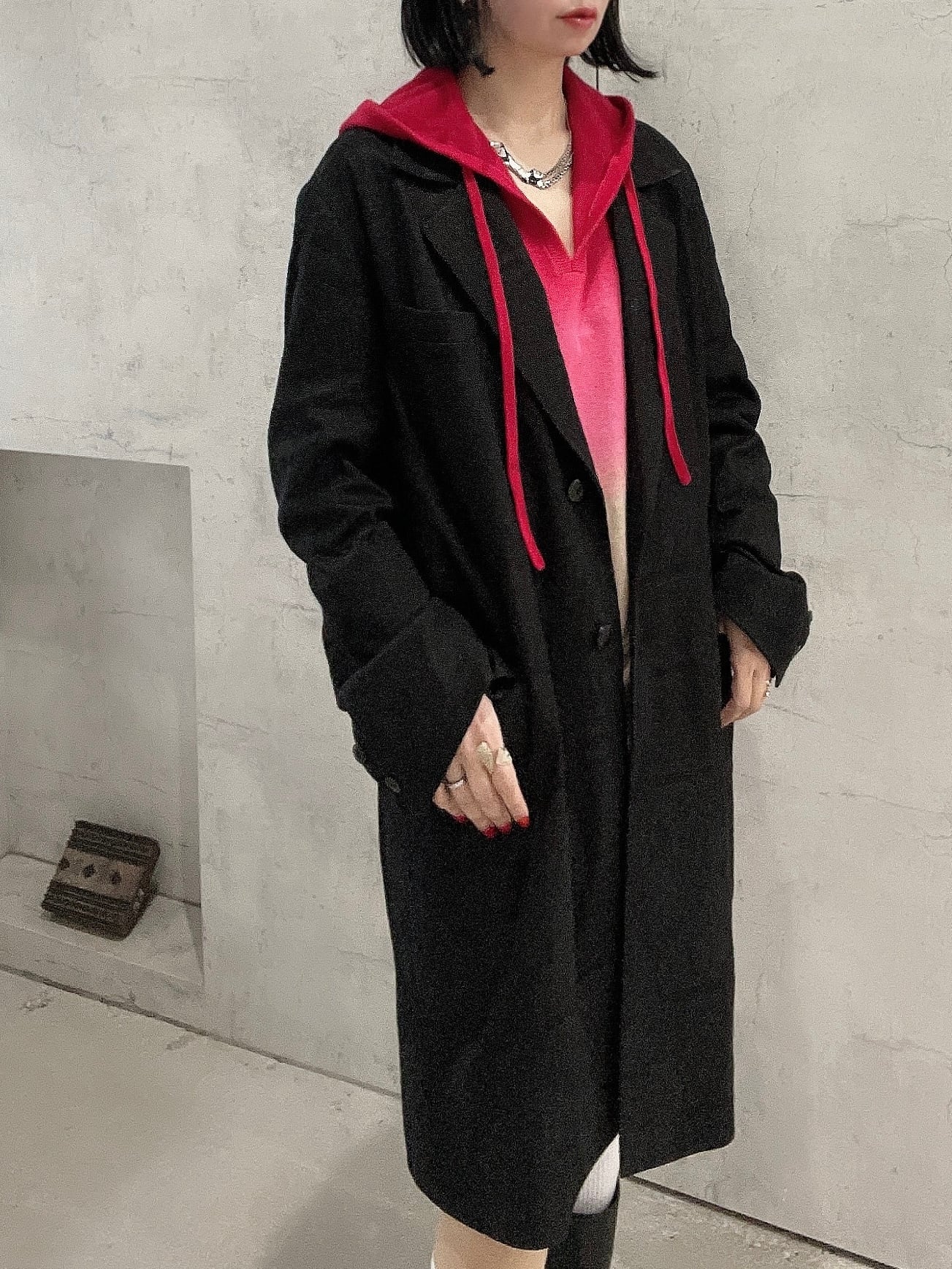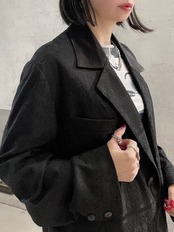 ワイドすぎずスキニー過ぎない美しいシルエット。襟部も素材を変えており羽織るだけでスタイルアップします。