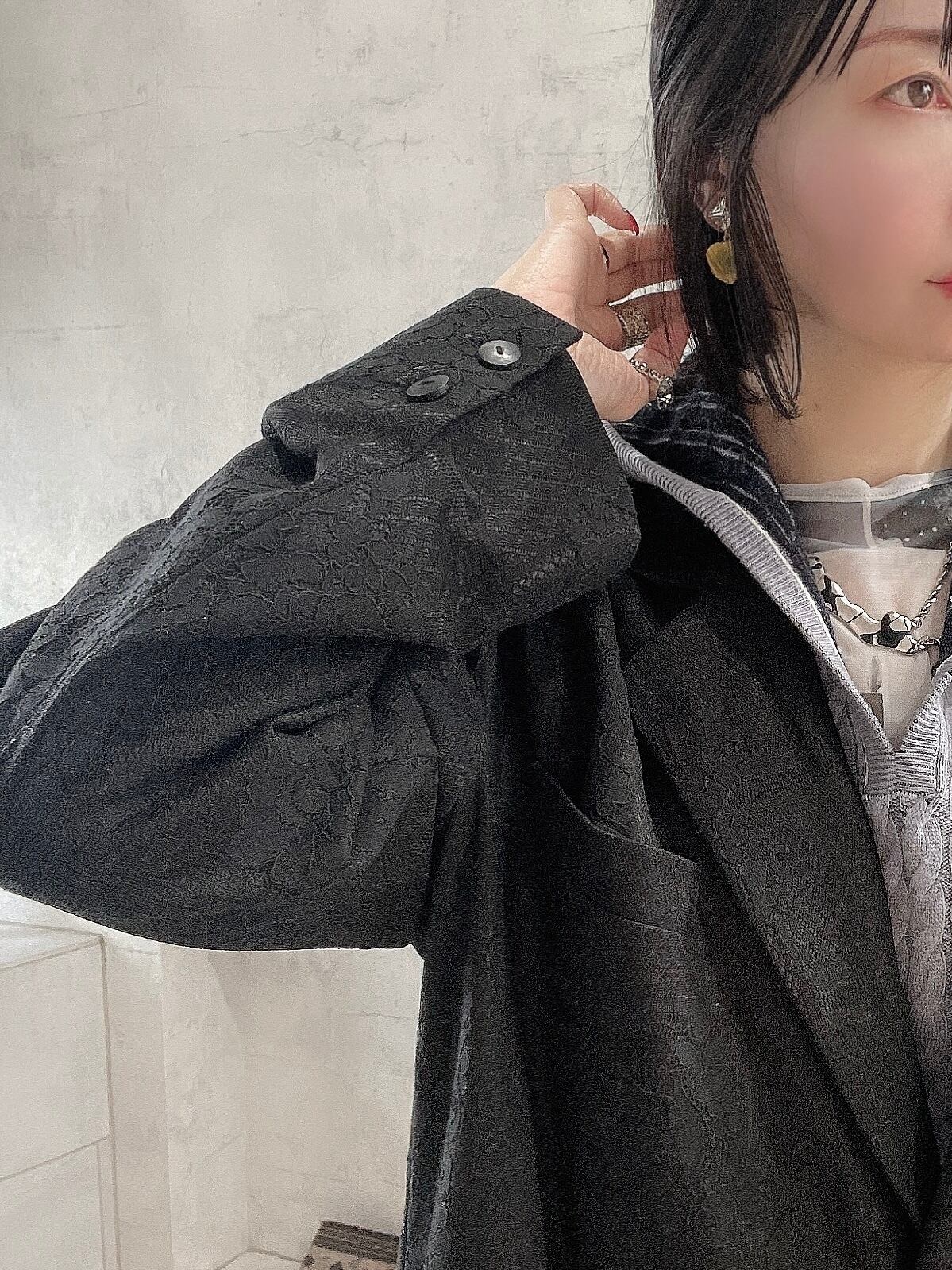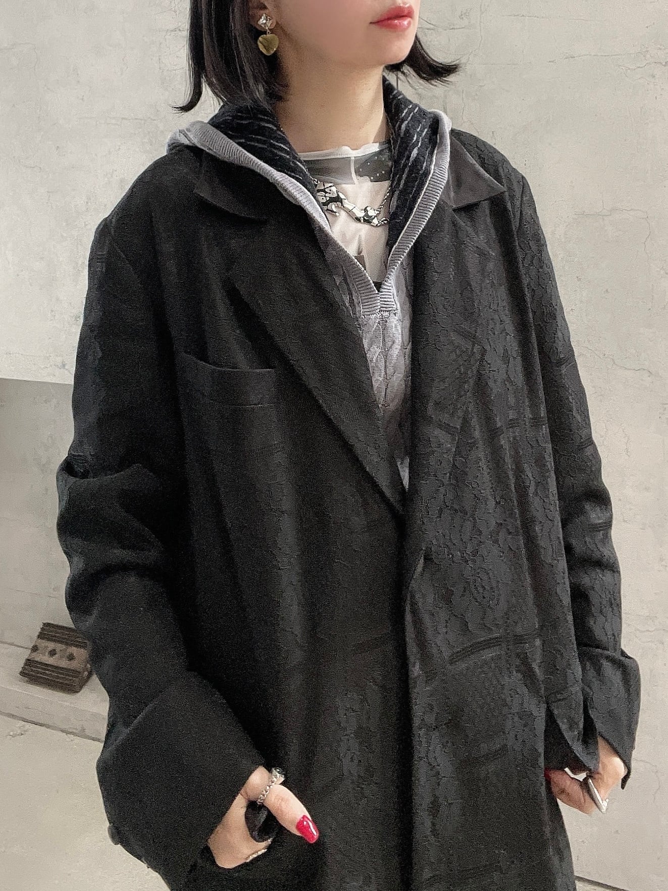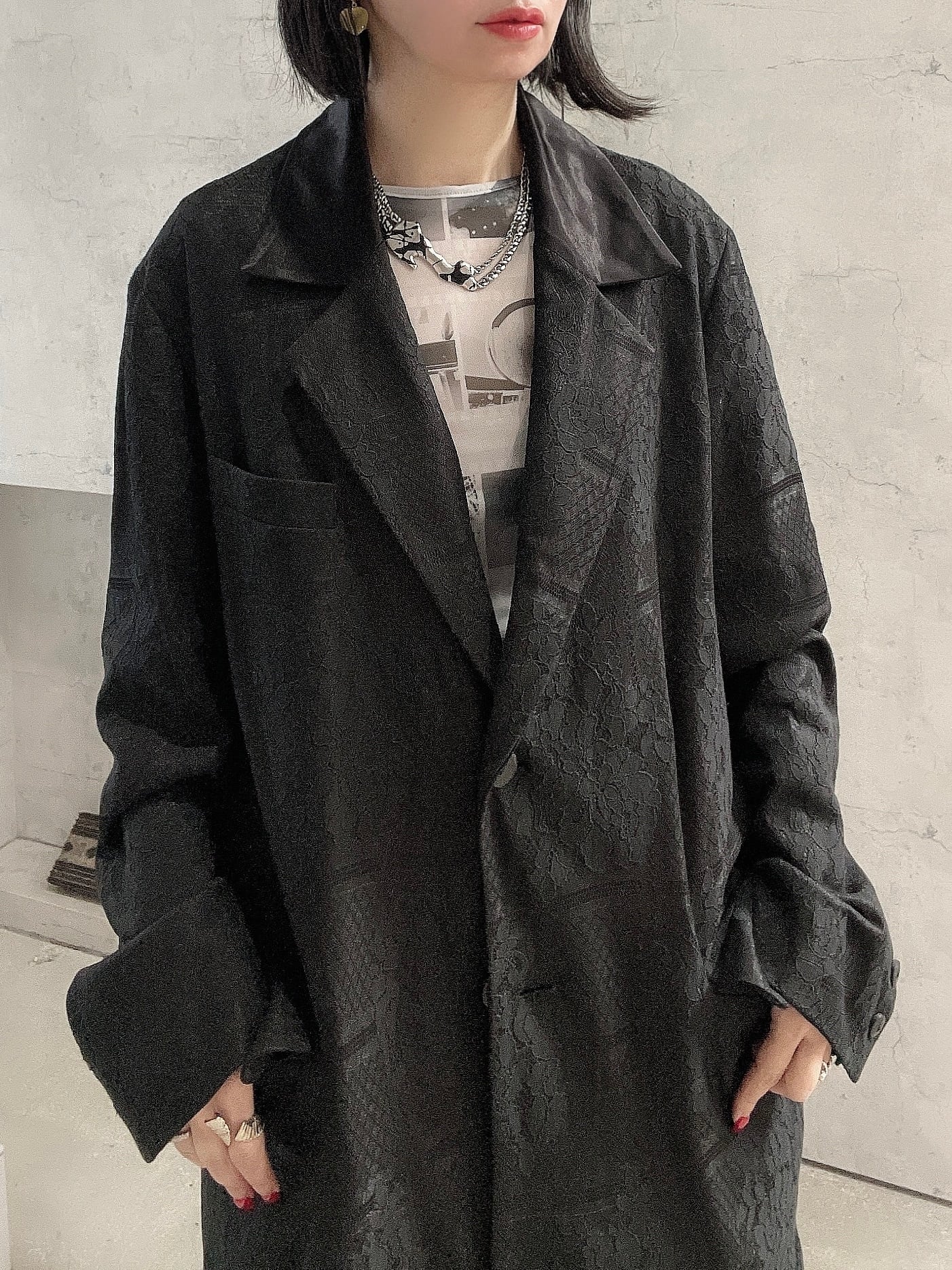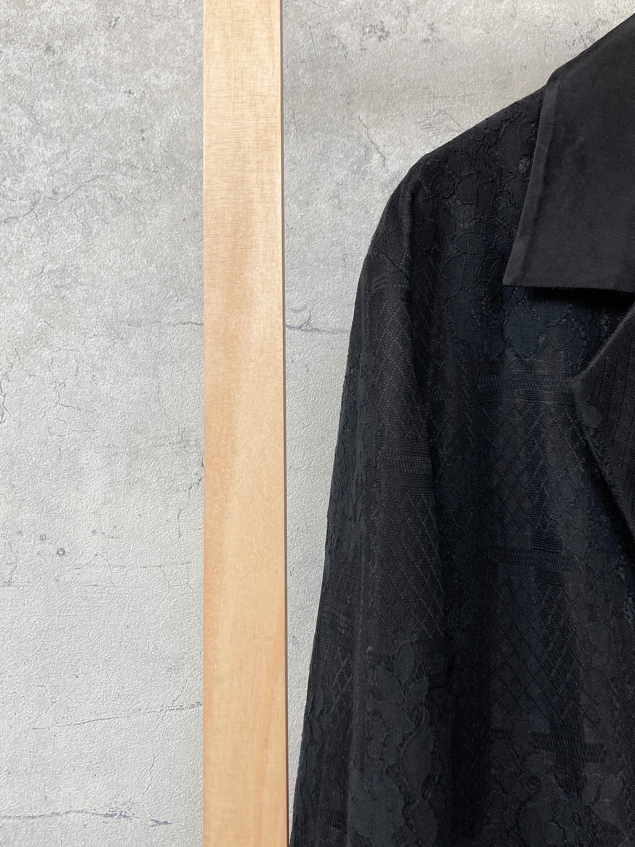 レースをボンディングした非常に手の凝った他には無いオリジナルの布地を贅沢に使用したコートジャケット。