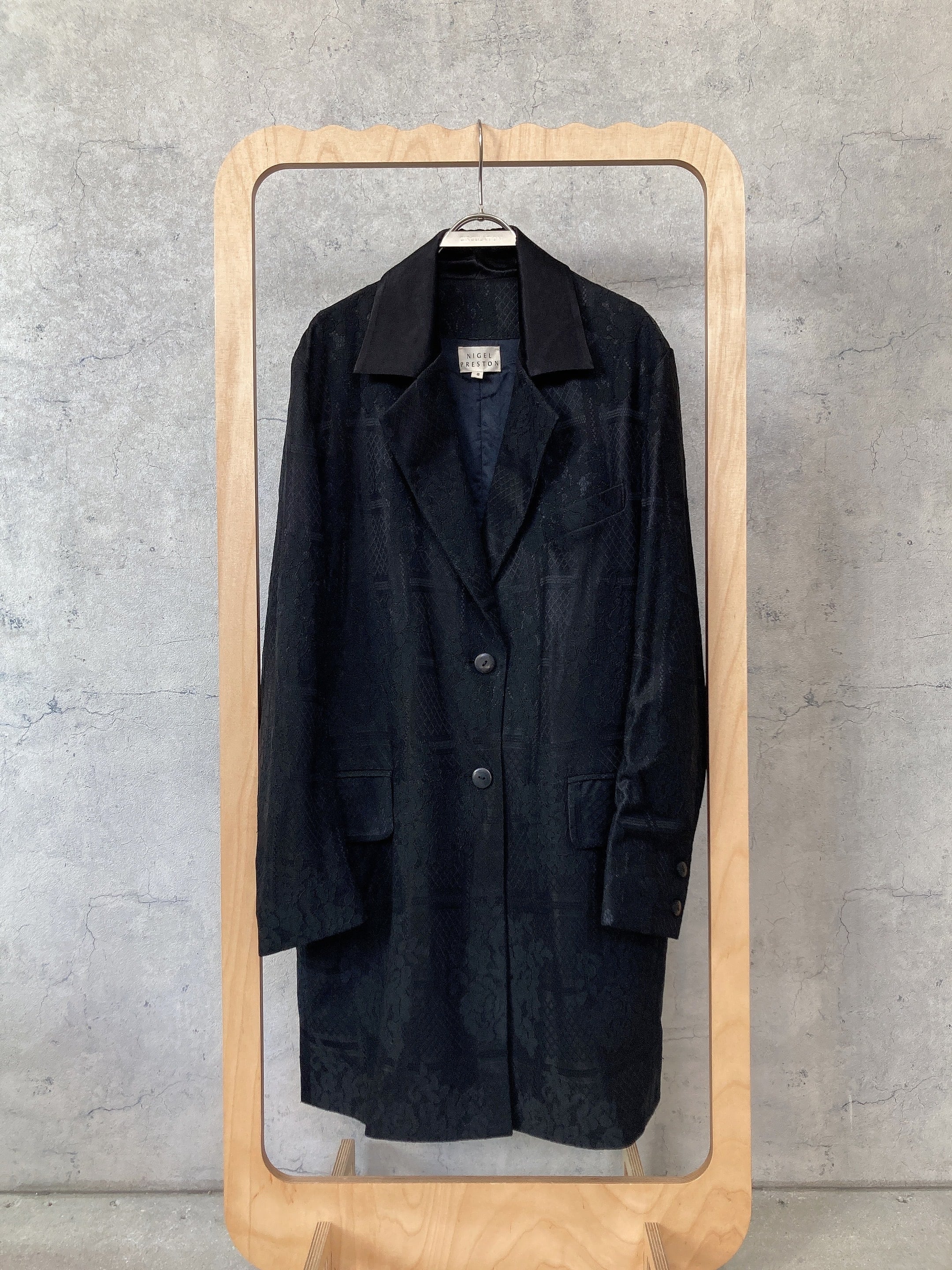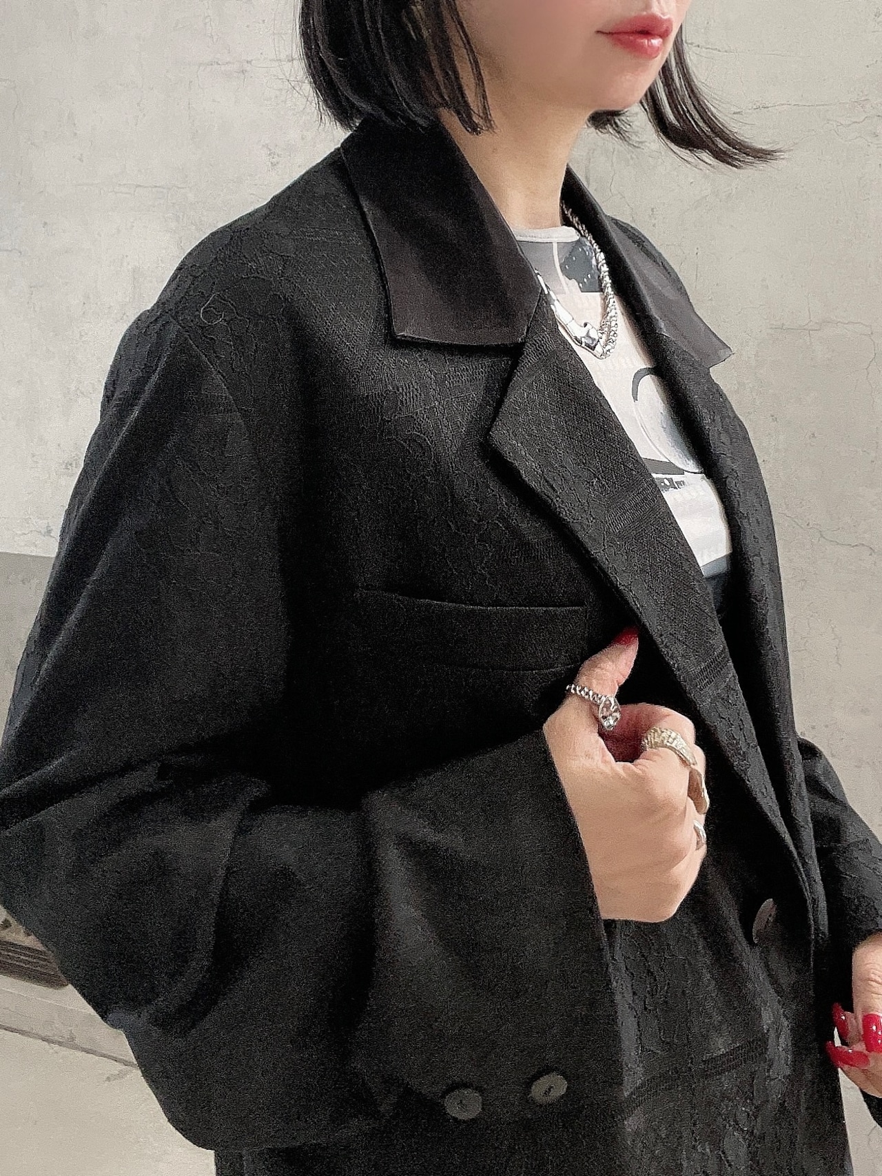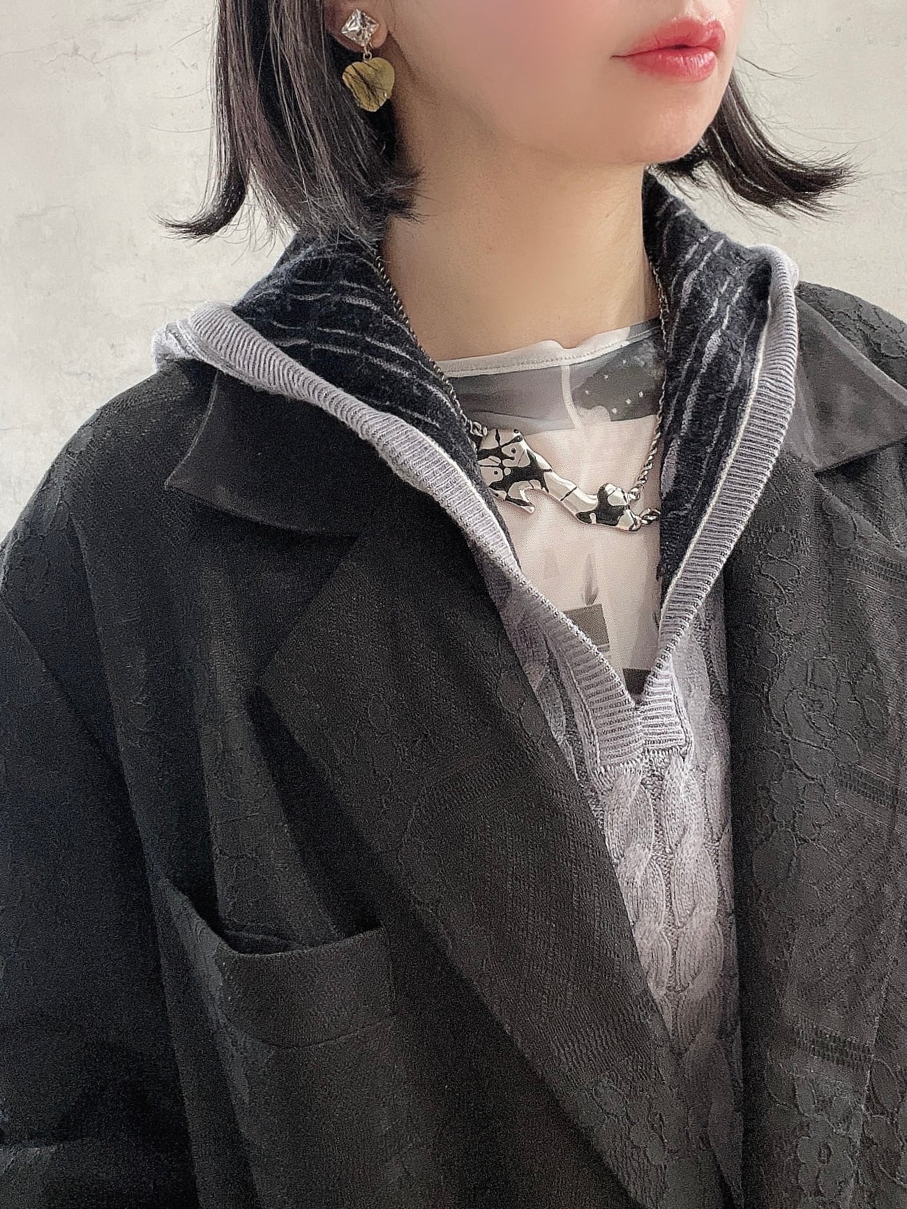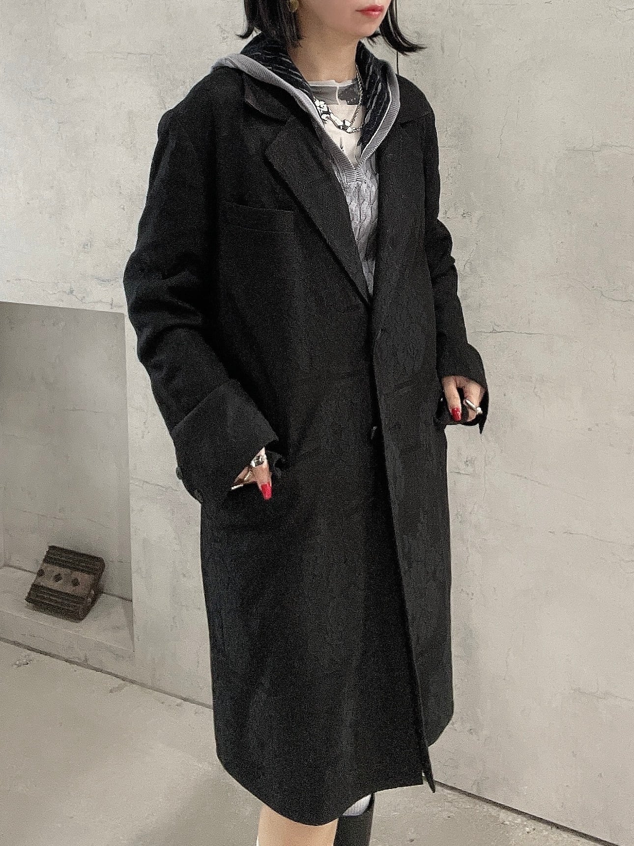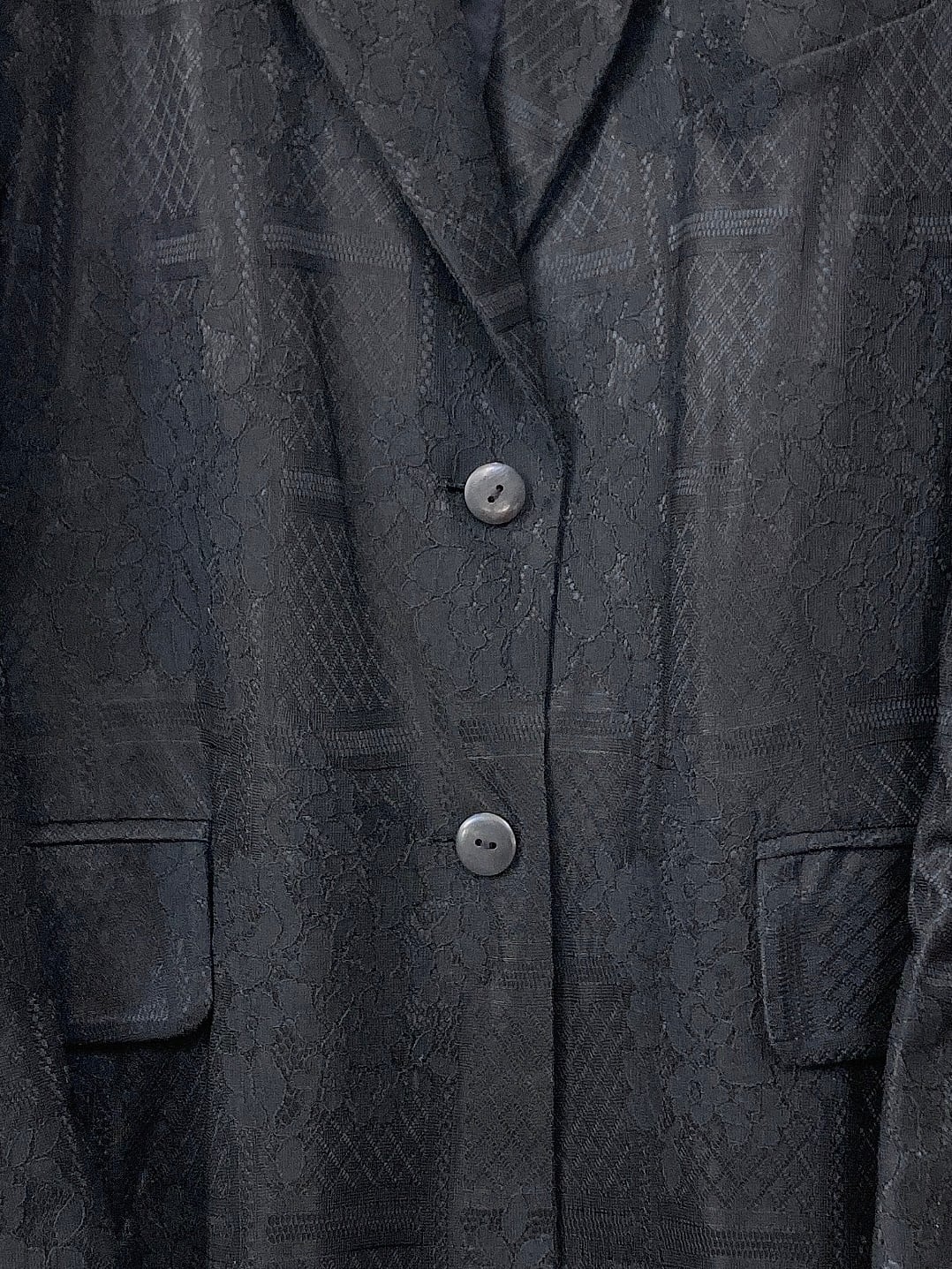 レースをボンディングした非常に手の凝った他には無いオリジナルの布地を贅沢に使用したコートジャケット。