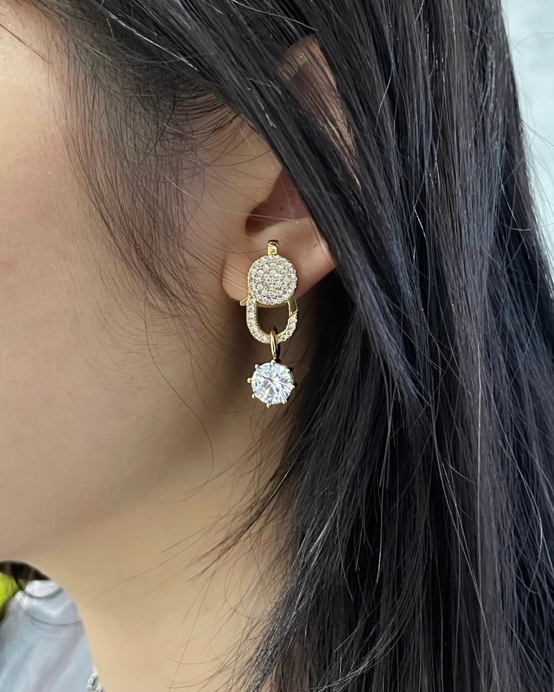 非常に綺麗なクリスタルが使われており小ぶりながら存在感のある耳元に。フックからチャームを外したり、別売りのチャームを付けたりと様々なスタイルを楽しめるのも嬉しいポイント。